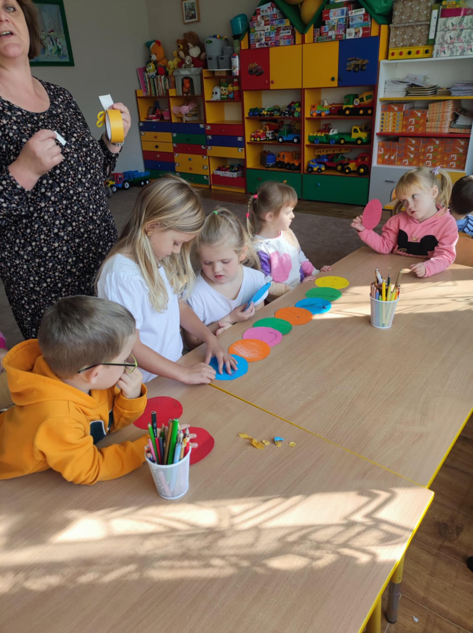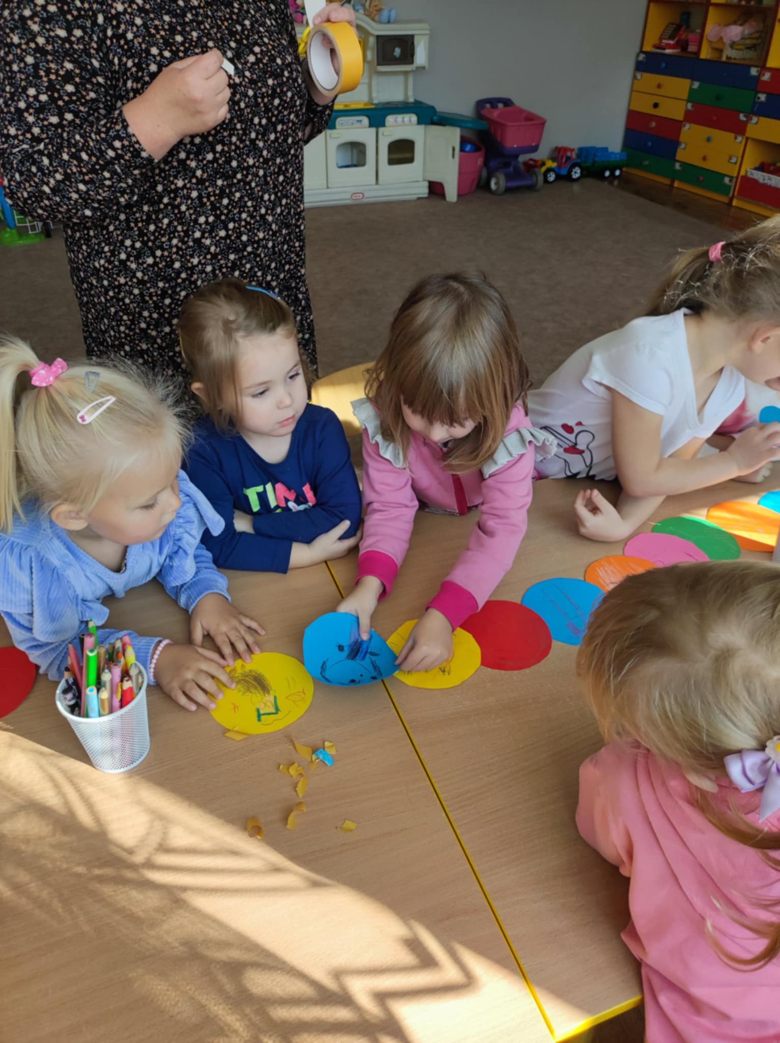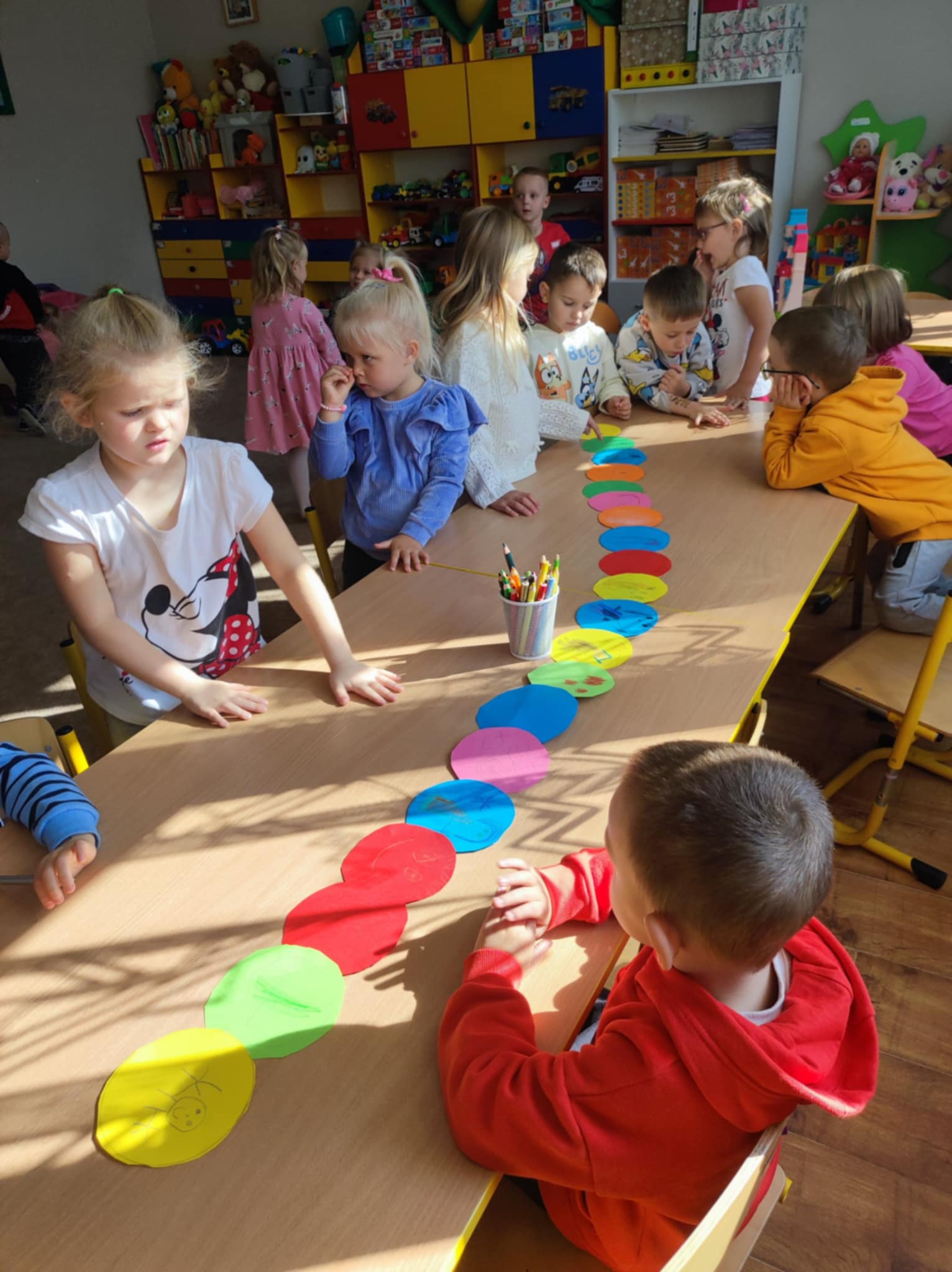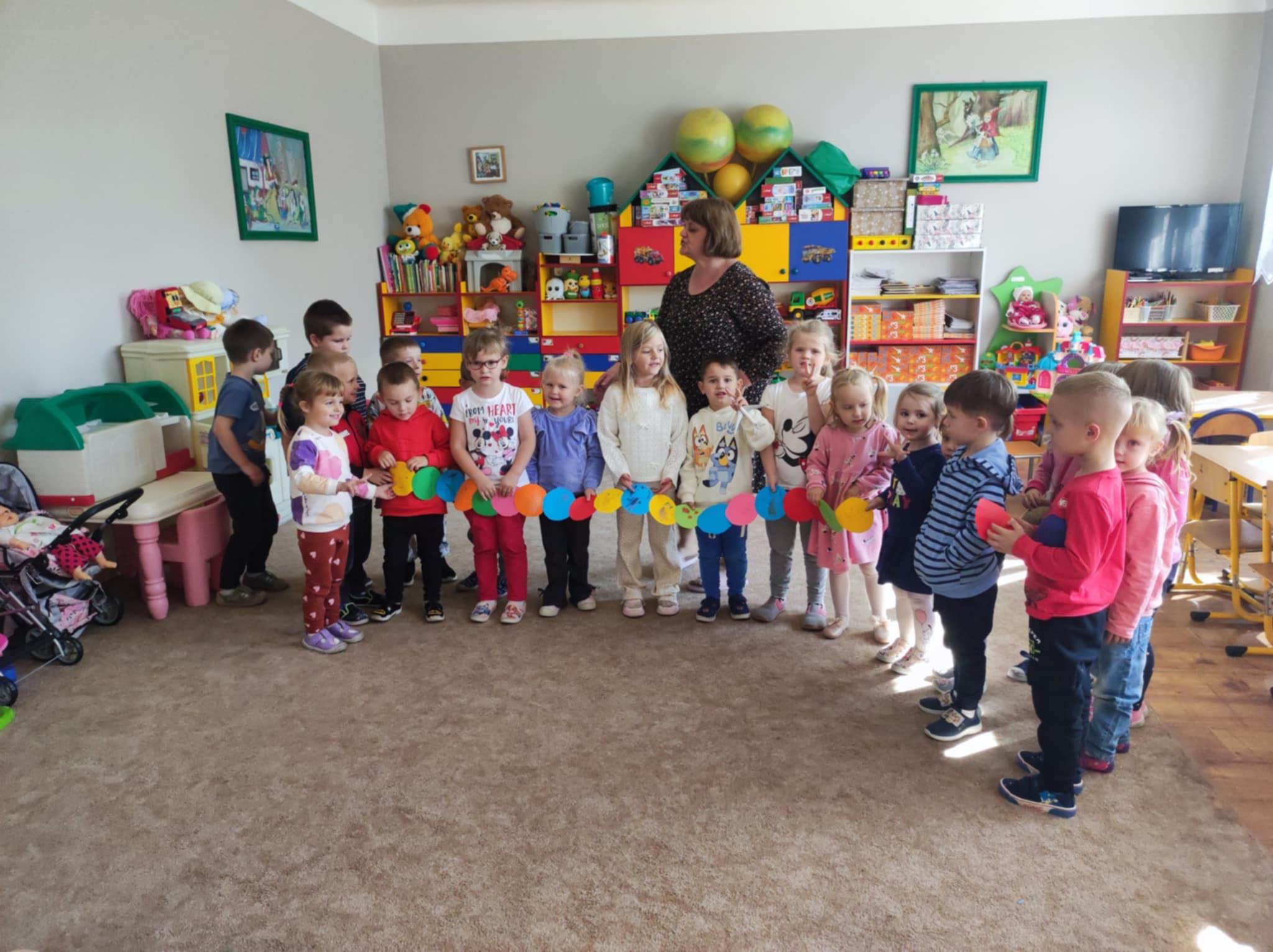 W grupie „Małych Odkrywców” w ostatnim tygodniu rozmawialiśmy o emocjach, przyjaźni i o tym, jak ważne jest, by tworzyć zgraną grupę. Dzieci wysłuchały bajki pt. „Lęk przed odrzuceniem przez grupę”, a potem wspólnie bawiły się i uczyły współpracy. Razem stworzyliśmy kolorową gąsienicę symbol naszej przedszkolnej rodziny. Okazało się, że gdy brakuje choć jednej części, całość nie jest już taka piękna bo każdy z nas jest ważny i potrzebny. Na zakończenie powstała piękna korona „Pani Jesieni” symbol naszej przynależności do grupy. Bo każdy Mały Odkrywca ma tu swoje miejsce i jest kimś wyjątkowym.