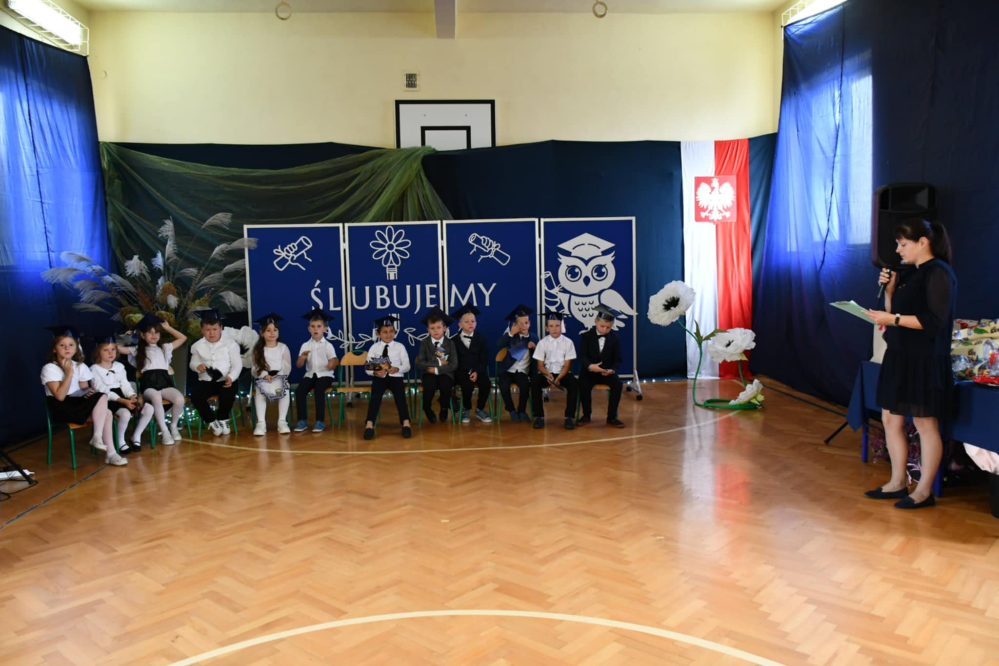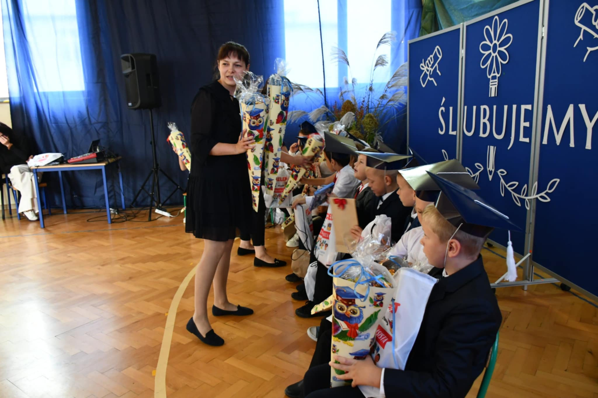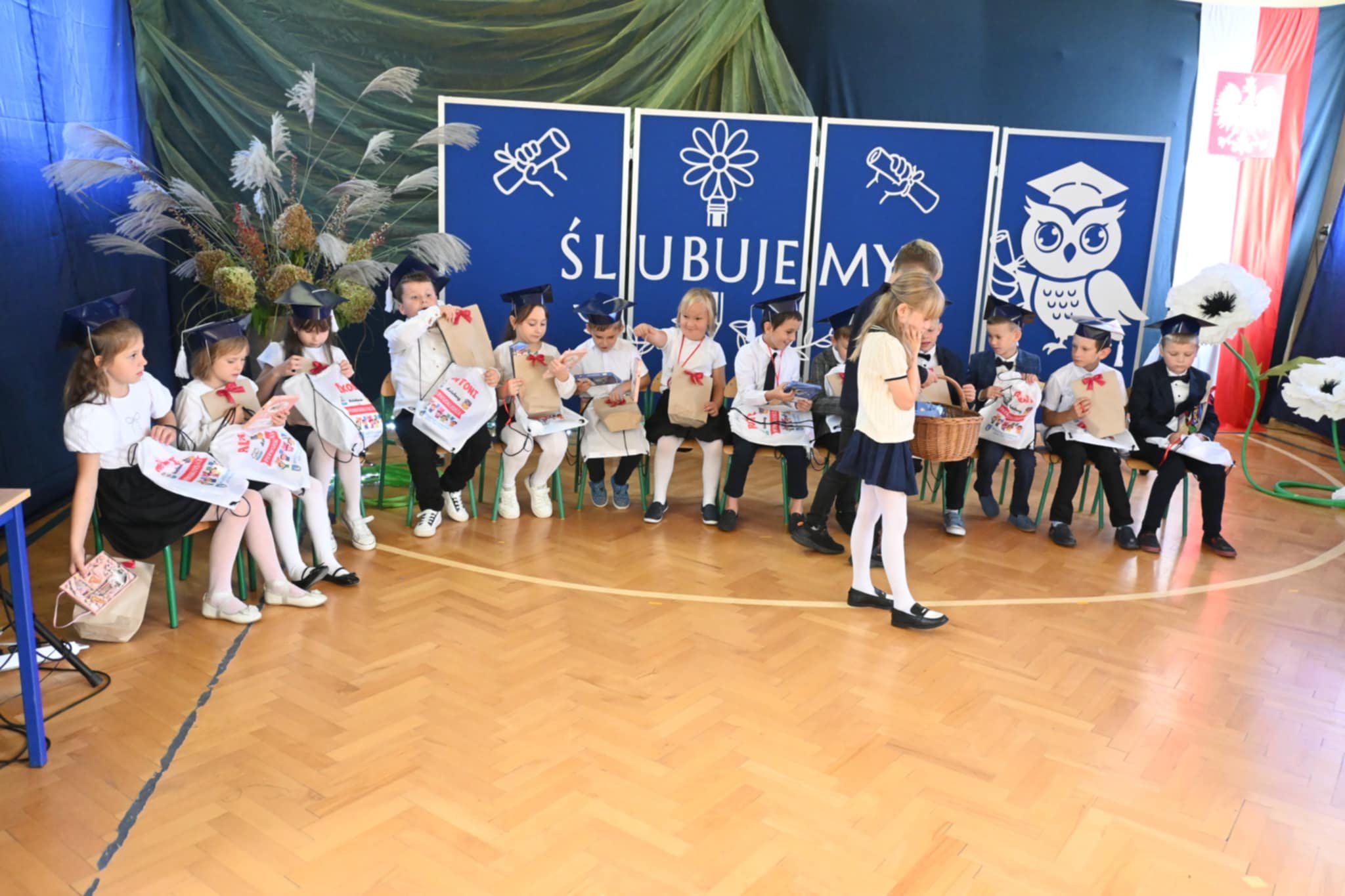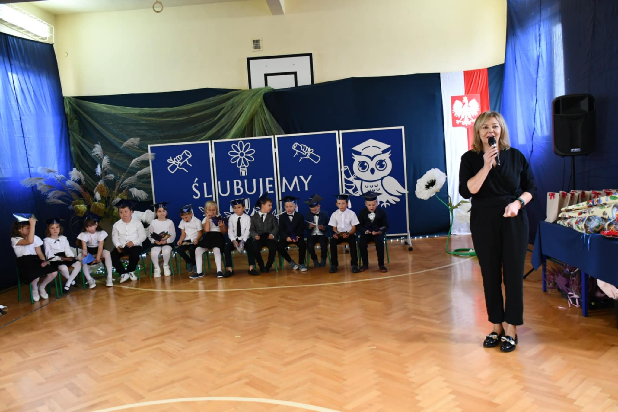 Nie zabrakło również ciepłych słów, życzeń i gratulacji skierowanych do pierwszoklasistów. Na zakończenie dzieci otrzymały pamiątkowe upominki, a rodzice zaprosili wszystkich uczestników na słodki poczęstunek.