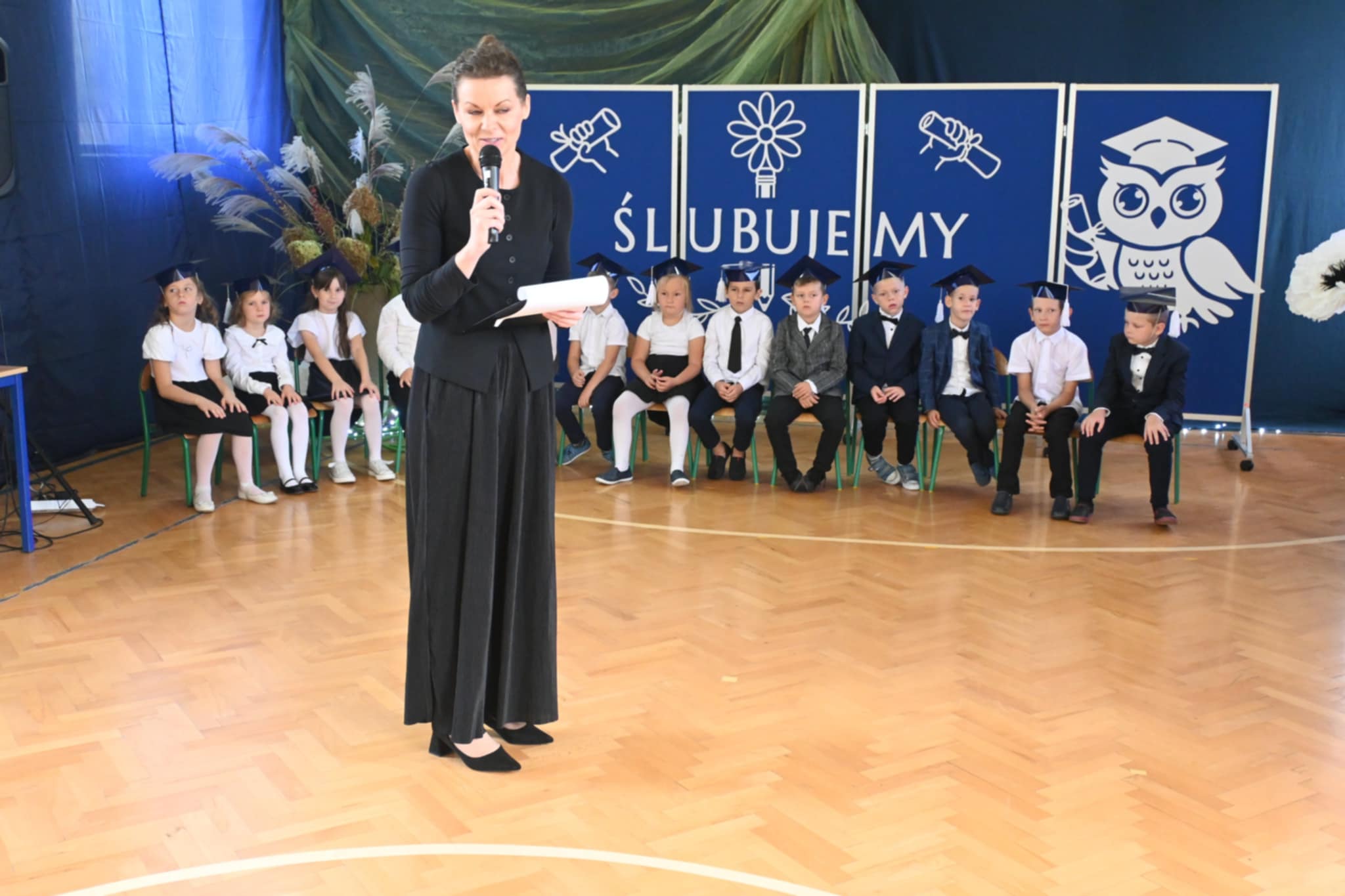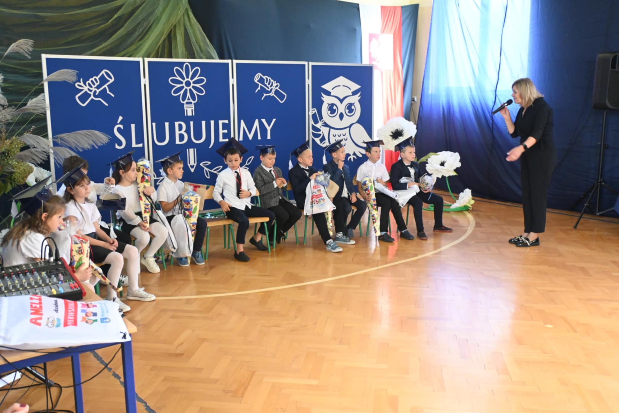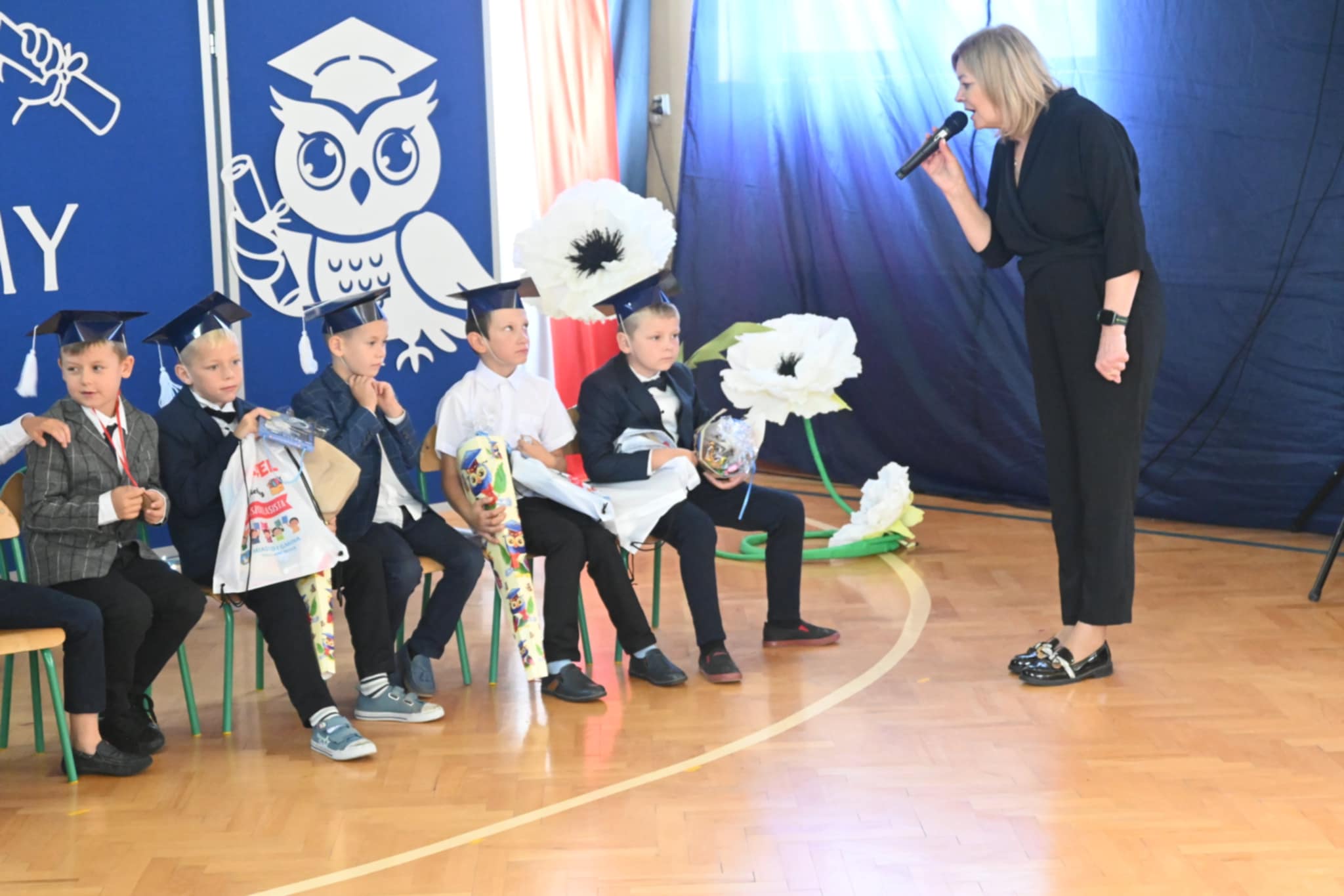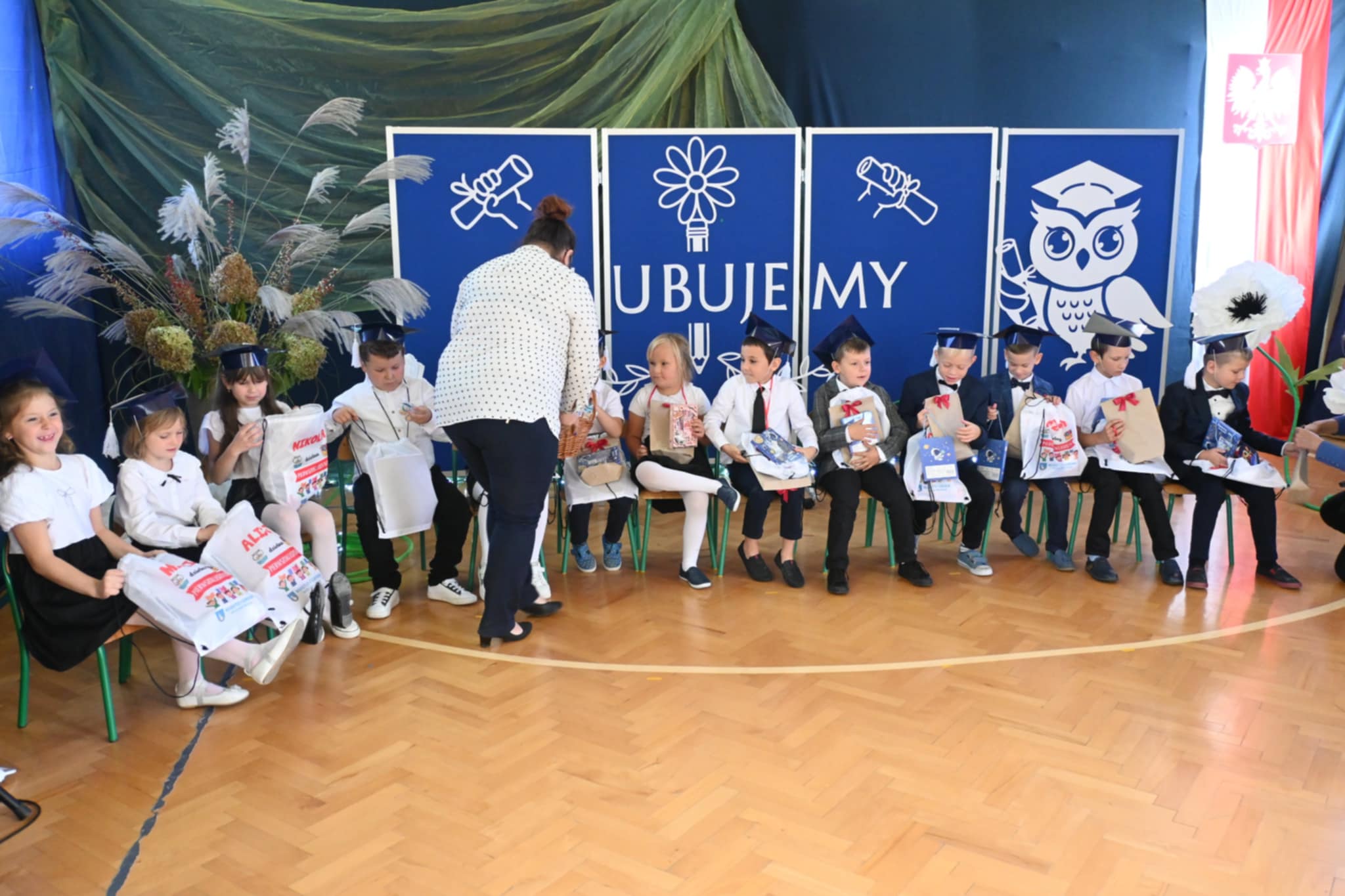 Nie zabrakło również ciepłych słów, życzeń i gratulacji skierowanych do pierwszoklasistów. Na zakończenie dzieci otrzymały pamiątkowe upominki, a rodzice zaprosili wszystkich uczestników na słodki poczęstunek.