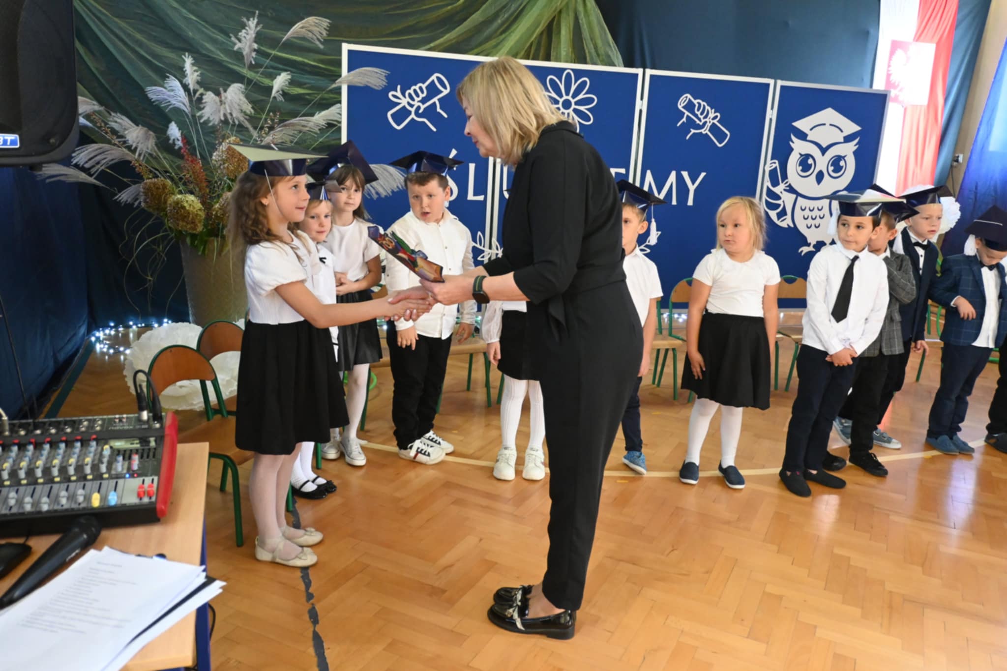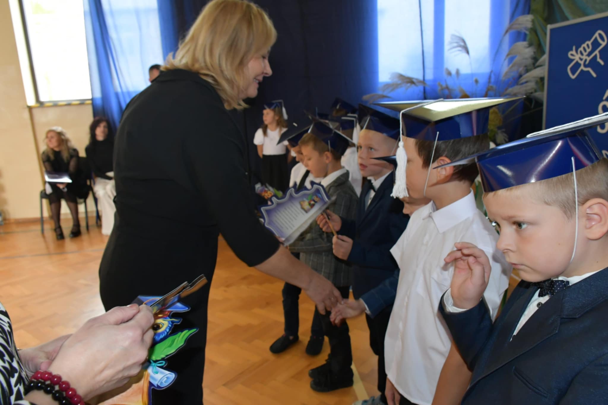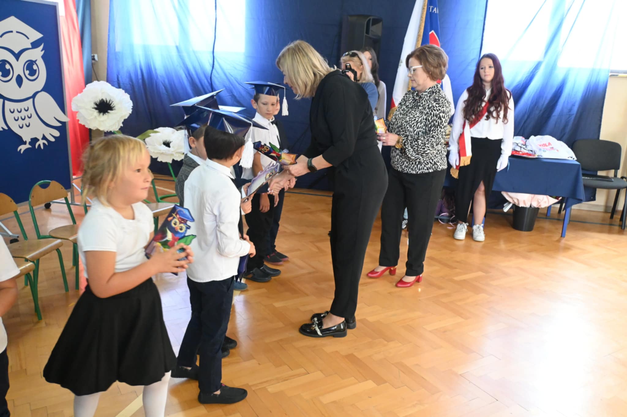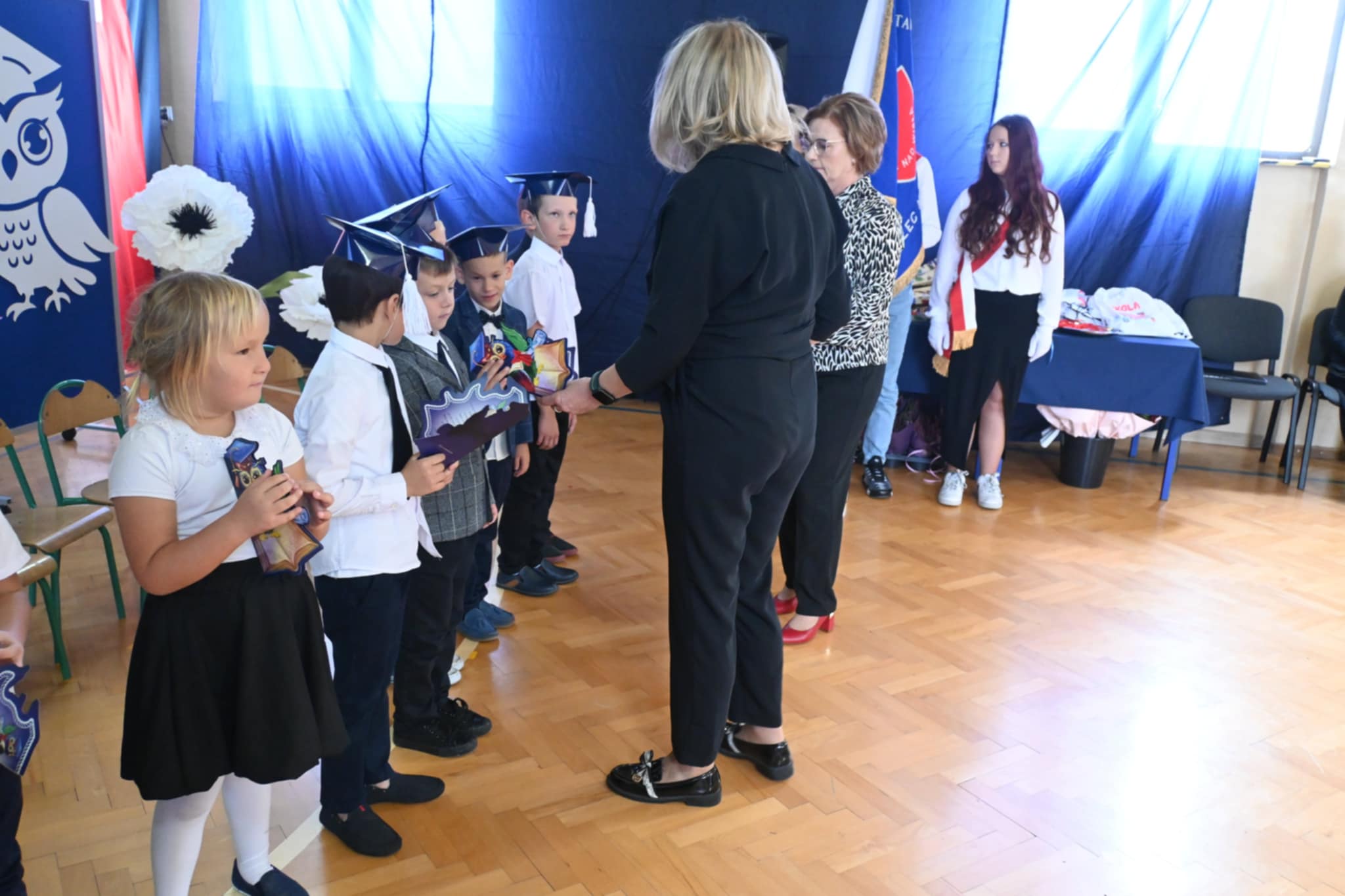 Nie zabrakło również ciepłych słów, życzeń i gratulacji skierowanych do pierwszoklasistów. Na zakończenie dzieci otrzymały pamiątkowe upominki, a rodzice zaprosili wszystkich uczestników na słodki poczęstunek.
