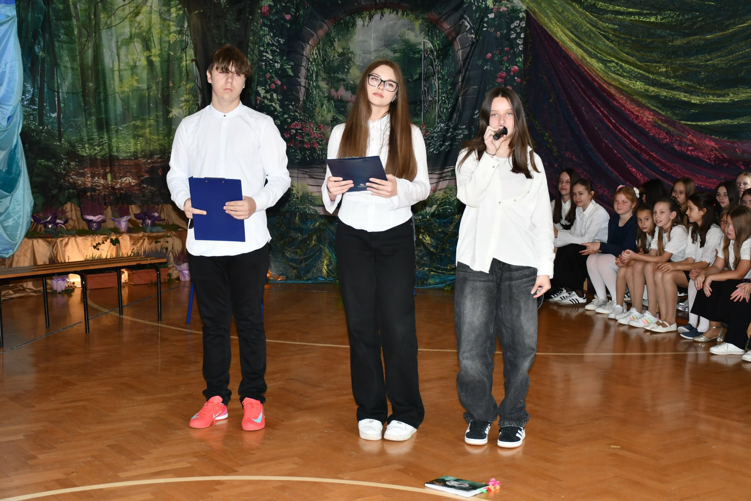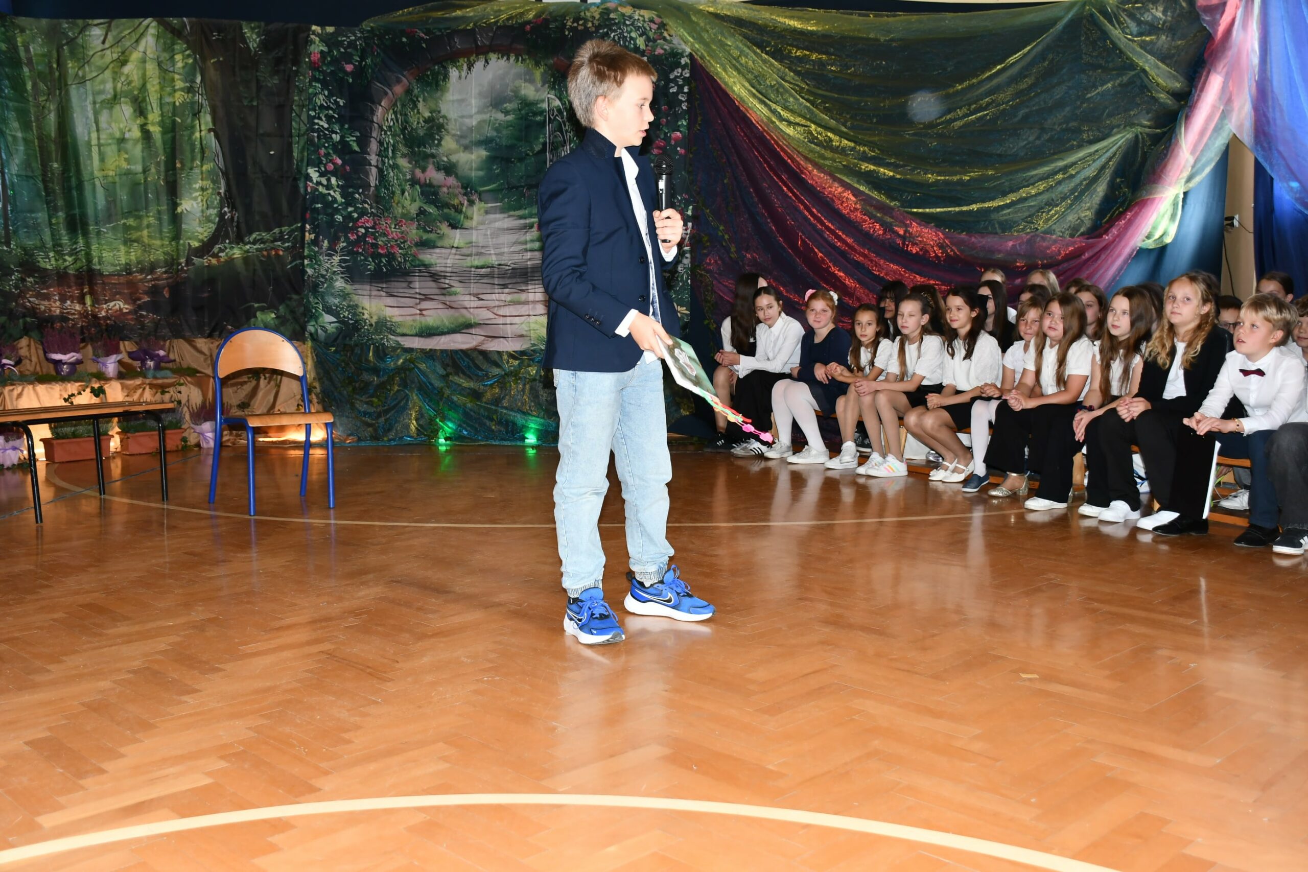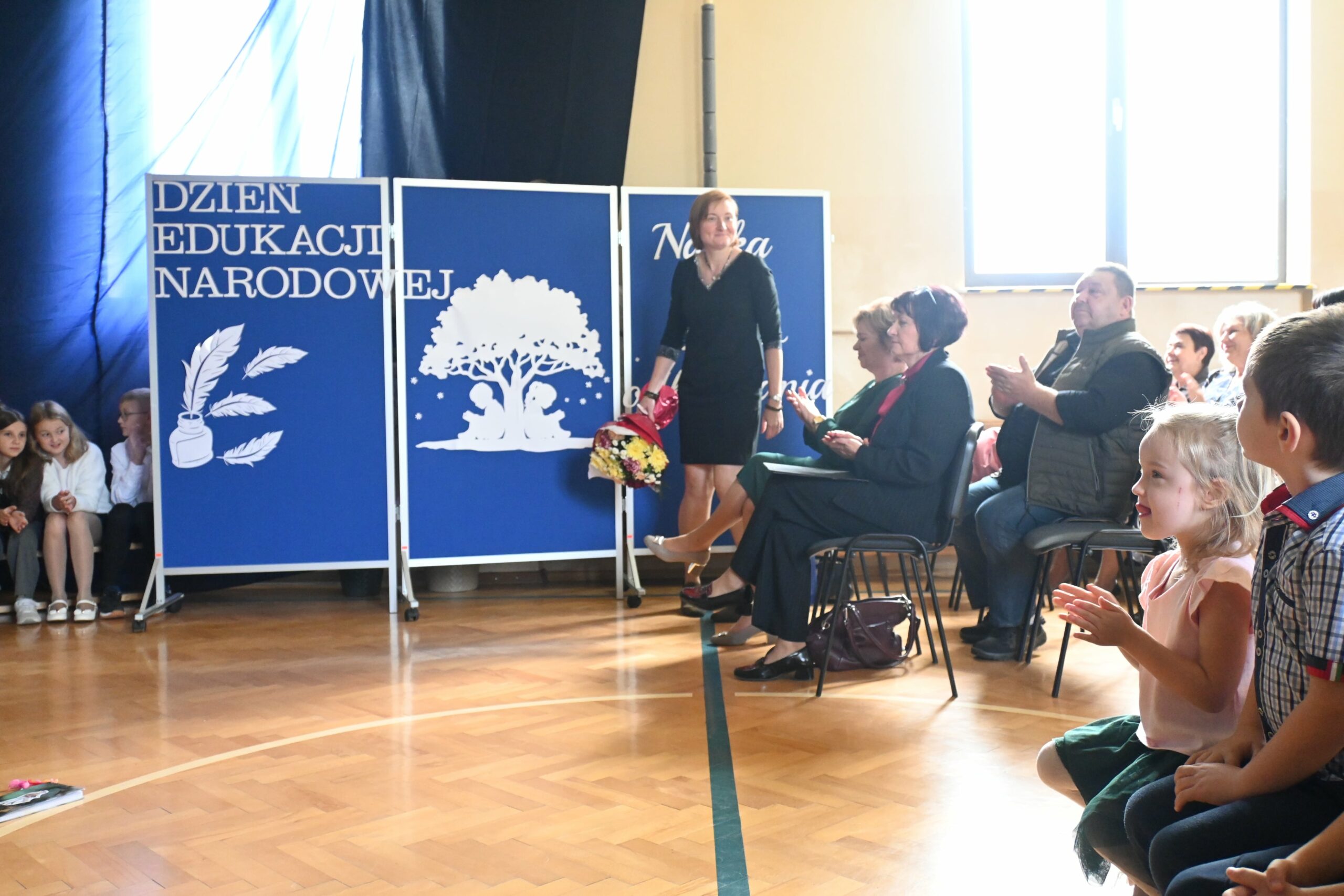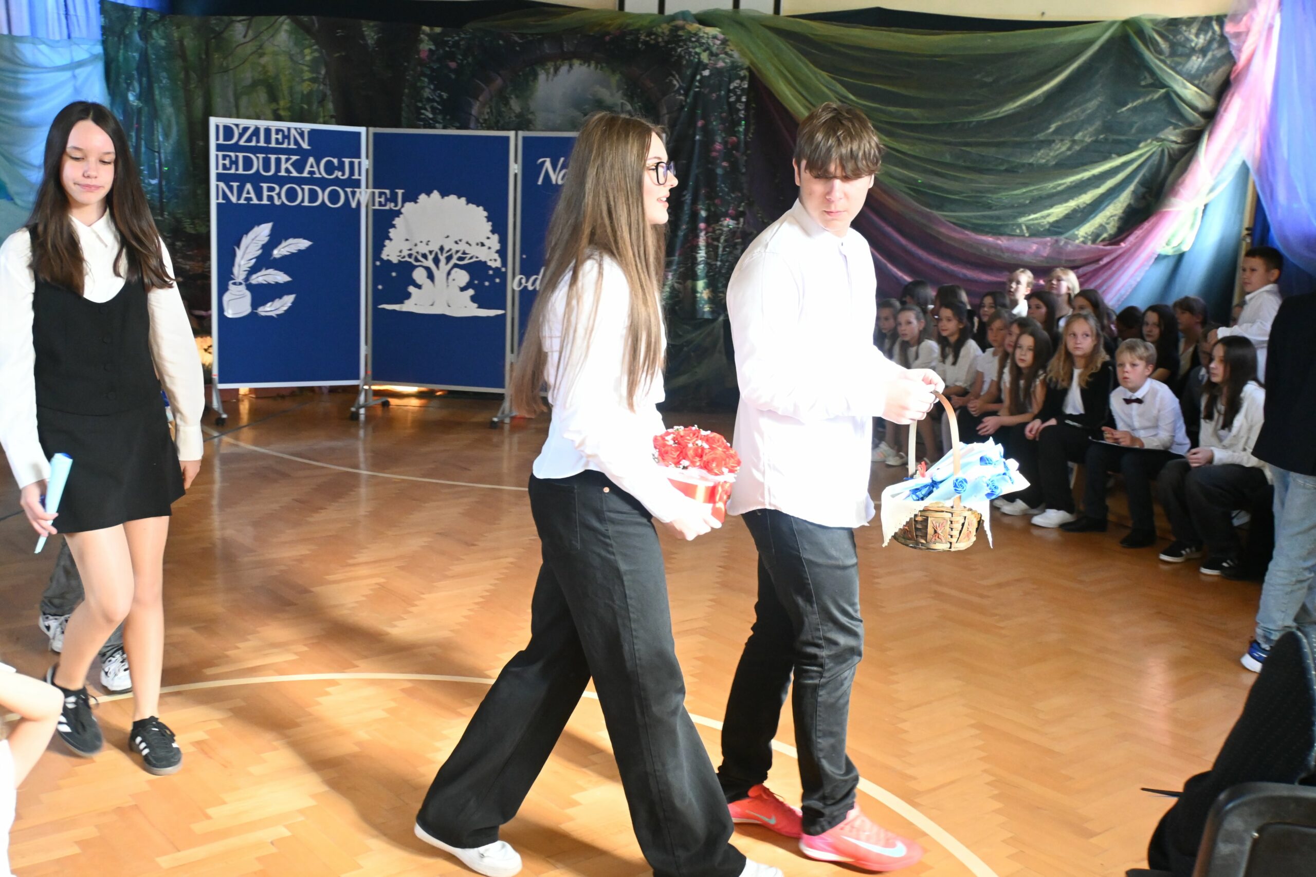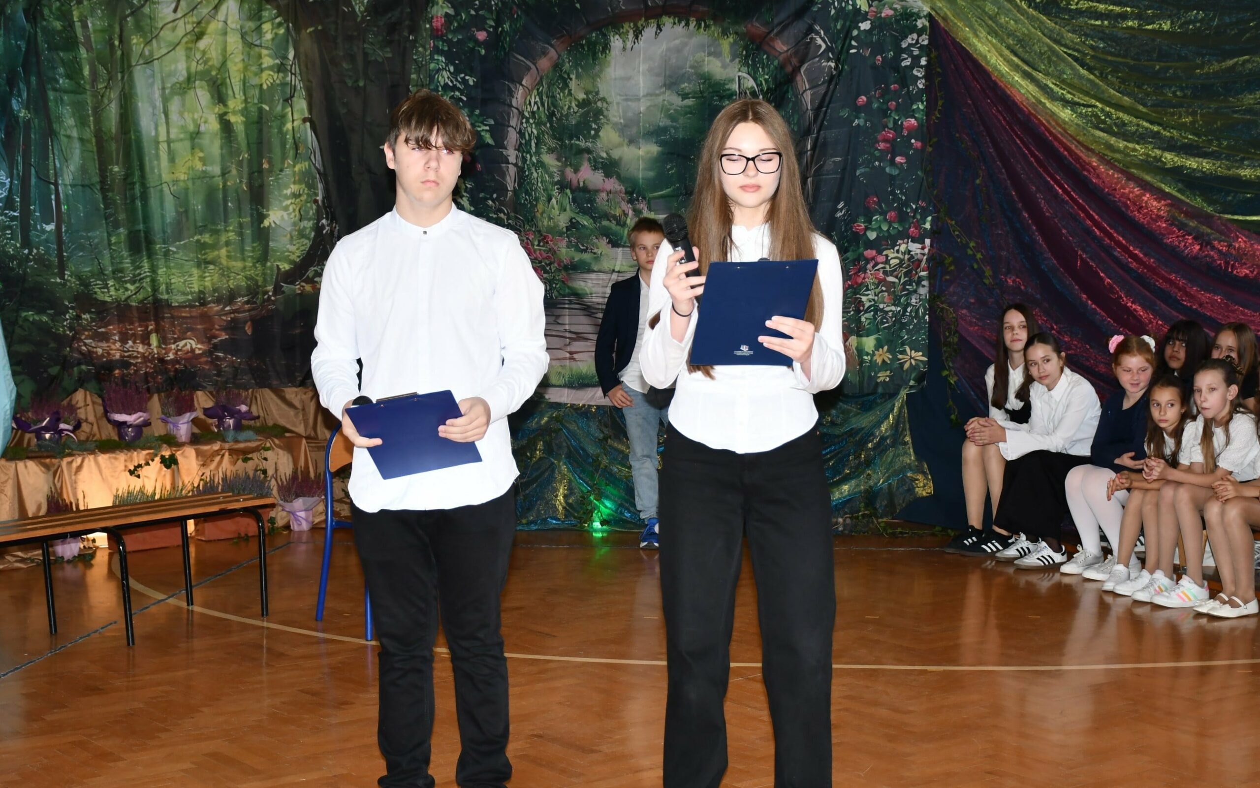 16 października w naszej szkole obchodziliśmy Dzień Edukacji Narodowej – wyjątkowe święto, w którym szczególnie wybrzmiewają słowa wdzięczności i uznania wobec wszystkich, którzy tworzą szkolną wspólnotę. Tego dnia w murach szkoły spotkali się nauczyciele, pracownicy, uczniowie oraz zaproszeni goście, by wspólnie świętować i wyrazić wdzięczność za trud, serce i zaangażowanie w codzienną pracę. Z tej okazji Samorząd Uczniowski przygotował wyjątkowy program artystyczny pt. Zaczarowany pamiętnik. Nasi utalentowani aktorzy z klas 5 i 8 zabrali wszystkich w niezwykłą podróż w czasie – aż do roku 3395. Tam spotkali nauczyciela z przyszłości, który przypomniał im, jak wielką rolę odgrywa pedagog w życiu młodego człowieka – w jego wychowaniu, rozwoju i poszukiwaniu własnej drogi. Poruszeni jego historią, uczniowie powrócili do teraźniejszości, by w imieniu wszystkich uczniów wyrazić wdzięczność tym, którzy każdego dnia z sercem i oddaniem kształtują ich świat. Tego dnia słowo dziękuję nabrało szczególnej mocy i wybrzmiało z głębi serc całej społeczności szkolnej. Wyrazy najwyższego uznania skierowano do nauczycieli – za mądrość, cierpliwość i poświęcenie, z jakim każdego dnia prowadzą uczniów ścieżką wiedzy. Za umiejętność dostrzegania w każdym dziecku jego wyjątkowości, za słowa otuchy, które dodają sił, oraz lekcje, które pozostają w pamięci na całe życie. Szczere podziękowania popłynęły także w stronę dyrekcji szkoły – za roztropne przewodnictwo, serdeczność i zrozumienie, a także za tworzenie atmosfery wzajemnego szacunku, życzliwości i bezpieczeństwa. Nie zapomniano również o pracownikach szkoły, których codzienna, często niedostrzegana praca sprawia, że szkoła jest miejscem pełnym ładu, ciepła i dobra. Całości uroczystości dopełniły pięknie zaśpiewane przez szkolny chór piosenki, które poruszyły serca wszystkich obecnych. Każda nuta niosła ze sobą emocje – od wzruszenia po radość i dumę z przynależności do naszej szkolnej wspólnoty. A gdy zabrzmiało gromkie Sto lat!, jego echo rozbrzmiało w całym budynku, niosąc się aż po ostatnie szkolne korytarze. Nie sposób nie wspomnieć o zachwycającej dekoracji, która idealnie współgrała z tym, co działo się na scenie. Scenografia przeniosła wszystkich w magiczny świat, a las, latarnia morska i kawałek błękitnego morza symbolicznie wskazywały drogę światła, mądrości i wiedzy, jaką nauczyciele roztaczają przed swoimi uczniami. To był dzień pełen wzruszeń, wdzięczności i pięknych emocji – dzień, który na długo pozostanie w pamięci całej szkolnej społeczności. Uroczystość zakończyły gromkie brawa, wspólne zdjęcie oraz rozmowy pełne ciepłych słów i uśmiechu. Wyrazy wdzięczności oraz życzenia skierowali do zebranych nasi zacni goście: Pani dr Małgorzata Szymańska – Burmistrz Miasta i Gminy Solec nad Wisłą, Pani Jadwiga Kandyba – Przewodnicząca Rady Miejskiej oraz Pan Zbigniewa Lasota – Przewodniczący Rady Rodziców, którzy swoją obecnością uświetnili uroczystość. Ich obecność, wsparcie i życzliwość stanowią dowód prawdziwej troski o rozwój i sukcesy szkoły.