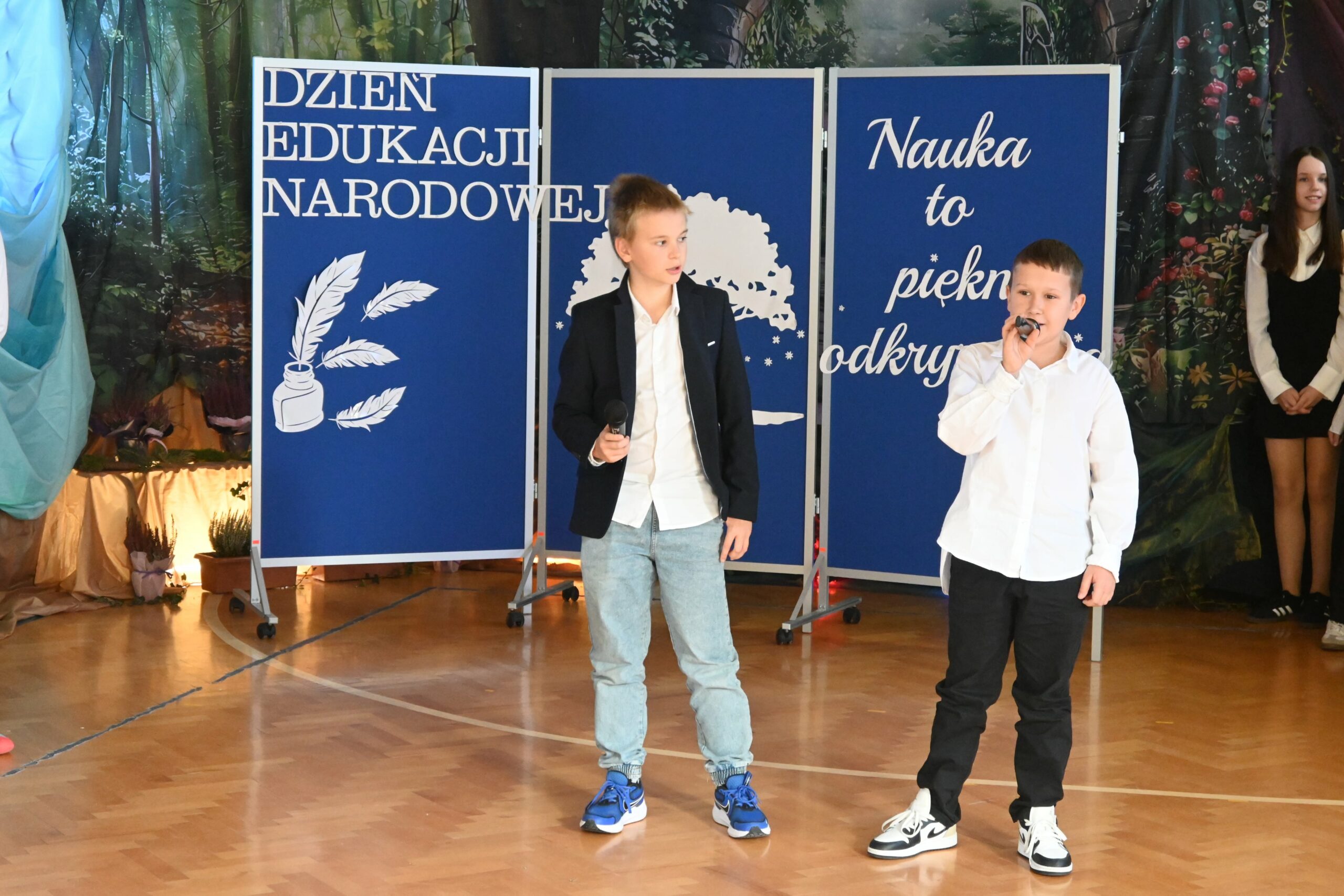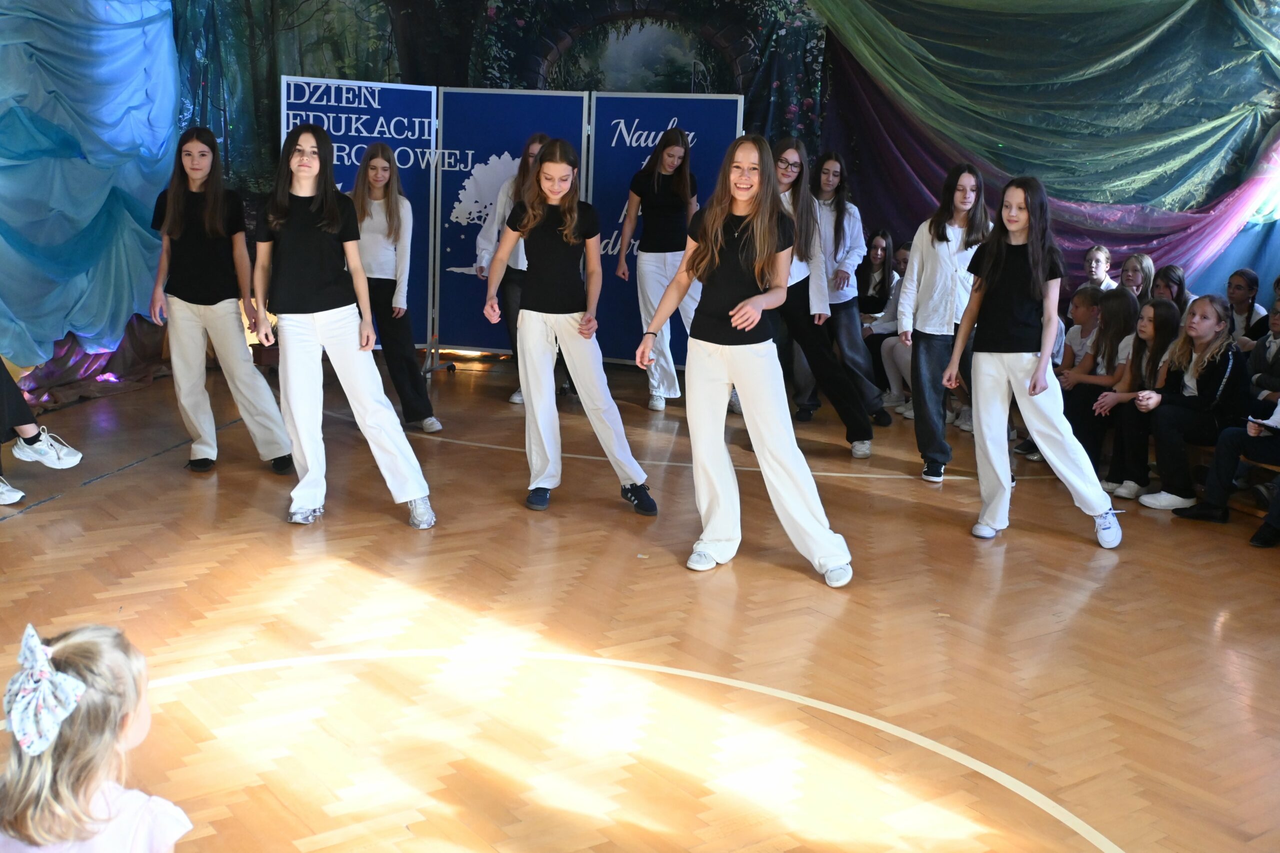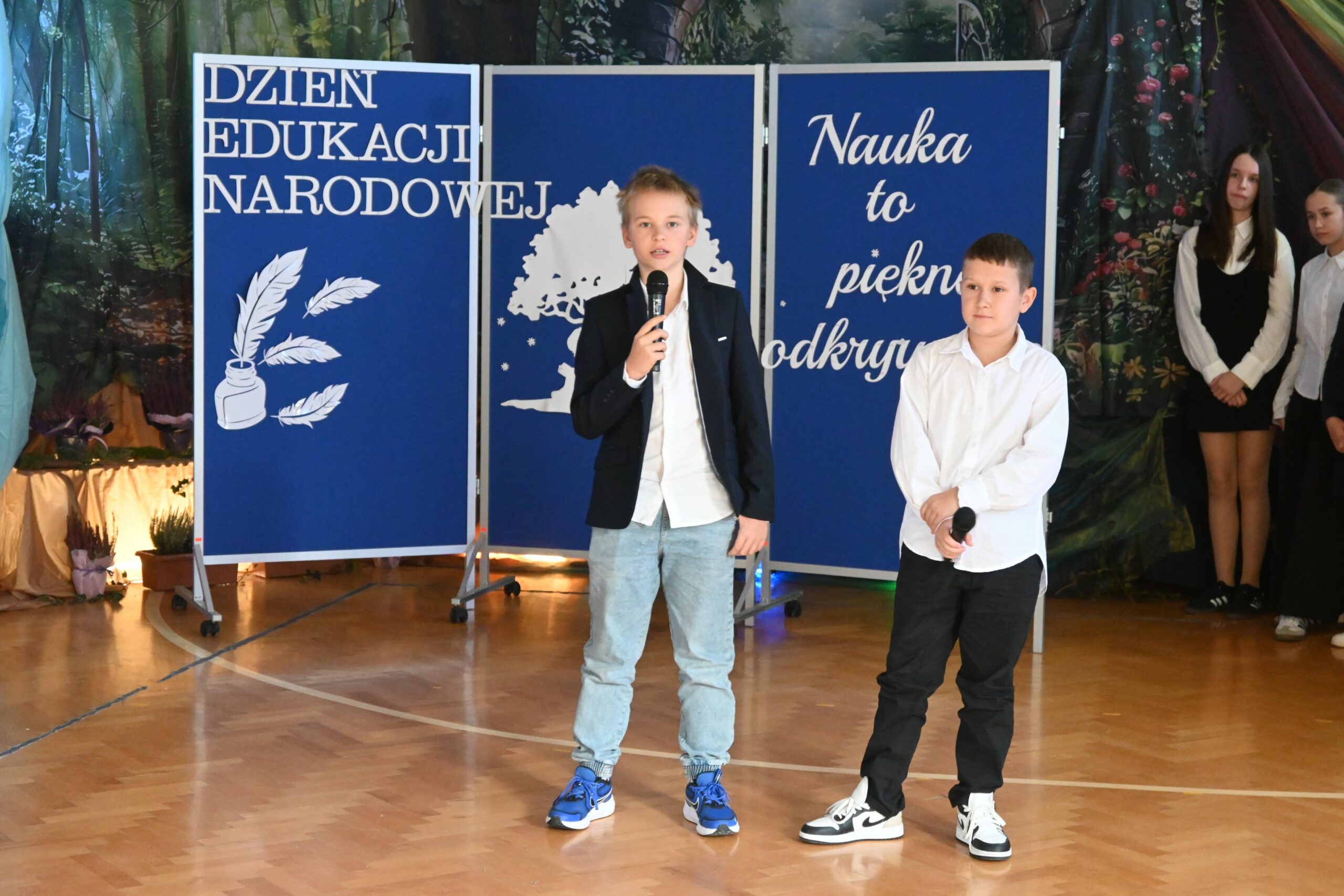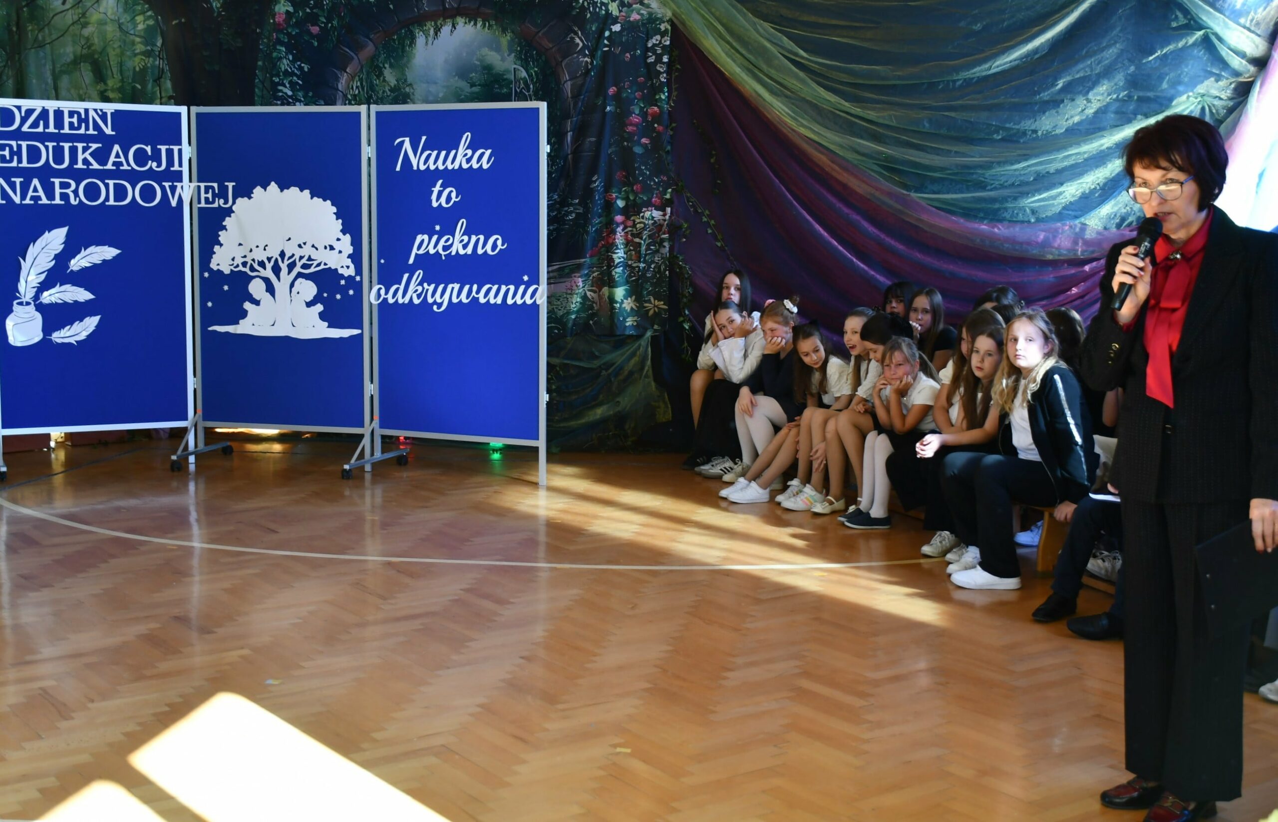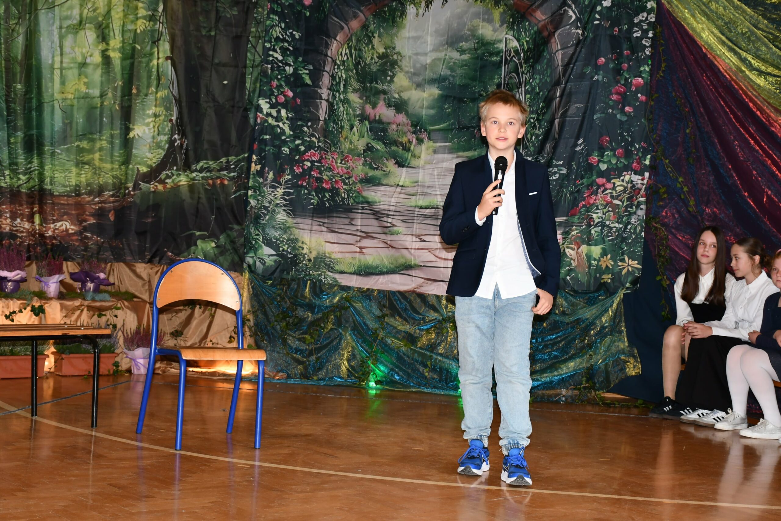 16 października w naszej szkole obchodziliśmy Dzień Edukacji Narodowej – wyjątkowe święto, w którym szczególnie wybrzmiewają słowa wdzięczności i uznania wobec wszystkich, którzy tworzą szkolną wspólnotę. Tego dnia w murach szkoły spotkali się nauczyciele, pracownicy, uczniowie oraz zaproszeni goście, by wspólnie świętować i wyrazić wdzięczność za trud, serce i zaangażowanie w codzienną pracę. Z tej okazji Samorząd Uczniowski przygotował wyjątkowy program artystyczny pt. Zaczarowany pamiętnik. Nasi utalentowani aktorzy z klas 5 i 8 zabrali wszystkich w niezwykłą podróż w czasie – aż do roku 3395. Tam spotkali nauczyciela z przyszłości, który przypomniał im, jak wielką rolę odgrywa pedagog w życiu młodego człowieka – w jego wychowaniu, rozwoju i poszukiwaniu własnej drogi. Poruszeni jego historią, uczniowie powrócili do teraźniejszości, by w imieniu wszystkich uczniów wyrazić wdzięczność tym, którzy każdego dnia z sercem i oddaniem kształtują ich świat. Tego dnia słowo dziękuję nabrało szczególnej mocy i wybrzmiało z głębi serc całej społeczności szkolnej. Wyrazy najwyższego uznania skierowano do nauczycieli – za mądrość, cierpliwość i poświęcenie, z jakim każdego dnia prowadzą uczniów ścieżką wiedzy. Za umiejętność dostrzegania w każdym dziecku jego wyjątkowości, za słowa otuchy, które dodają sił, oraz lekcje, które pozostają w pamięci na całe życie. Szczere podziękowania popłynęły także w stronę dyrekcji szkoły – za roztropne przewodnictwo, serdeczność i zrozumienie, a także za tworzenie atmosfery wzajemnego szacunku, życzliwości i bezpieczeństwa. Nie zapomniano również o pracownikach szkoły, których codzienna, często niedostrzegana praca sprawia, że szkoła jest miejscem pełnym ładu, ciepła i dobra. Całości uroczystości dopełniły pięknie zaśpiewane przez szkolny chór piosenki, które poruszyły serca wszystkich obecnych. Każda nuta niosła ze sobą emocje – od wzruszenia po radość i dumę z przynależności do naszej szkolnej wspólnoty. A gdy zabrzmiało gromkie Sto lat!, jego echo rozbrzmiało w całym budynku, niosąc się aż po ostatnie szkolne korytarze. Nie sposób nie wspomnieć o zachwycającej dekoracji, która idealnie współgrała z tym, co działo się na scenie. Scenografia przeniosła wszystkich w magiczny świat, a las, latarnia morska i kawałek błękitnego morza symbolicznie wskazywały drogę światła, mądrości i wiedzy, jaką nauczyciele roztaczają przed swoimi uczniami. To był dzień pełen wzruszeń, wdzięczności i pięknych emocji – dzień, który na długo pozostanie w pamięci całej szkolnej społeczności. Uroczystość zakończyły gromkie brawa, wspólne zdjęcie oraz rozmowy pełne ciepłych słów i uśmiechu. Wyrazy wdzięczności oraz życzenia skierowali do zebranych nasi zacni goście: Pani dr Małgorzata Szymańska – Burmistrz Miasta i Gminy Solec nad Wisłą, Pani Jadwiga Kandyba – Przewodnicząca Rady Miejskiej oraz Pan Zbigniewa Lasota – Przewodniczący Rady Rodziców, którzy swoją obecnością uświetnili uroczystość. Ich obecność, wsparcie i życzliwość stanowią dowód prawdziwej troski o rozwój i sukcesy szkoły.