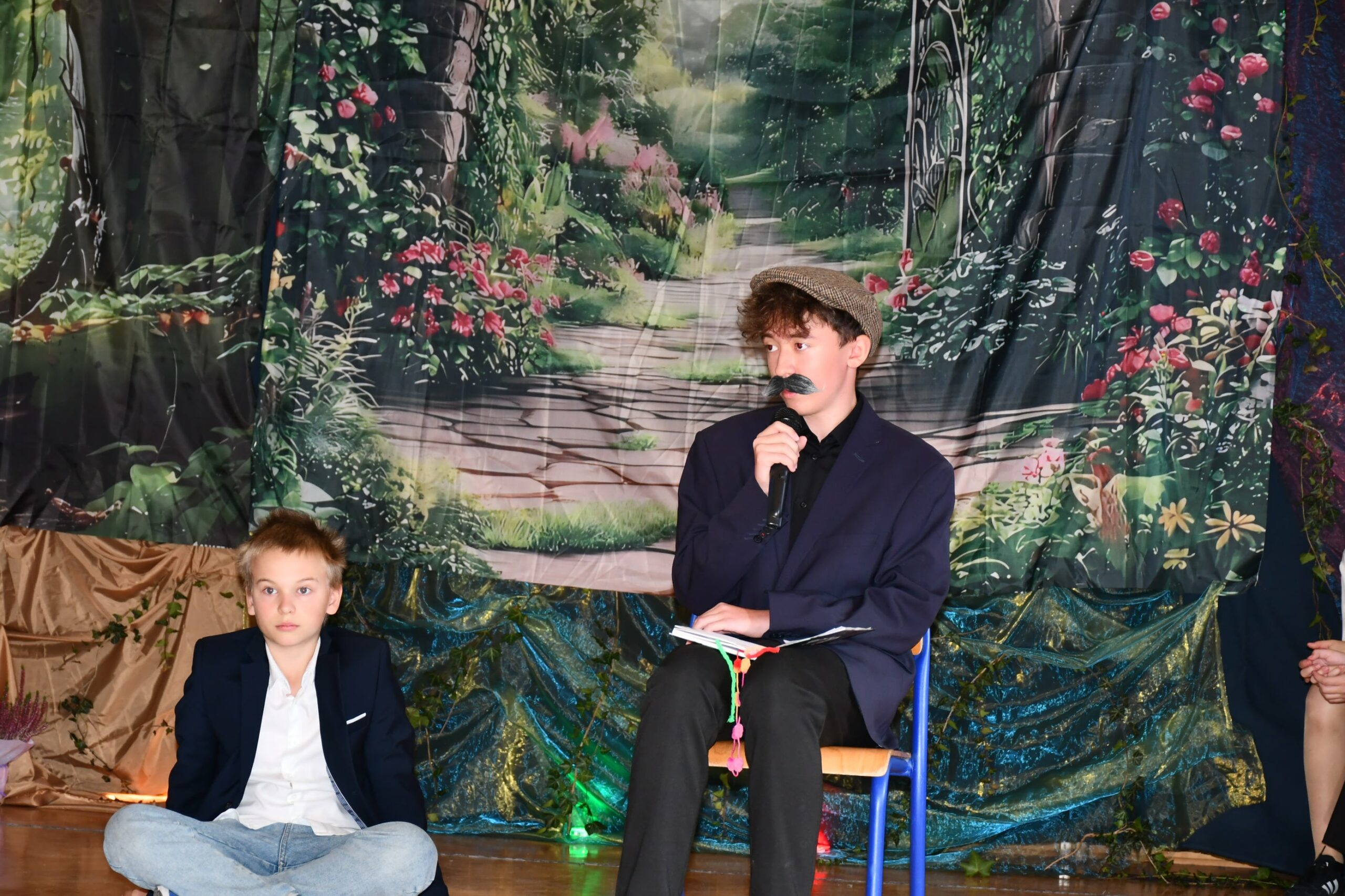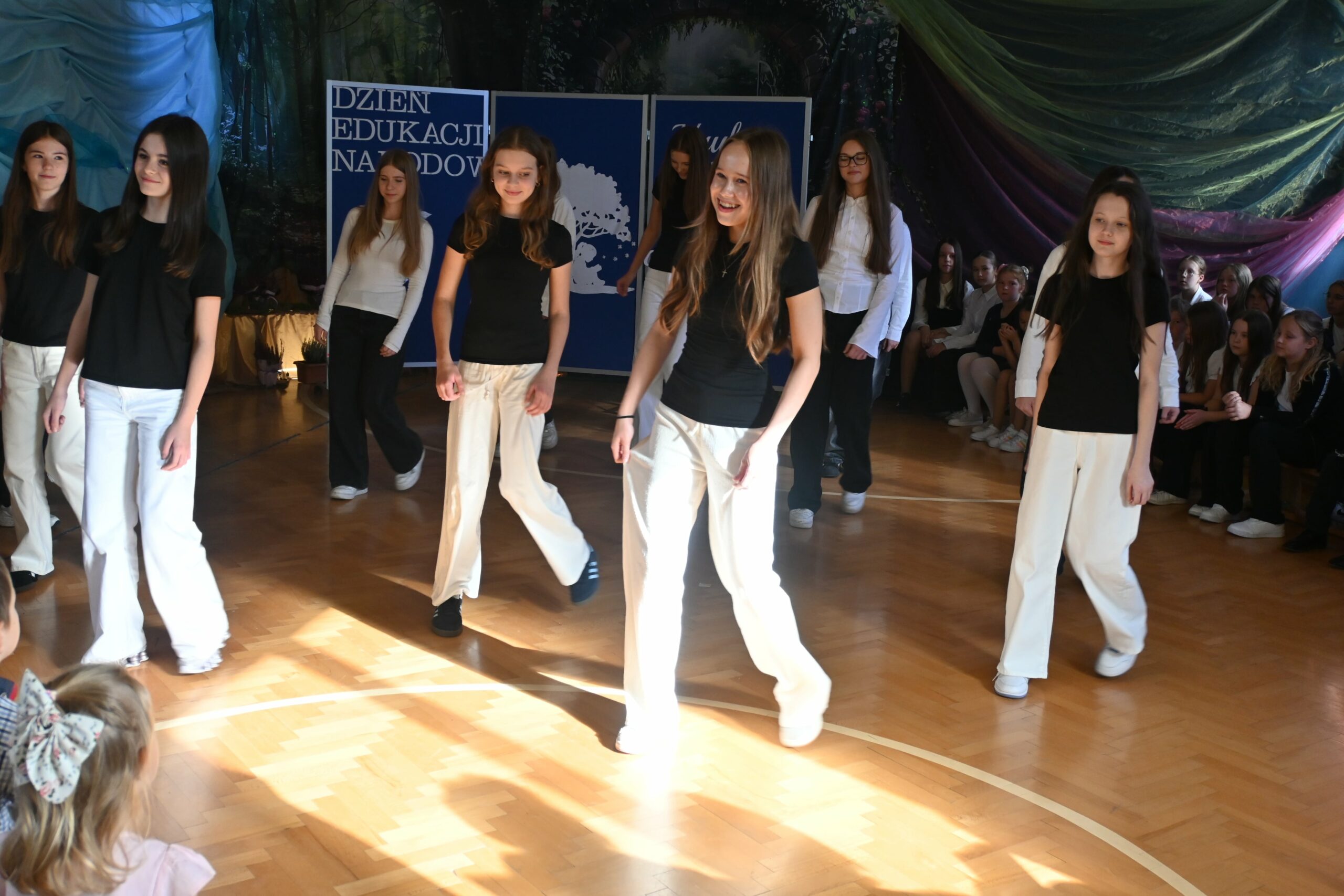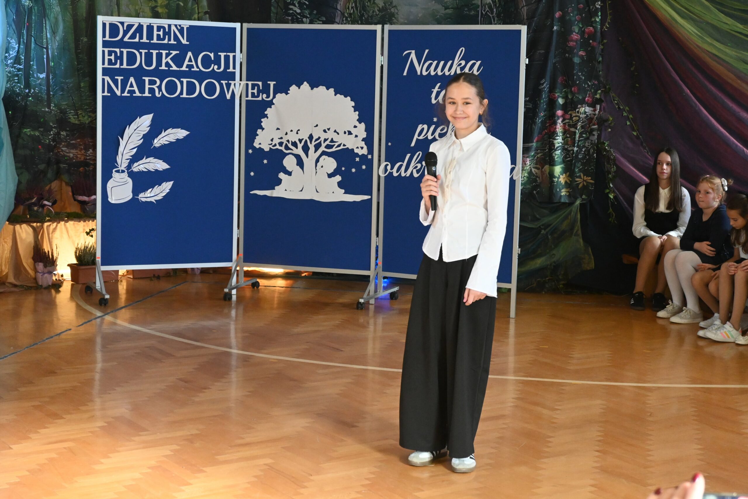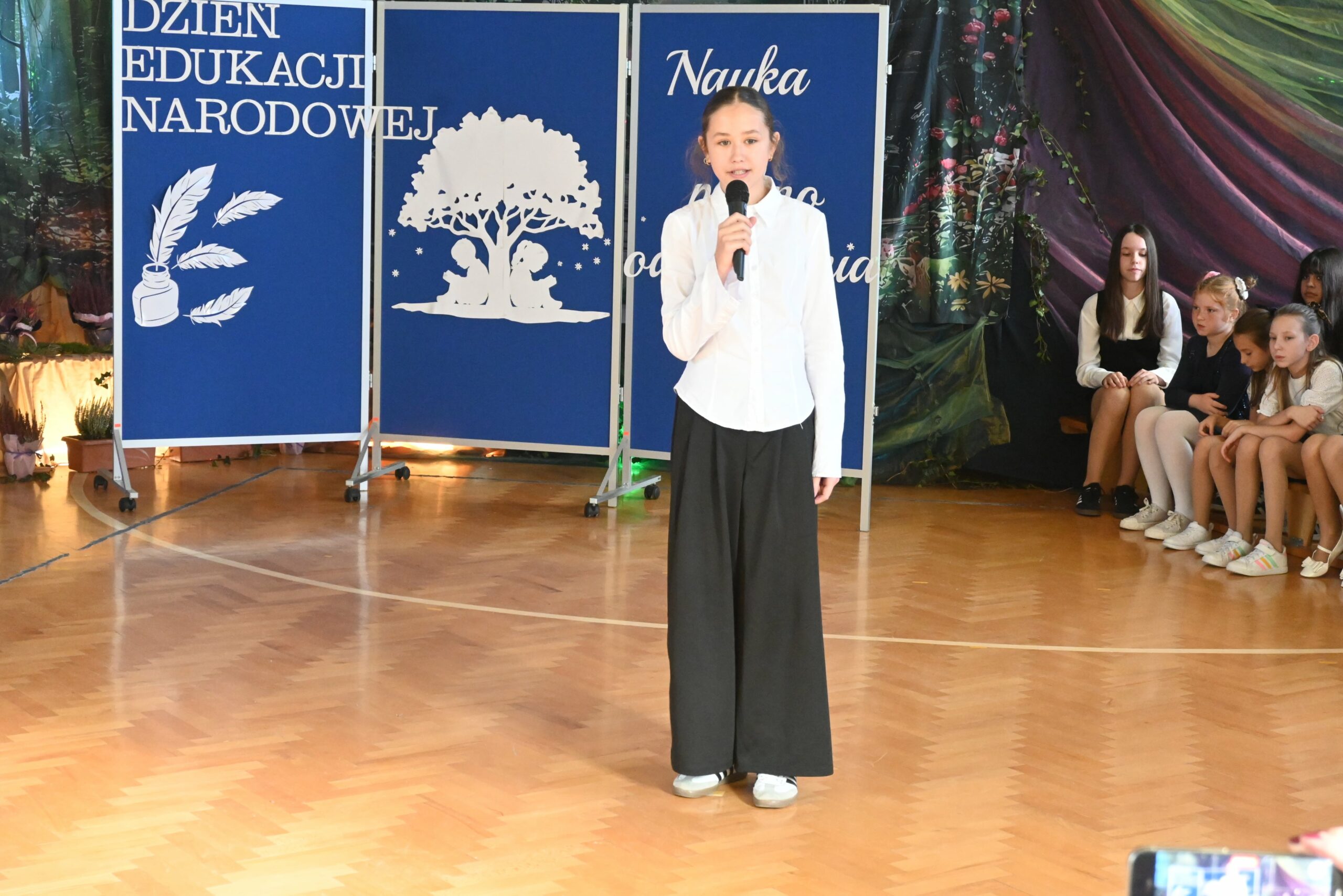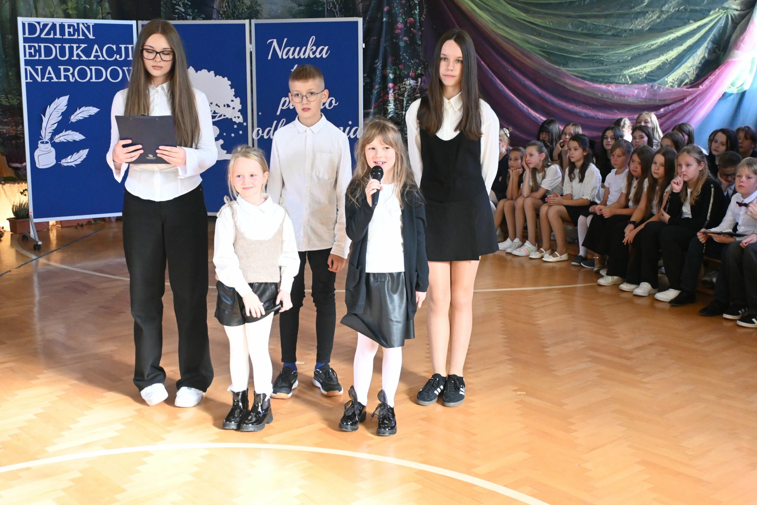 16 października w naszej szkole obchodziliśmy Dzień Edukacji Narodowej – wyjątkowe święto, w którym szczególnie wybrzmiewają słowa wdzięczności i uznania wobec wszystkich, którzy tworzą szkolną wspólnotę. Tego dnia w murach szkoły spotkali się nauczyciele, pracownicy, uczniowie oraz zaproszeni goście, by wspólnie świętować i wyrazić wdzięczność za trud, serce i zaangażowanie w codzienną pracę. Z tej okazji Samorząd Uczniowski przygotował wyjątkowy program artystyczny pt. Zaczarowany pamiętnik. Nasi utalentowani aktorzy z klas 5 i 8 zabrali wszystkich w niezwykłą podróż w czasie – aż do roku 3395. Tam spotkali nauczyciela z przyszłości, który przypomniał im, jak wielką rolę odgrywa pedagog w życiu młodego człowieka – w jego wychowaniu, rozwoju i poszukiwaniu własnej drogi. Poruszeni jego historią, uczniowie powrócili do teraźniejszości, by w imieniu wszystkich uczniów wyrazić wdzięczność tym, którzy każdego dnia z sercem i oddaniem kształtują ich świat. Tego dnia słowo dziękuję nabrało szczególnej mocy i wybrzmiało z głębi serc całej społeczności szkolnej. Wyrazy najwyższego uznania skierowano do nauczycieli – za mądrość, cierpliwość i poświęcenie, z jakim każdego dnia prowadzą uczniów ścieżką wiedzy. Za umiejętność dostrzegania w każdym dziecku jego wyjątkowości, za słowa otuchy, które dodają sił, oraz lekcje, które pozostają w pamięci na całe życie. Szczere podziękowania popłynęły także w stronę dyrekcji szkoły – za roztropne przewodnictwo, serdeczność i zrozumienie, a także za tworzenie atmosfery wzajemnego szacunku, życzliwości i bezpieczeństwa. Nie zapomniano również o pracownikach szkoły, których codzienna, często niedostrzegana praca sprawia, że szkoła jest miejscem pełnym ładu, ciepła i dobra. Całości uroczystości dopełniły pięknie zaśpiewane przez szkolny chór piosenki, które poruszyły serca wszystkich obecnych. Każda nuta niosła ze sobą emocje – od wzruszenia po radość i dumę z przynależności do naszej szkolnej wspólnoty. A gdy zabrzmiało gromkie Sto lat!, jego echo rozbrzmiało w całym budynku, niosąc się aż po ostatnie szkolne korytarze. Nie sposób nie wspomnieć o zachwycającej dekoracji, która idealnie współgrała z tym, co działo się na scenie. Scenografia przeniosła wszystkich w magiczny świat, a las, latarnia morska i kawałek błękitnego morza symbolicznie wskazywały drogę światła, mądrości i wiedzy, jaką nauczyciele roztaczają przed swoimi uczniami. To był dzień pełen wzruszeń, wdzięczności i pięknych emocji – dzień, który na długo pozostanie w pamięci całej szkolnej społeczności. Uroczystość zakończyły gromkie brawa, wspólne zdjęcie oraz rozmowy pełne ciepłych słów i uśmiechu. Wyrazy wdzięczności oraz życzenia skierowali do zebranych nasi zacni goście: Pani dr Małgorzata Szymańska – Burmistrz Miasta i Gminy Solec nad Wisłą, Pani Jadwiga Kandyba – Przewodnicząca Rady Miejskiej oraz Pan Zbigniewa Lasota – Przewodniczący Rady Rodziców, którzy swoją obecnością uświetnili uroczystość. Ich obecność, wsparcie i życzliwość stanowią dowód prawdziwej troski o rozwój i sukcesy szkoły.