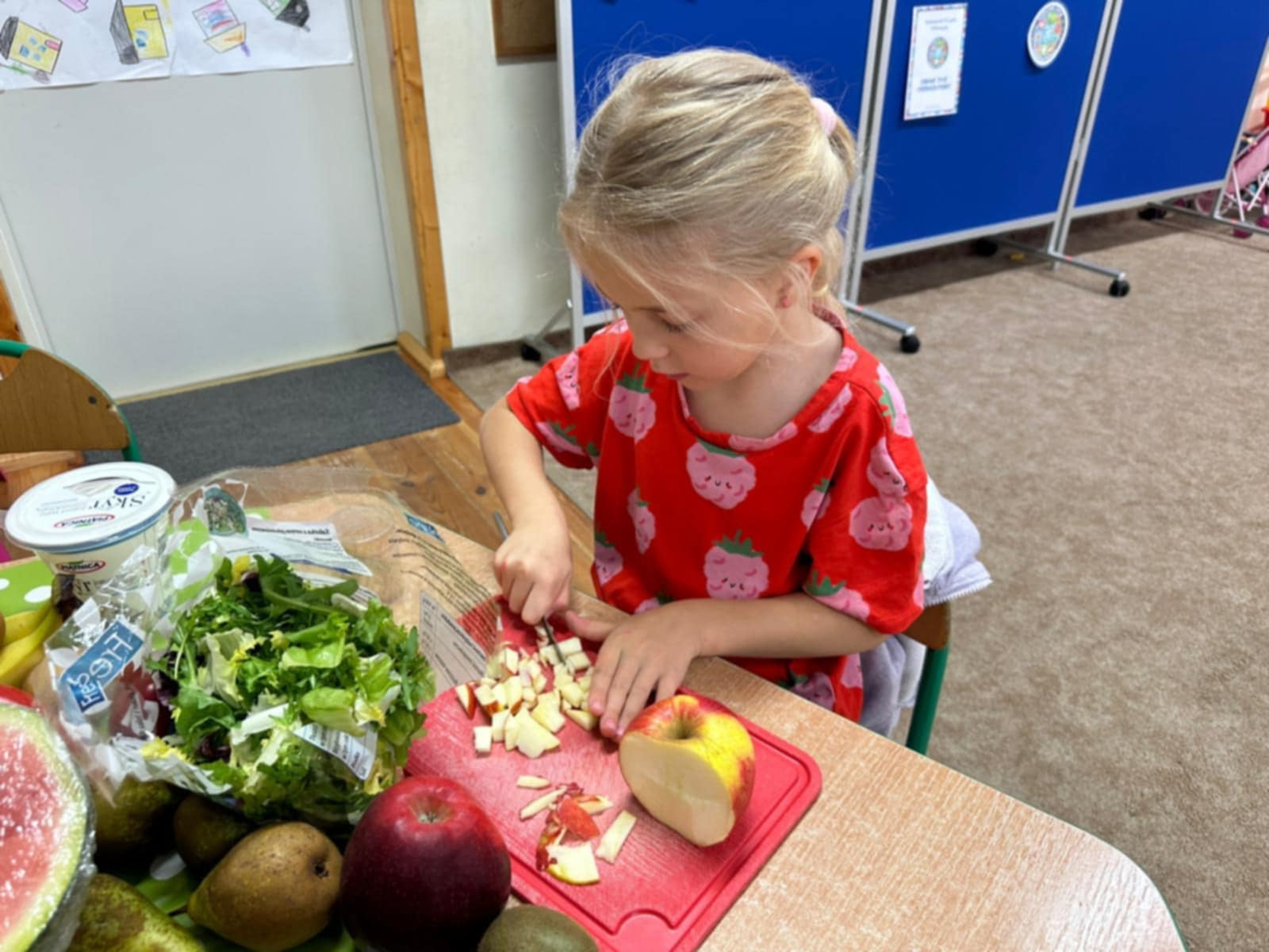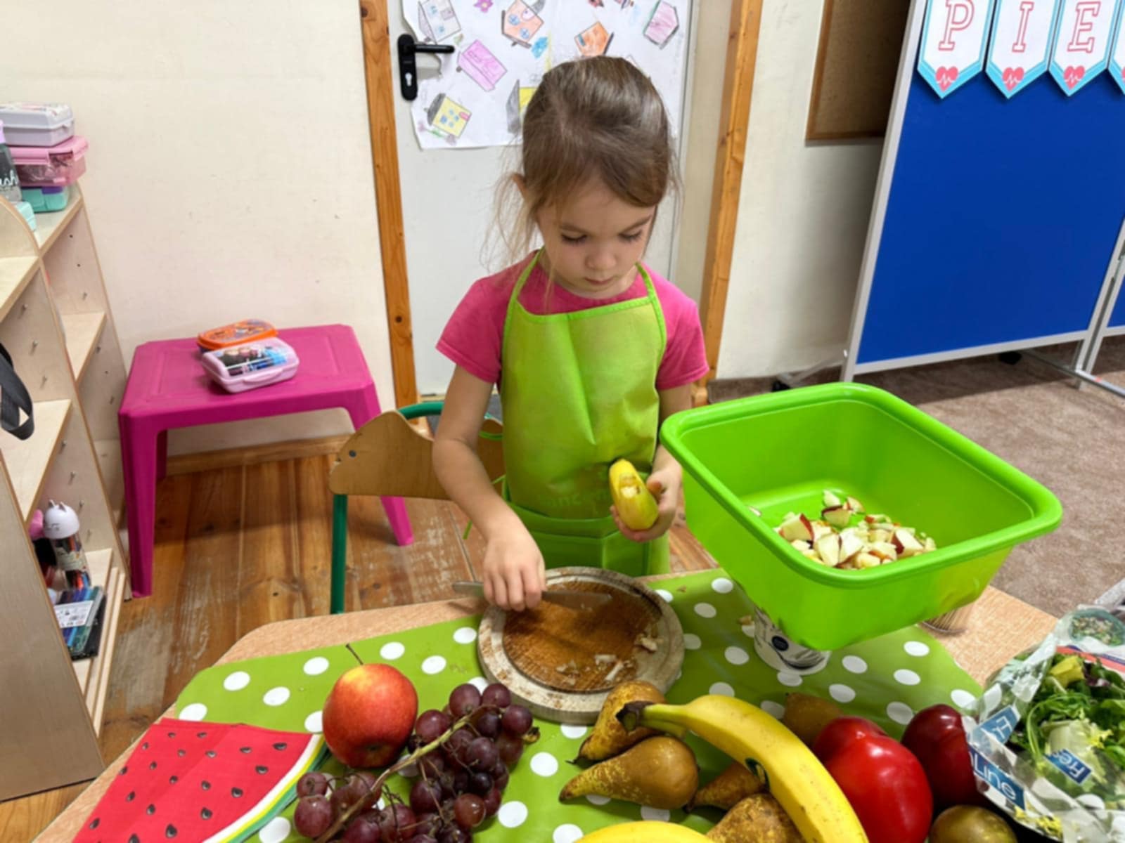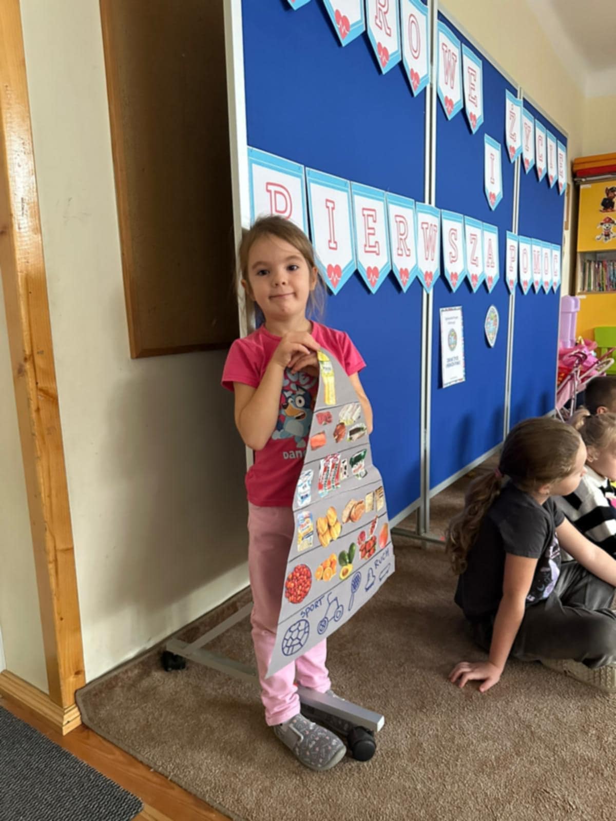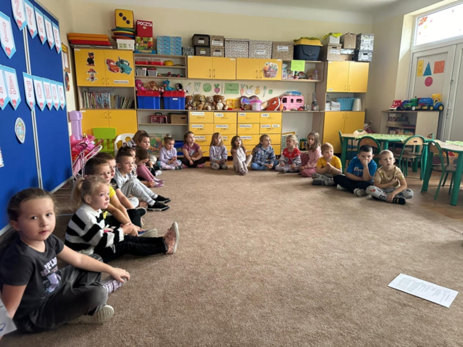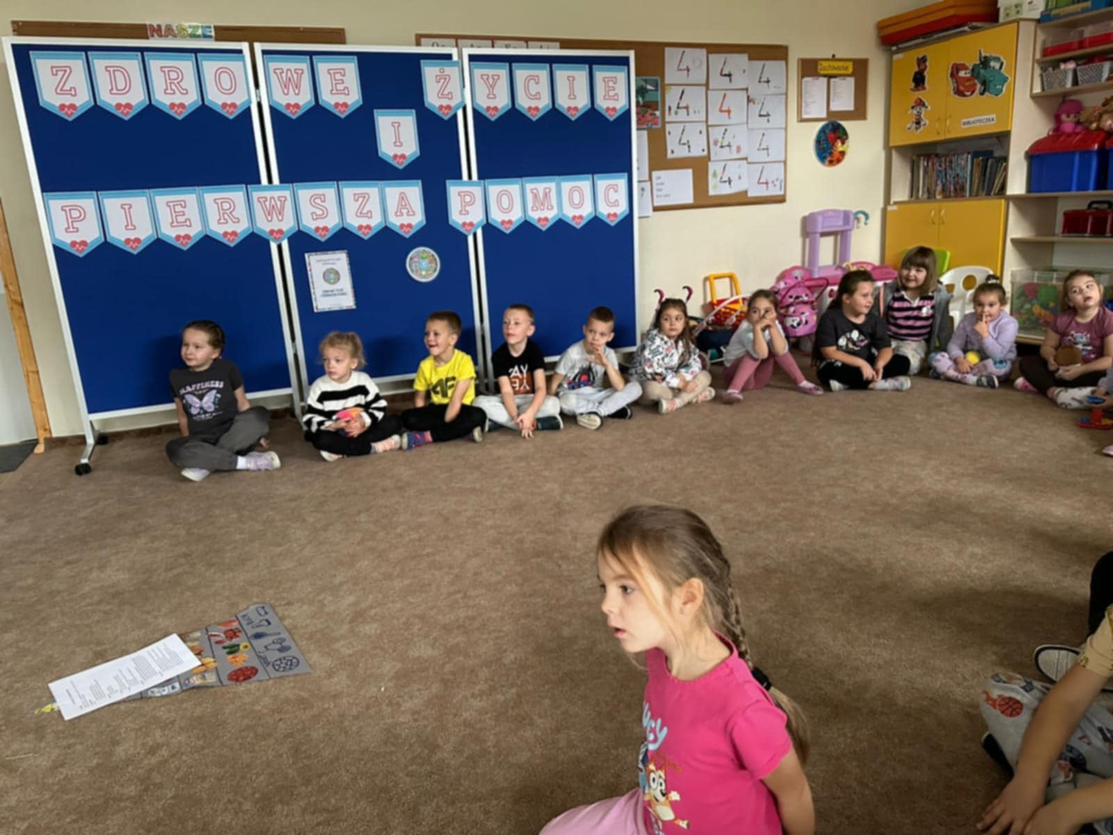W ramach ogólnopolskiego projektu edukacyjnego „Zdrowe życie i pierwsza pomoc” w grupie przedszkolnej „Jeżyki” odbyły się zajęcia – „Zaczynamy zdrowo”. Spotkanie poświęcone było tematyce zdrowego odżywiania oraz kształtowaniu prawidłowych nawyków żywieniowych już od najmłodszych lat. Celem zajęć było zapoznanie dzieci z zasadami zdrowego stylu życia, a także rozwijanie umiejętności przygotowywania prostych, zdrowych przekąsek. Dzieci poznały piramidę żywieniową, dowiedziały się, które produkty należy jeść najczęściej, a które rzadziej. Podczas prezentacji multimedialnej przedszkolaki uczyły się rozróżniać grupy produktów spożywczych, takie jak owoce, warzywa, produkty zbożowe, nabiał i białka. Następnie przystąpiły do przygotowywania zdrowych przekąsek. Z dużym zaangażowaniem kroiły owoce, układały kolorowe sałatki i dekorowały talerze. W trakcie zajęć przypomniano zasady bezpiecznego posługiwania się nożem i narzędziami kuchennymi. Po zakończeniu pracy zaprezentowano potrawy, opowiadając o użytych składnikach i ich wartościach odżywczych. Najciekawsza była degustacja, podczas której dzieci z radością próbowały przygotowanych przekąsek. Zajęcia w grupie „Jeżyki” przebiegły w radosnej i twórczej atmosferze. Dzieci z entuzjazmem uczestniczyły w każdym etapie, wykazały się dużą wiedzą, pomysłowością i chęcią współpracy.