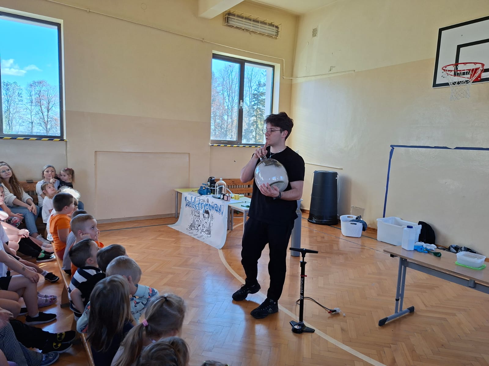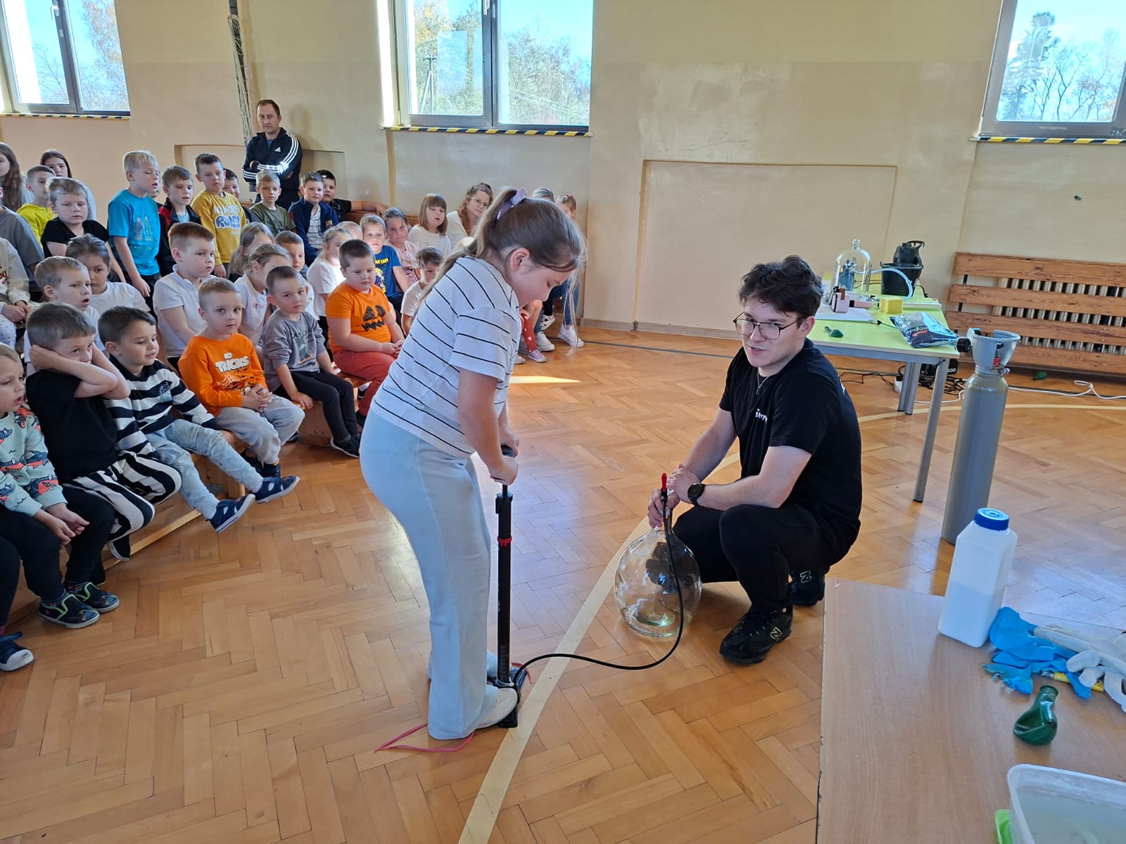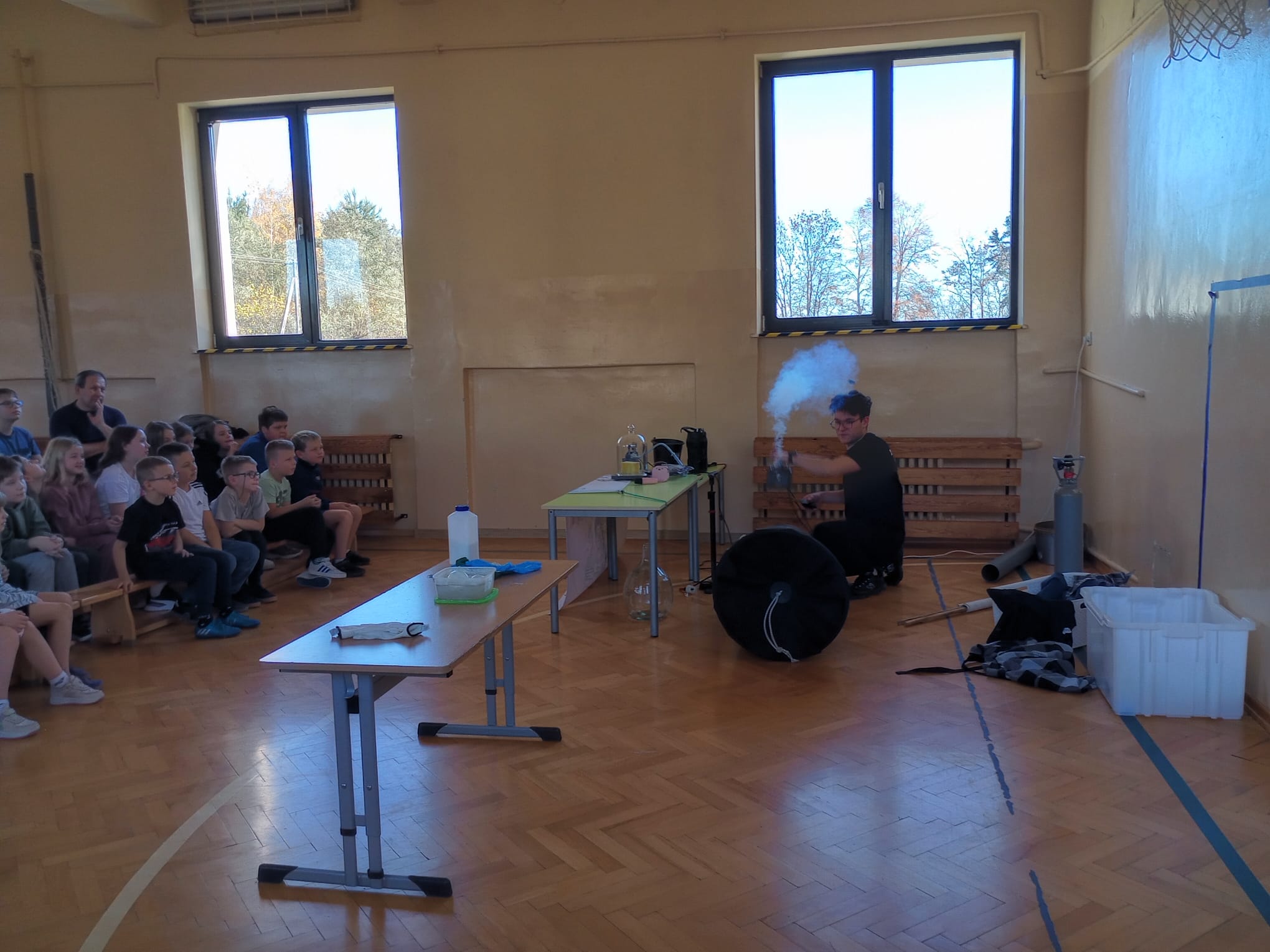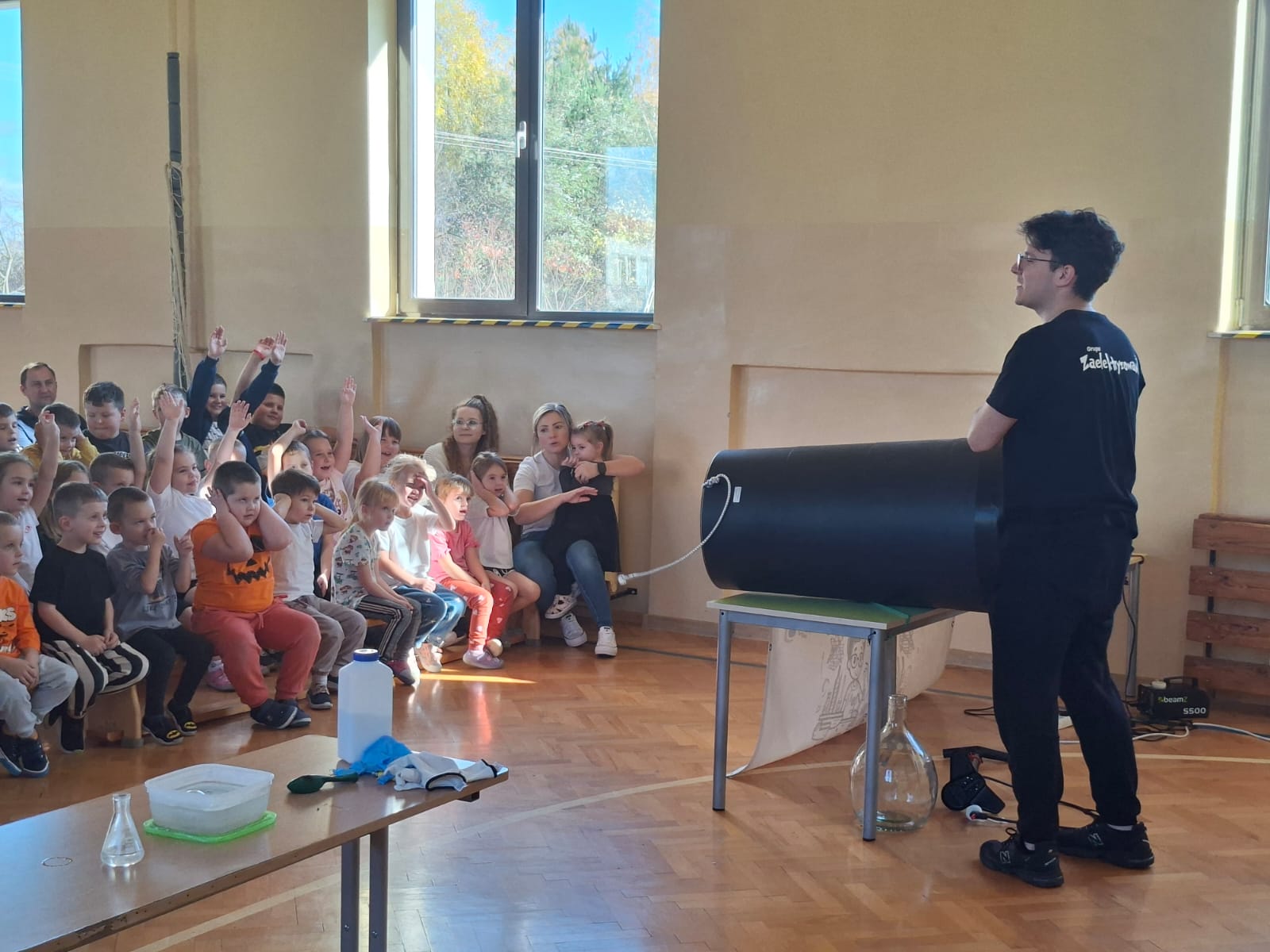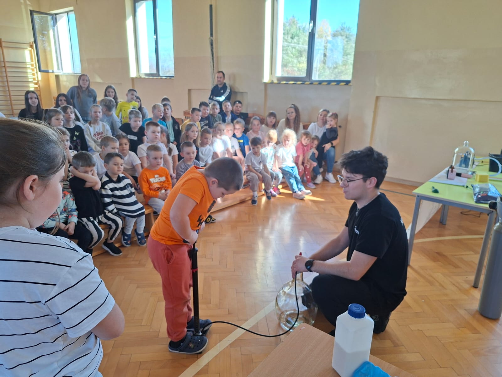 Dnia 31 października w Publicznej Szkole Podstawowej w Solcu nad Wisłą odbyły się pokazy fizyczne pod hasłem „Zaelektryzowani”. Celem spotkania było przybliżenie uczniom zjawisk fizycznych, wyjaśnienie tego, co uczniowie obserwują, a nie zawsze są świadomi, jakie to zjawiska. Prowadzący rozpoczął od pytania do uczniów, czy znają jakieś gazy. Dzieci wymieniły kilka, a wśród nich hel. Fizyk wytłumaczył- jakim gazem jest hel, a następnie wykonał doświadczenie używając tego gazu- napompował balonik, potem kilku starszych uczniów wdychało pierwiastek- mówienie rozbawiło uczestników. Kolejne doświadczenia- tworzenie chmur z gazu i alkoholu (proces kondensacji), z powietrzem, itd. zainteresowały uczniów o czym świadczą emocjonalne reakcje, pytania do prowadzącego i brawa.