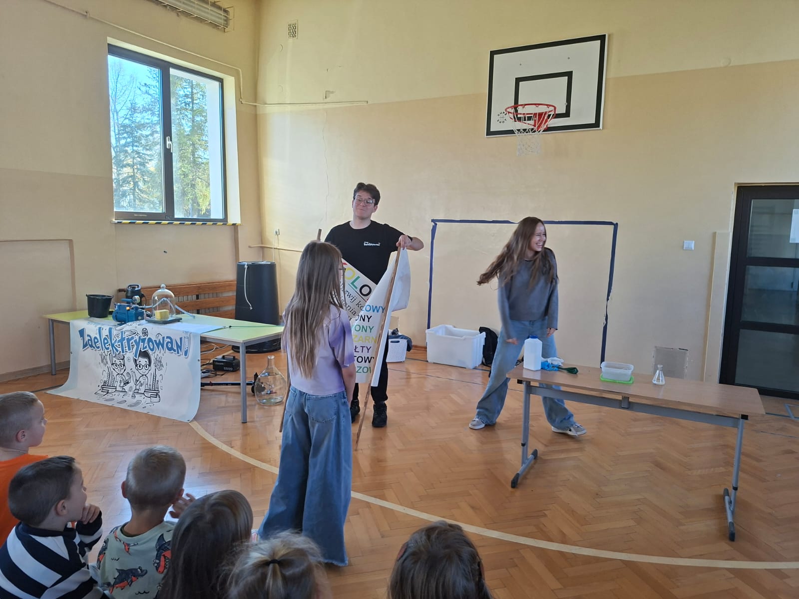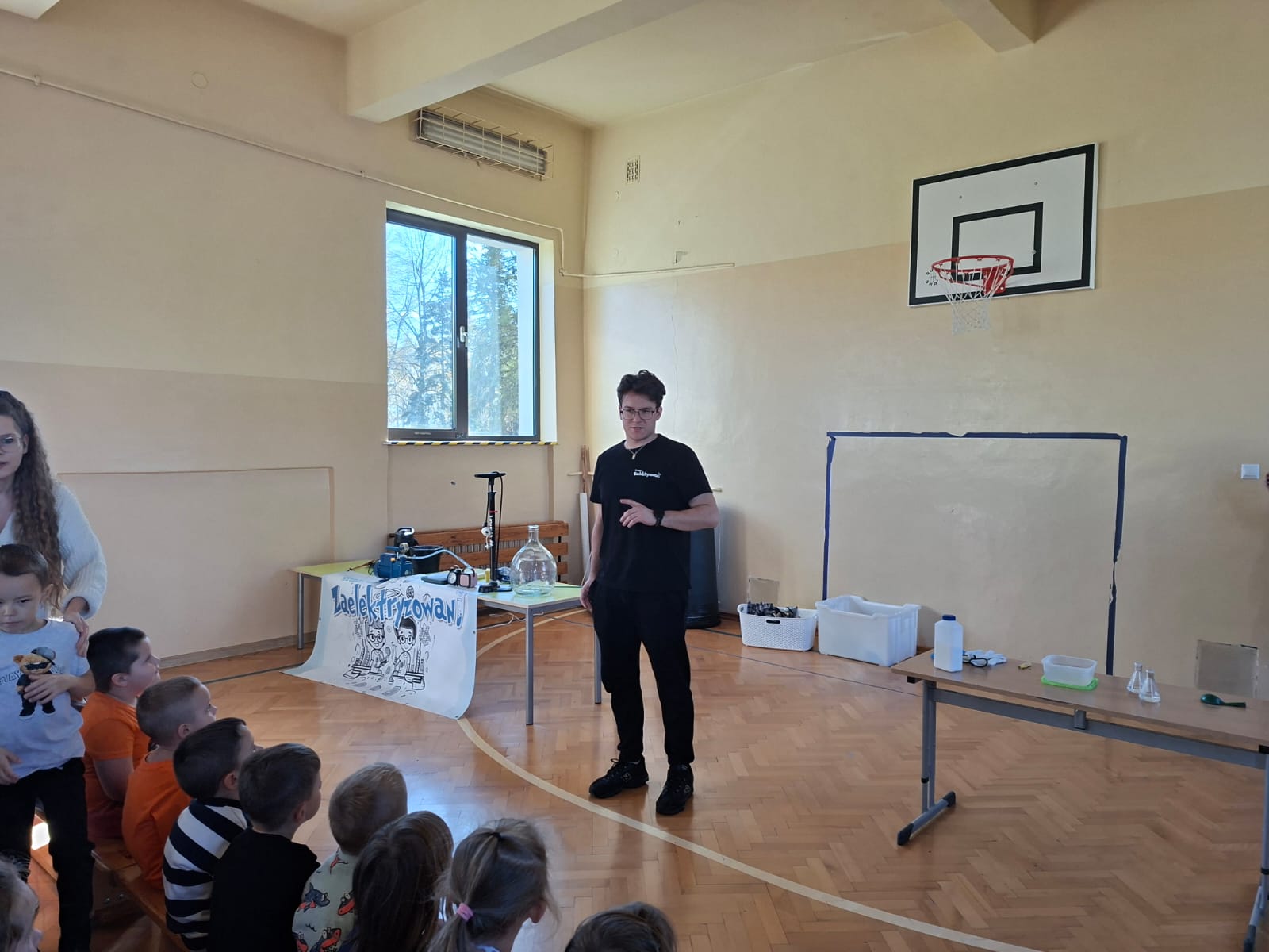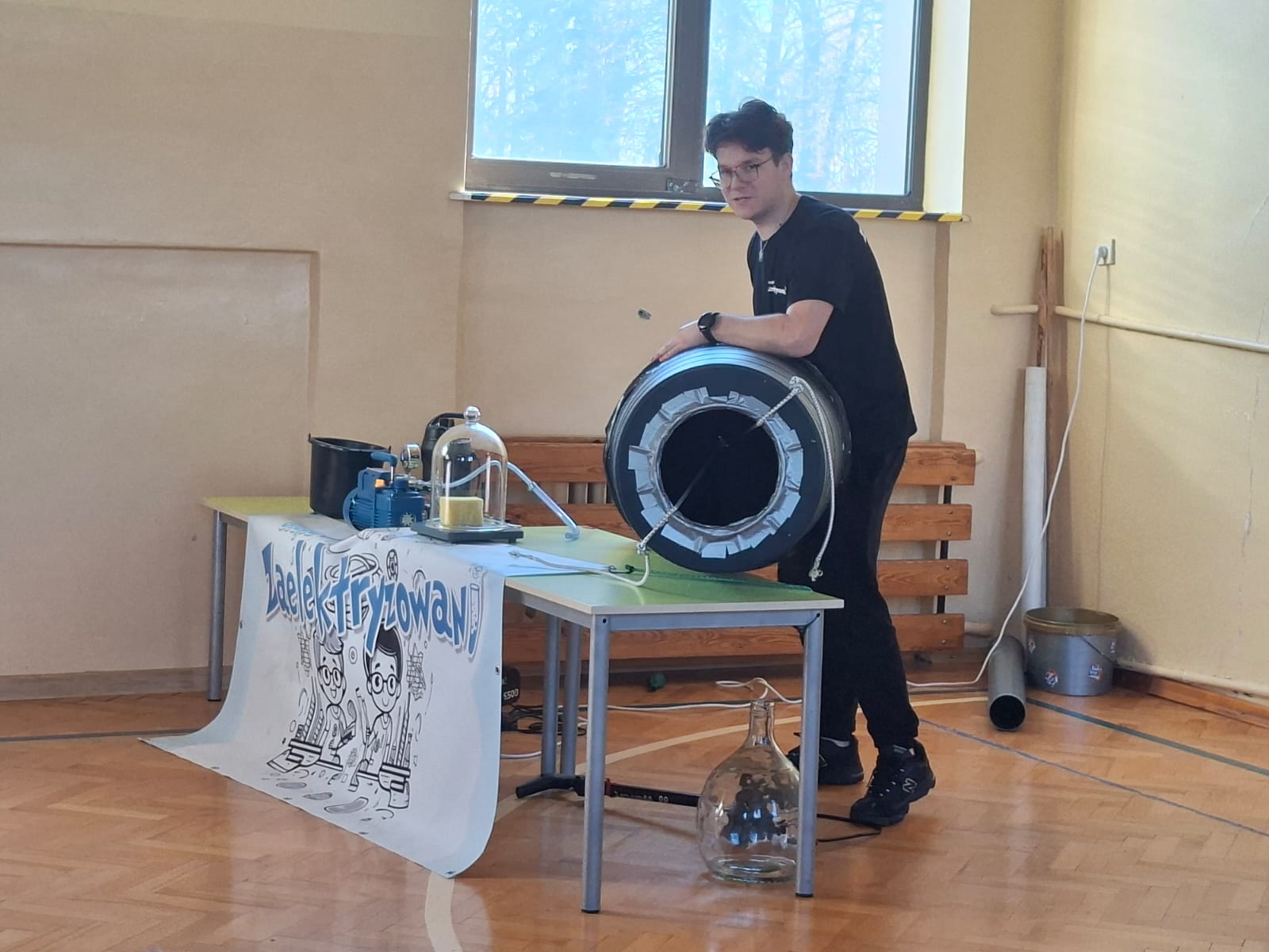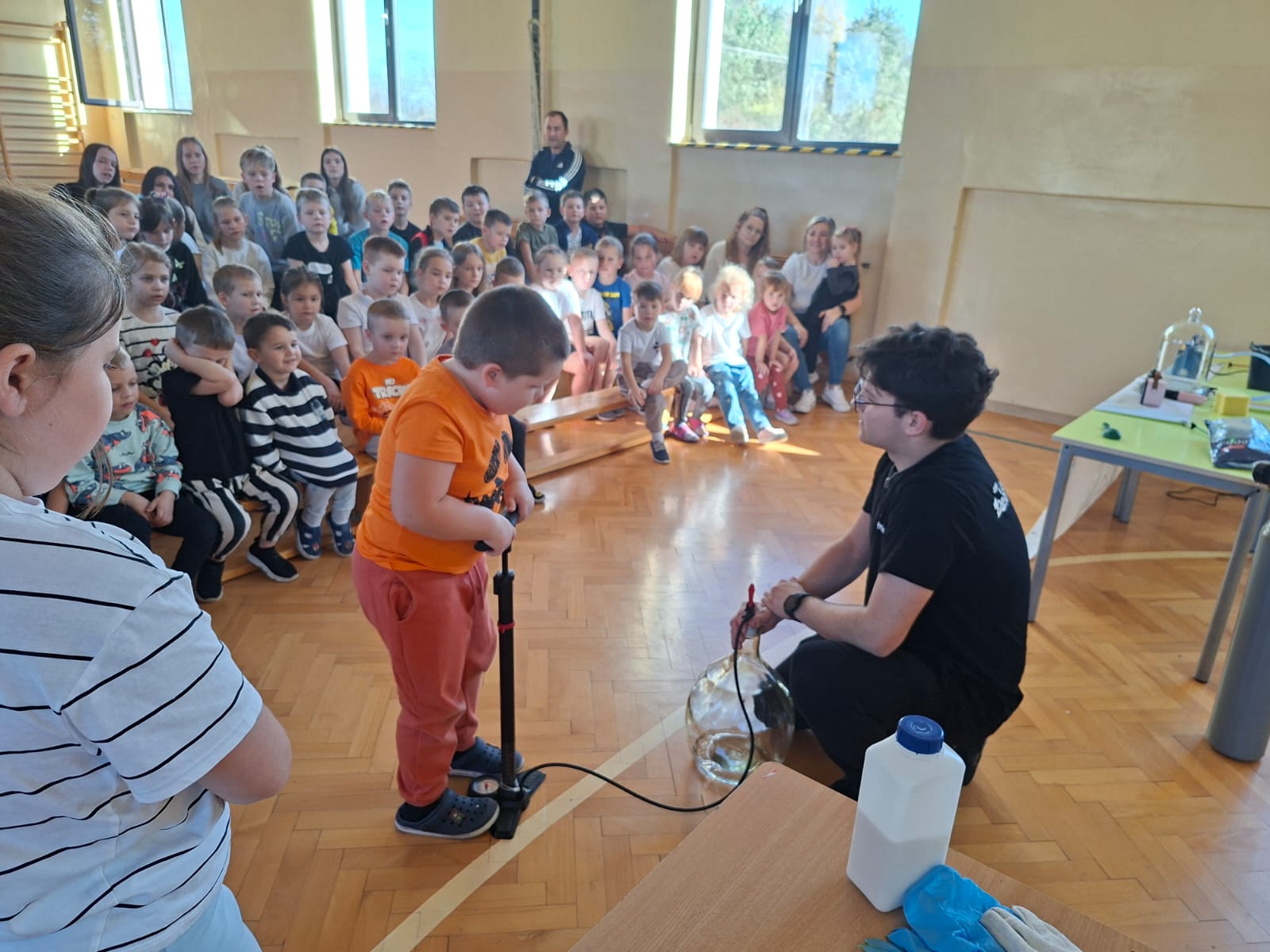 Dnia 31 października w Publicznej Szkole Podstawowej w Solcu nad Wisłą odbyły się pokazy fizyczne pod hasłem „Zaelektryzowani”. Celem spotkania było przybliżenie uczniom zjawisk fizycznych, wyjaśnienie tego, co uczniowie obserwują, a nie zawsze są świadomi, jakie to zjawiska. Prowadzący rozpoczął od pytania do uczniów, czy znają jakieś gazy. Dzieci wymieniły kilka, a wśród nich hel. Fizyk wytłumaczył- jakim gazem jest hel, a następnie wykonał doświadczenie używając tego gazu- napompował balonik, potem kilku starszych uczniów wdychało pierwiastek- mówienie rozbawiło uczestników. Kolejne doświadczenia- tworzenie chmur z gazu i alkoholu (proces kondensacji), z powietrzem, itd. zainteresowały uczniów o czym świadczą emocjonalne reakcje, pytania do prowadzącego i brawa.