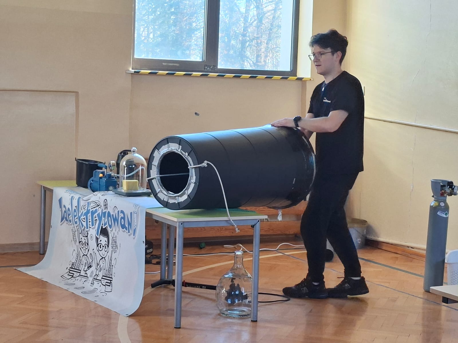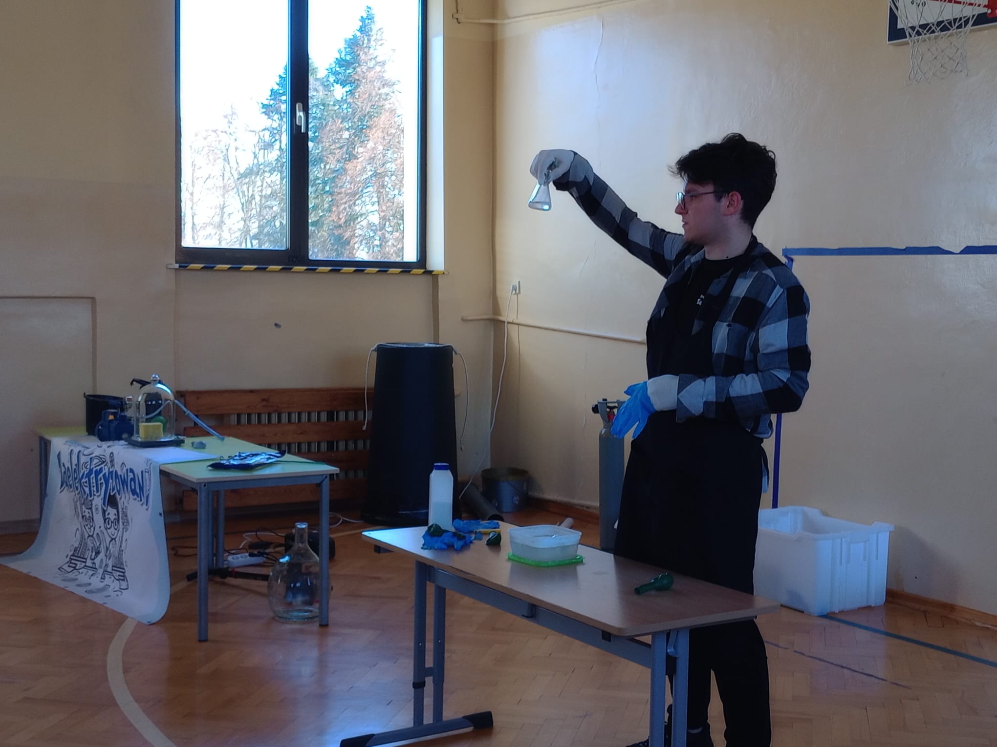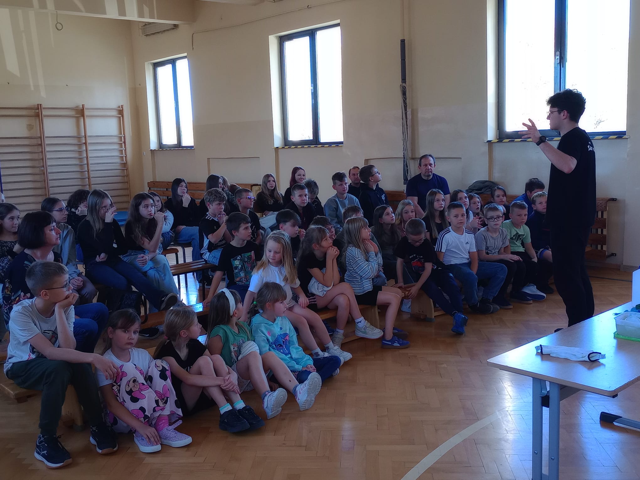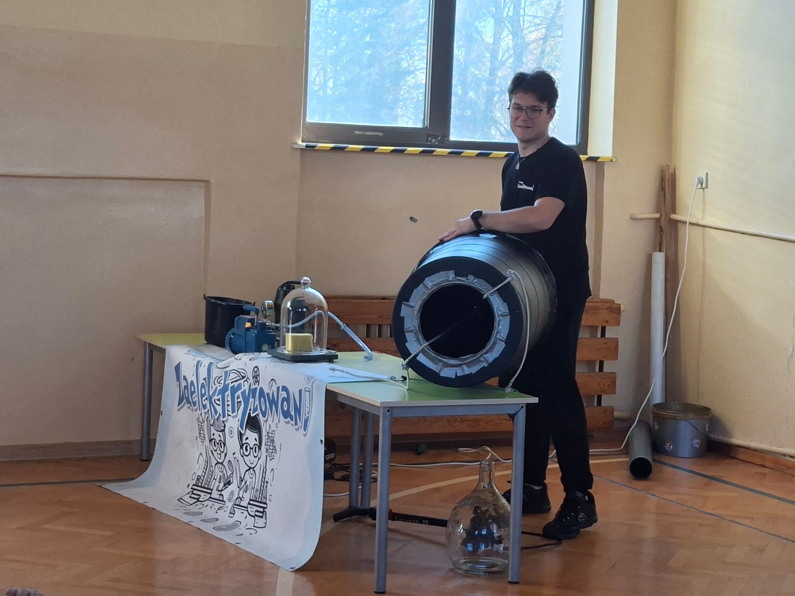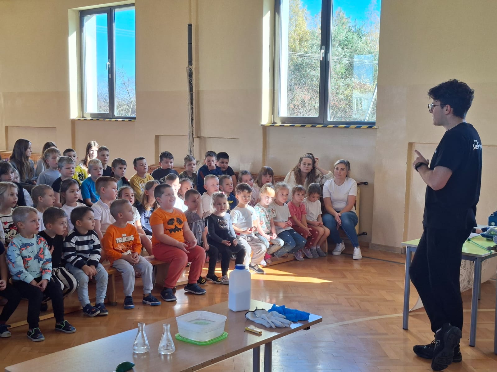 Dnia 31 października w Publicznej Szkole Podstawowej w Solcu nad Wisłą odbyły się pokazy fizyczne pod hasłem „Zaelektryzowani”. Celem spotkania było przybliżenie uczniom zjawisk fizycznych, wyjaśnienie tego, co uczniowie obserwują, a nie zawsze są świadomi, jakie to zjawiska. Prowadzący rozpoczął od pytania do uczniów, czy znają jakieś gazy. Dzieci wymieniły kilka, a wśród nich hel. Fizyk wytłumaczył- jakim gazem jest hel, a następnie wykonał doświadczenie używając tego gazu- napompował balonik, potem kilku starszych uczniów wdychało pierwiastek- mówienie rozbawiło uczestników. Kolejne doświadczenia- tworzenie chmur z gazu i alkoholu (proces kondensacji), z powietrzem, itd. zainteresowały uczniów o czym świadczą emocjonalne reakcje, pytania do prowadzącego i brawa.