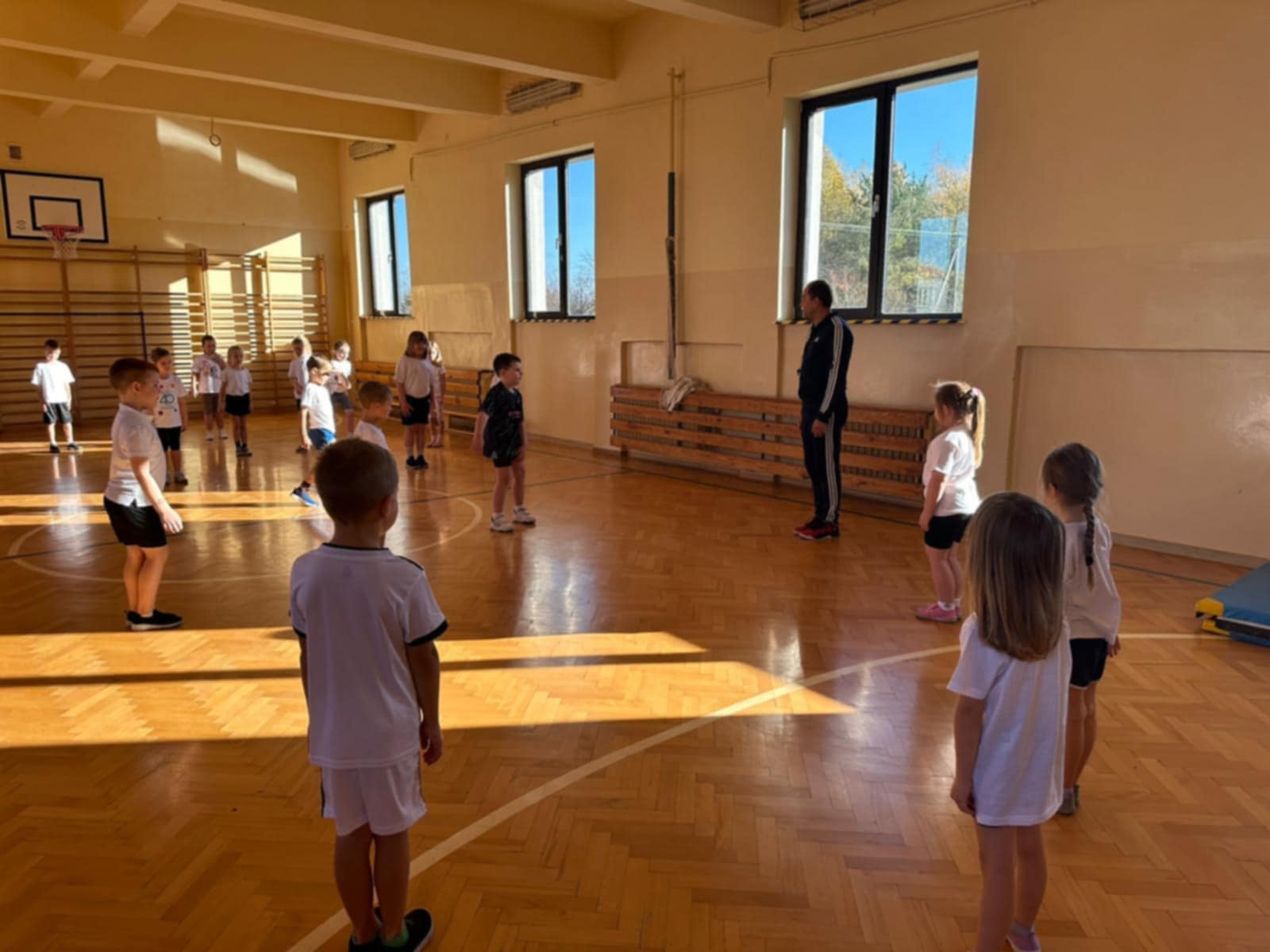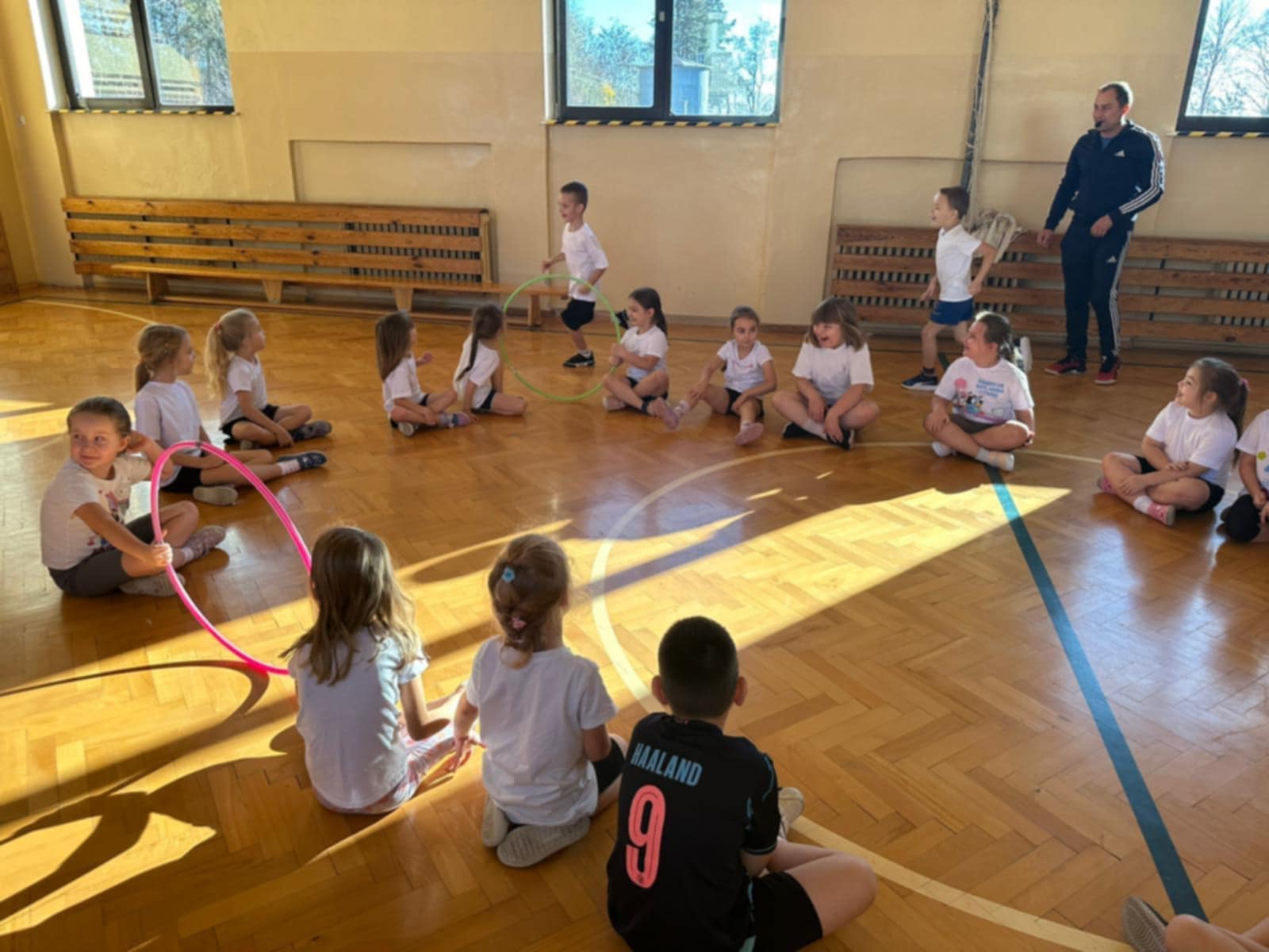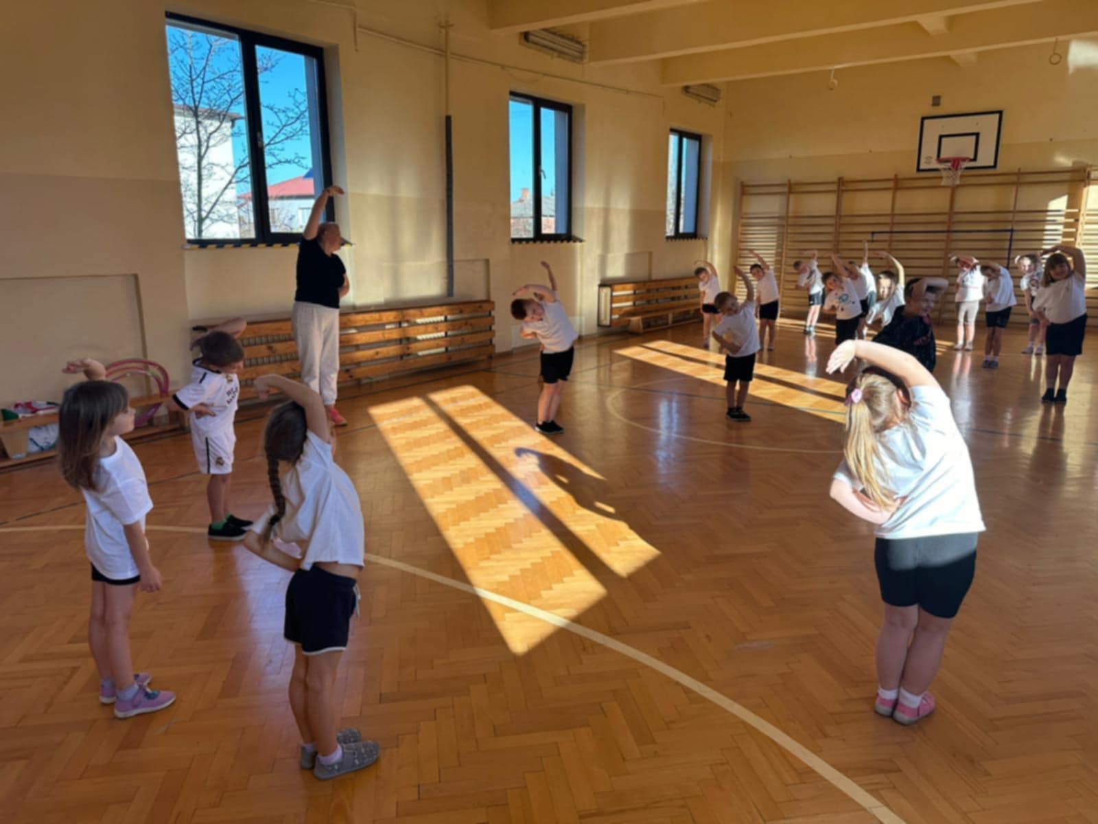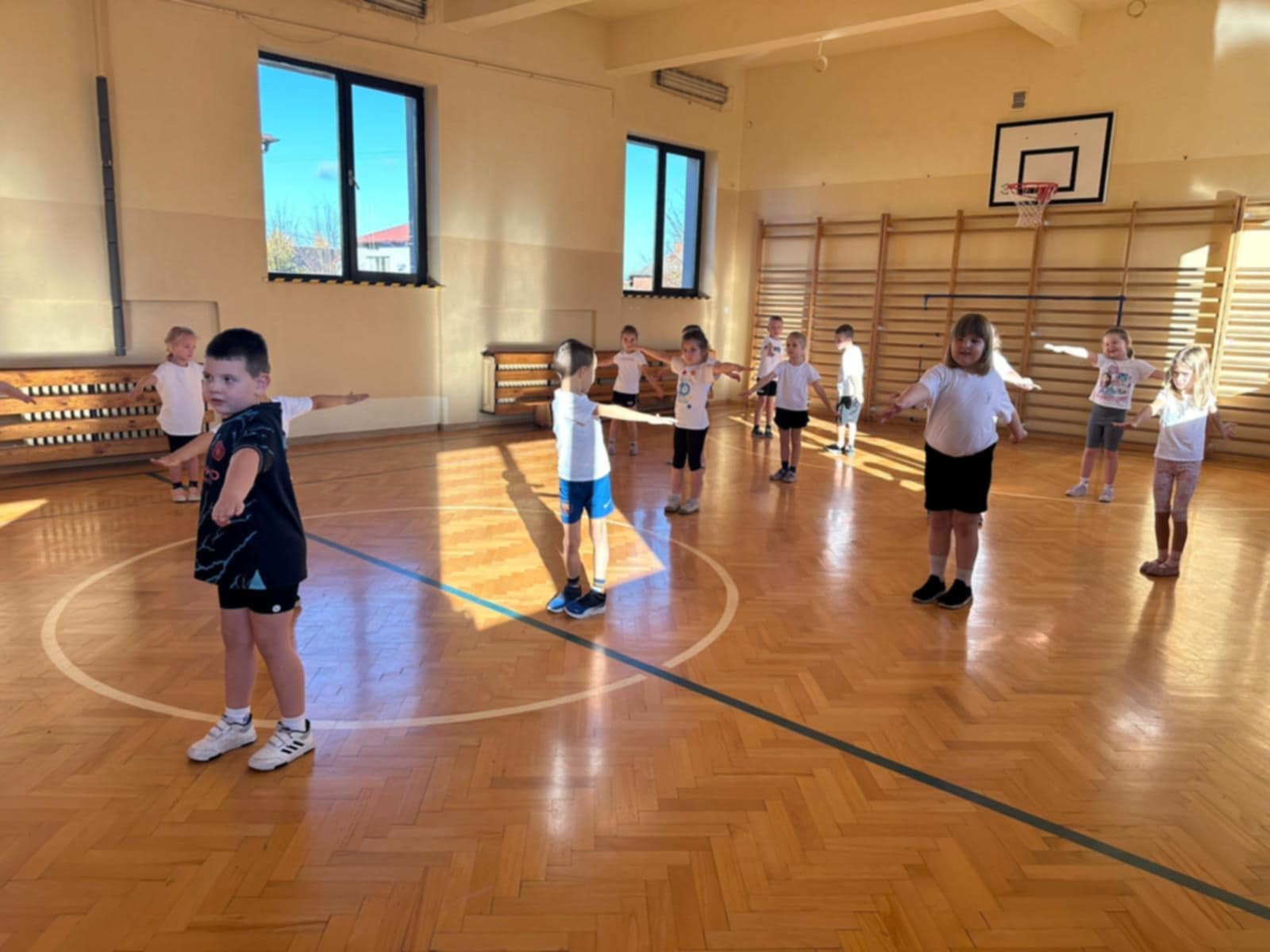 W ramach projektu „Zdrowe życie i pierwsza pomoc” dzieci z grupy przedszkolnej „Jeżyki’ brały udział w wyjątkowych zajęciach ruchowych pod hasłem „Rusz się!”, które poprowadził nauczyciel wychowania fizycznego pan Michał Wiśniewski. Celem zajęć było rozwijanie sprawności fizycznej, promowanie aktywności ruchowej oraz uświadamianie uczniom, jak ważny wpływ na zdrowie ma regularny ruch. Dzieci brały udział w różnorodnych grach i zabawach. Nie zabrakło również tańca i swobodnego ruchu przy muzyce. Podczas zajęć przyszli uczniowie współpracowali w grupach, doskonalili koordynację ruchową i uczyli się, że aktywność fizyczna może być świetną zabawą. Na zakończenie odbyła się krótka dyskusja i refleksja na temat roli ruchu w codziennym życiu. Zajęcia dostarczyły wszystkim uczestnikom mnóstwo radości, energii i motywacji do dalszej dbałości o zdrowy tryb życia.