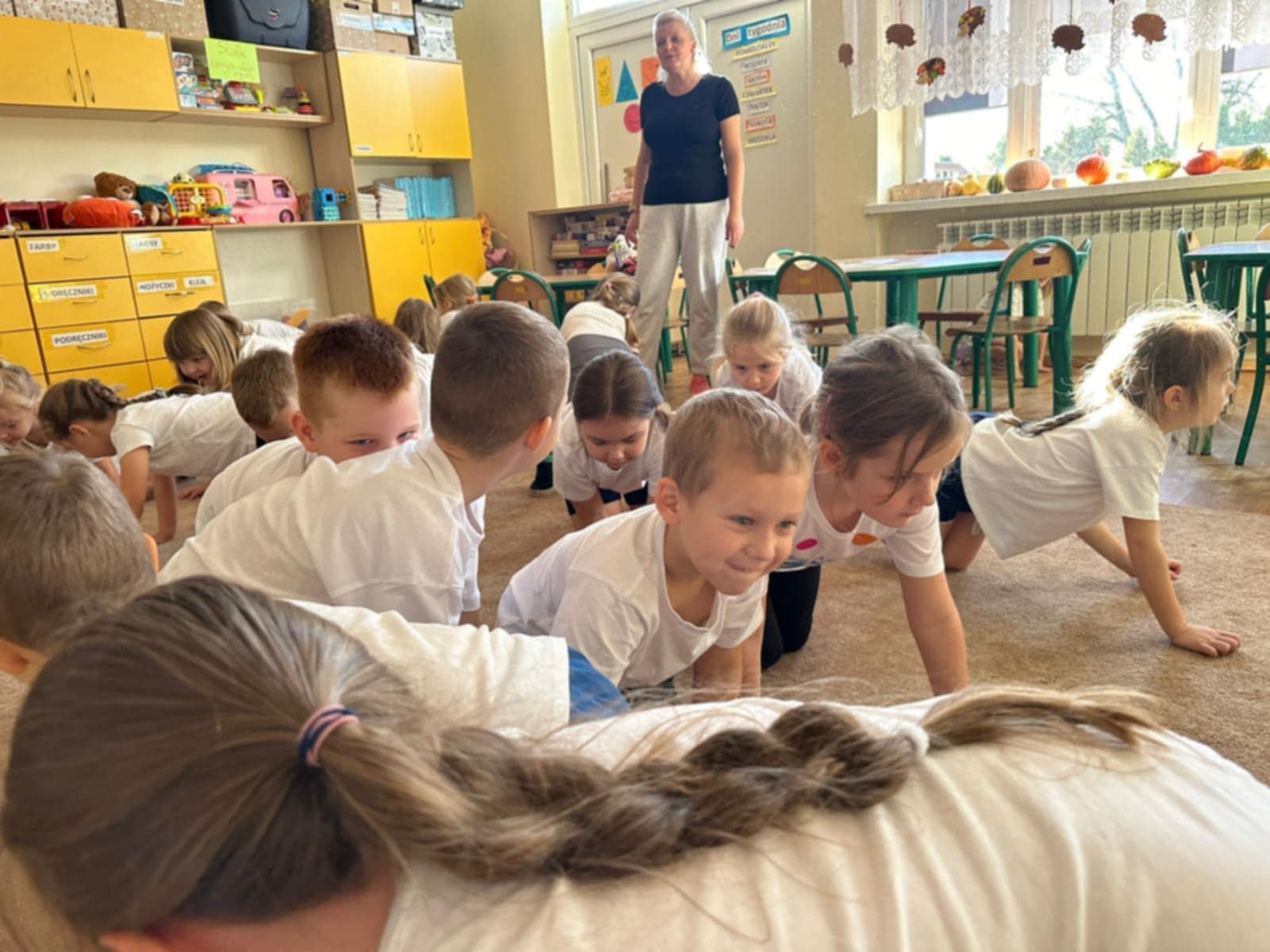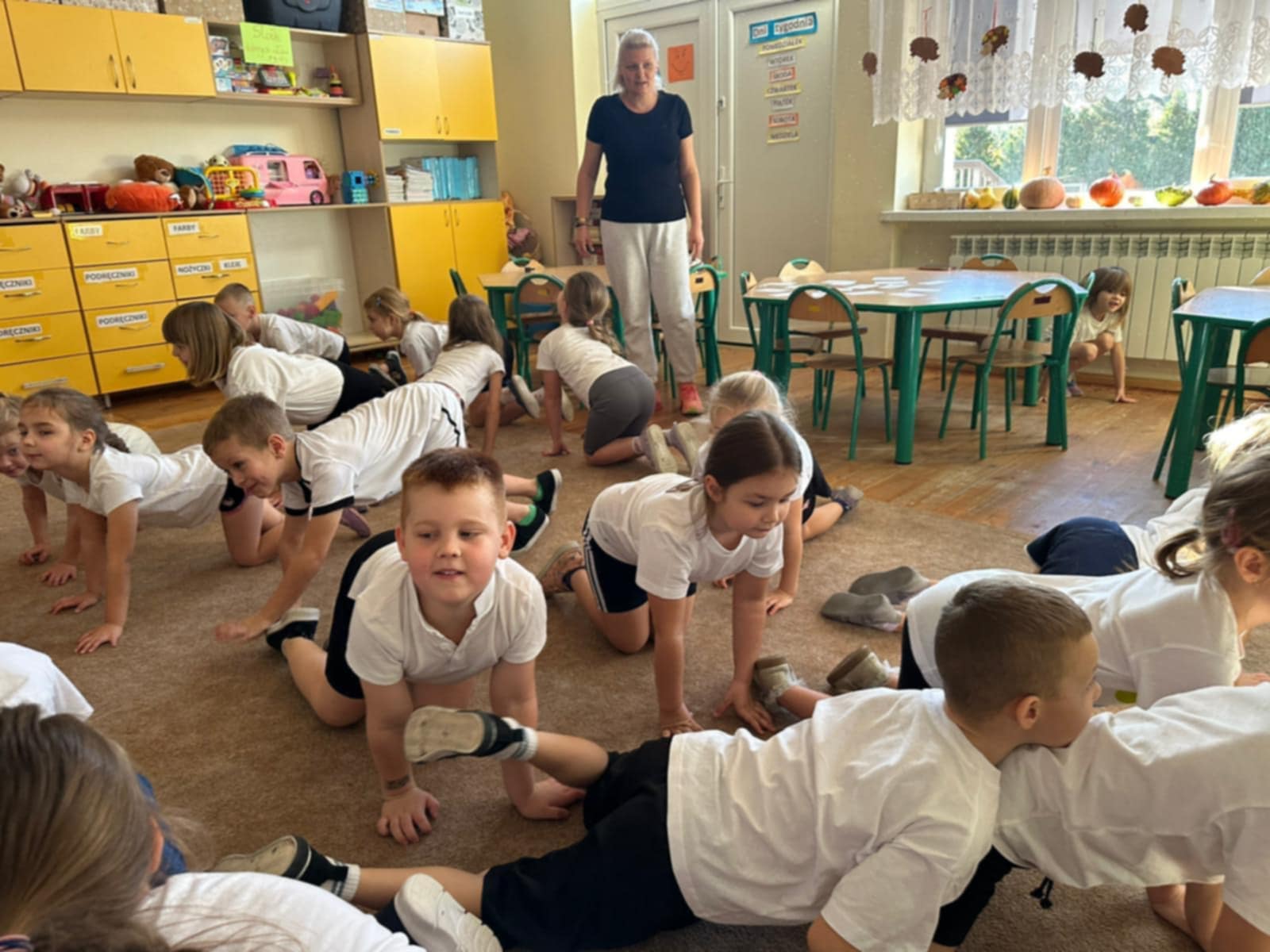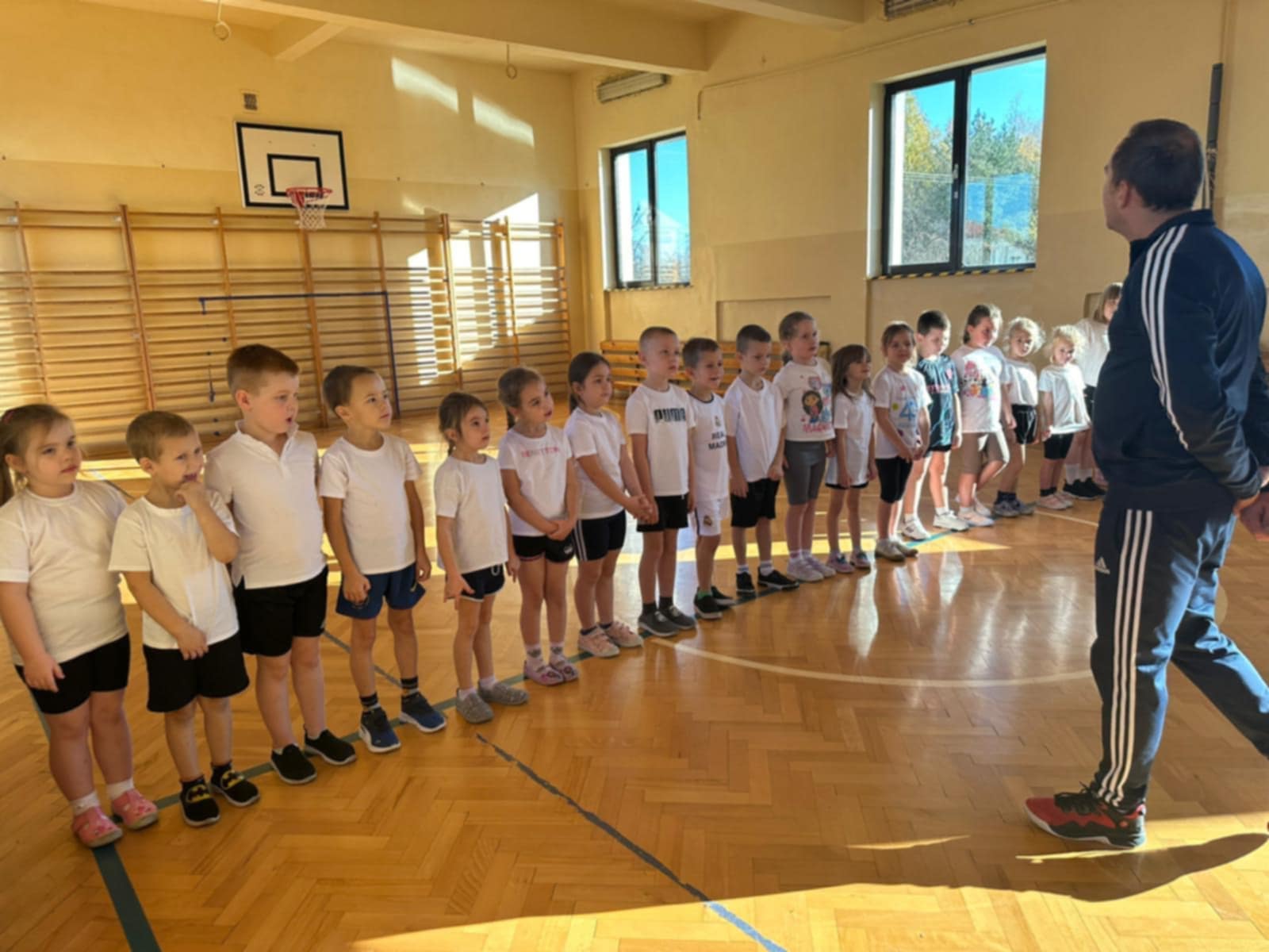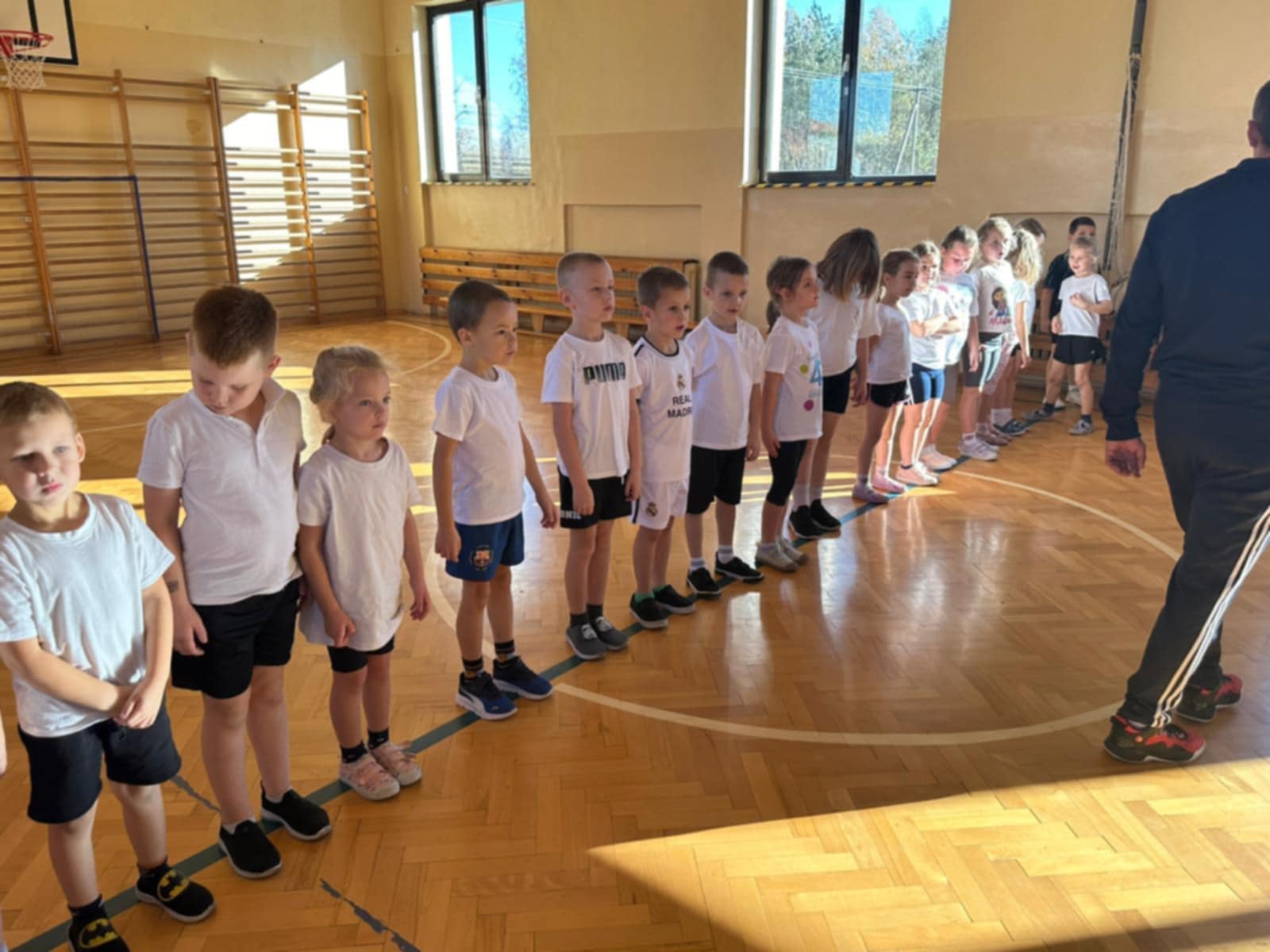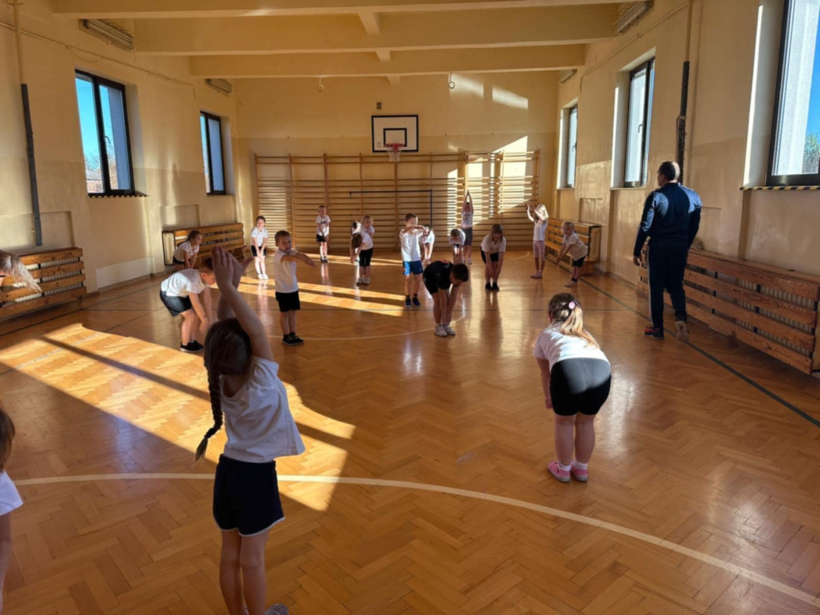 W ramach projektu „Zdrowe życie i pierwsza pomoc” dzieci z grupy przedszkolnej „Jeżyki’ brały udział w wyjątkowych zajęciach ruchowych pod hasłem „Rusz się!”, które poprowadził nauczyciel wychowania fizycznego pan Michał Wiśniewski. Celem zajęć było rozwijanie sprawności fizycznej, promowanie aktywności ruchowej oraz uświadamianie uczniom, jak ważny wpływ na zdrowie ma regularny ruch. Dzieci brały udział w różnorodnych grach i zabawach. Nie zabrakło również tańca i swobodnego ruchu przy muzyce. Podczas zajęć przyszli uczniowie współpracowali w grupach, doskonalili koordynację ruchową i uczyli się, że aktywność fizyczna może być świetną zabawą. Na zakończenie odbyła się krótka dyskusja i refleksja na temat roli ruchu w codziennym życiu. Zajęcia dostarczyły wszystkim uczestnikom mnóstwo radości, energii i motywacji do dalszej dbałości o zdrowy tryb życia.