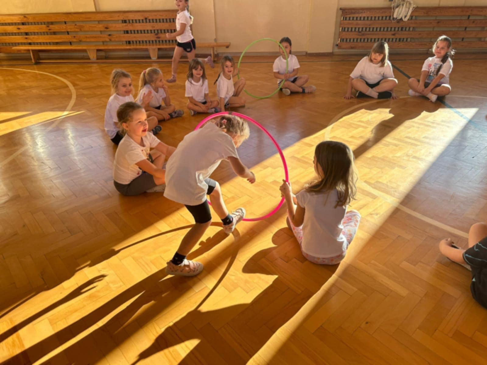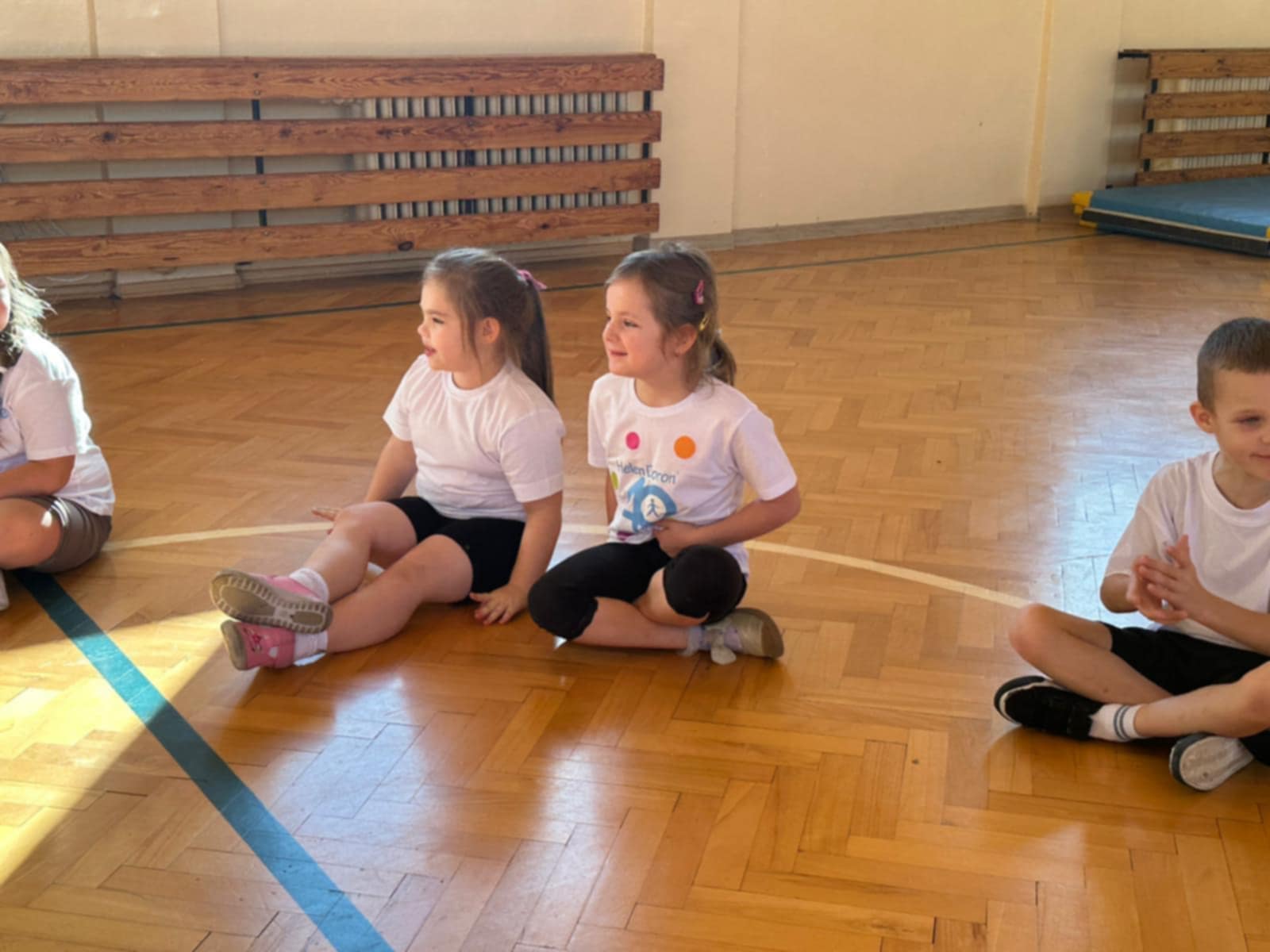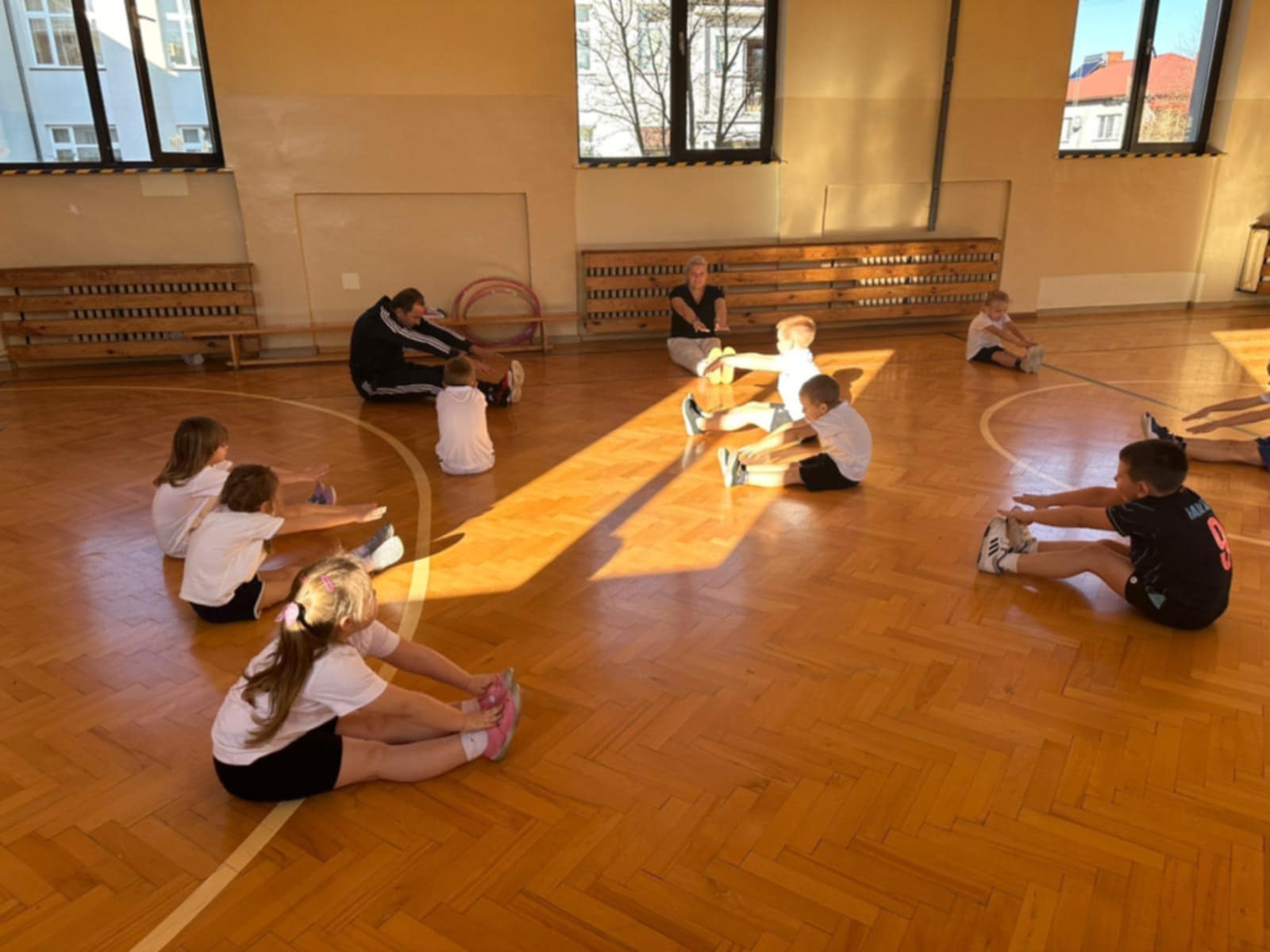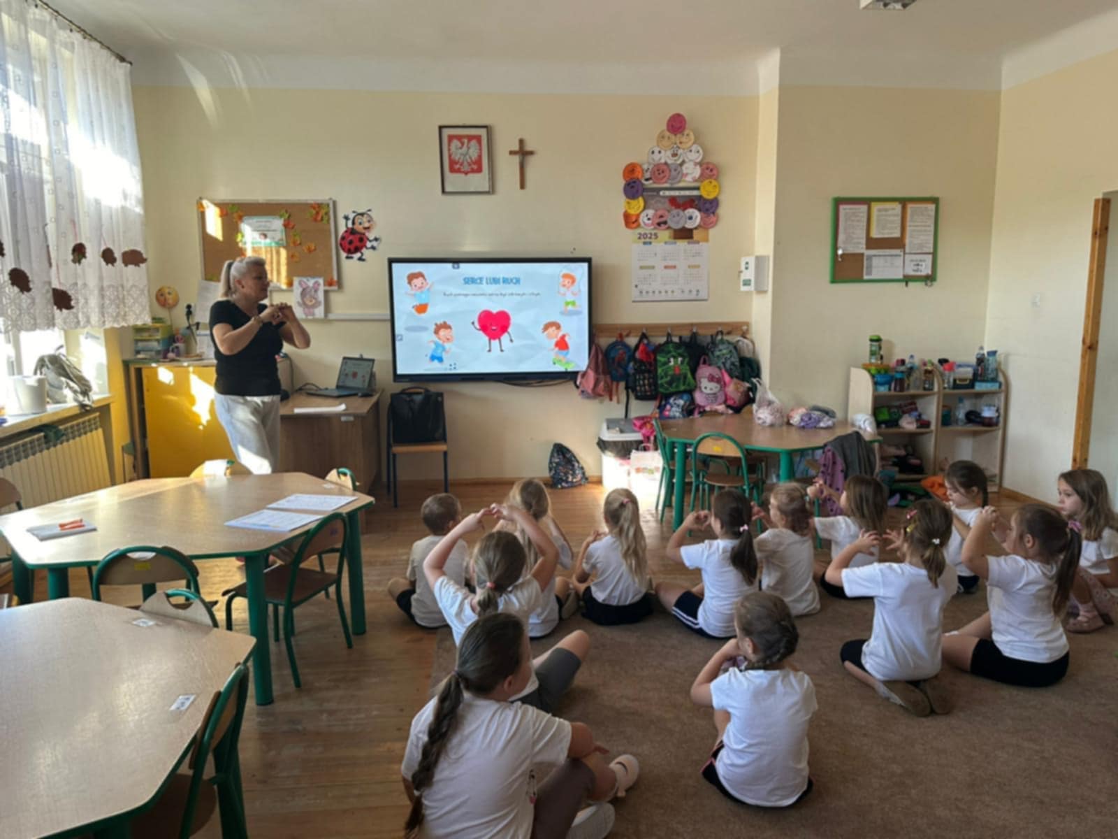 W ramach projektu „Zdrowe życie i pierwsza pomoc” dzieci z grupy przedszkolnej „Jeżyki’ brały udział w wyjątkowych zajęciach ruchowych pod hasłem „Rusz się!”, które poprowadził nauczyciel wychowania fizycznego pan Michał Wiśniewski. Celem zajęć było rozwijanie sprawności fizycznej, promowanie aktywności ruchowej oraz uświadamianie uczniom, jak ważny wpływ na zdrowie ma regularny ruch. Dzieci brały udział w różnorodnych grach i zabawach. Nie zabrakło również tańca i swobodnego ruchu przy muzyce. Podczas zajęć przyszli uczniowie współpracowali w grupach, doskonalili koordynację ruchową i uczyli się, że aktywność fizyczna może być świetną zabawą. Na zakończenie odbyła się krótka dyskusja i refleksja na temat roli ruchu w codziennym życiu. Zajęcia dostarczyły wszystkim uczestnikom mnóstwo radości, energii i motywacji do dalszej dbałości o zdrowy tryb życia.