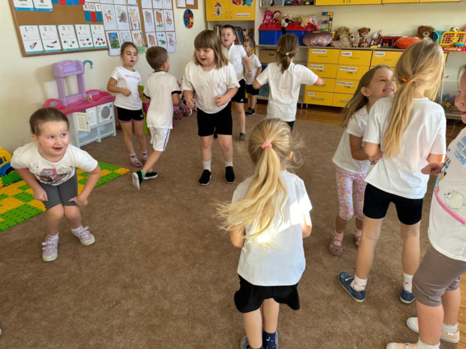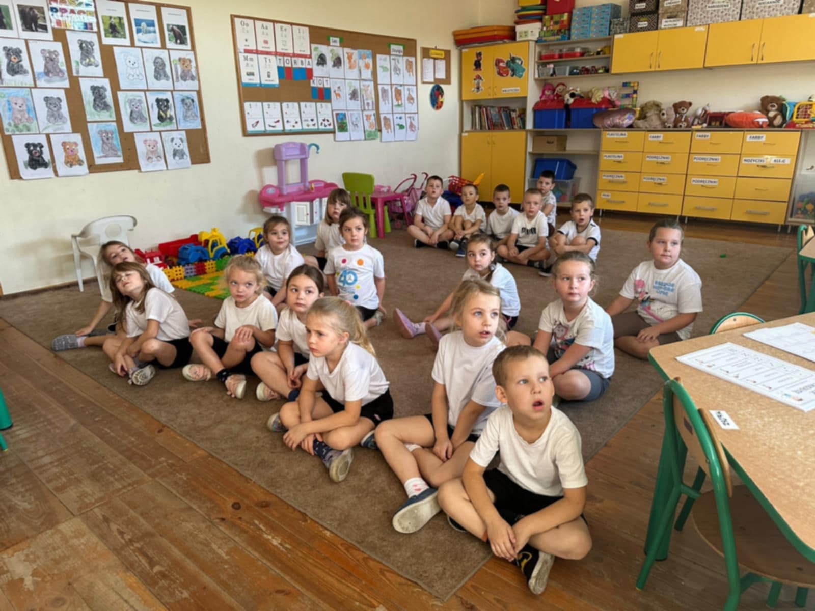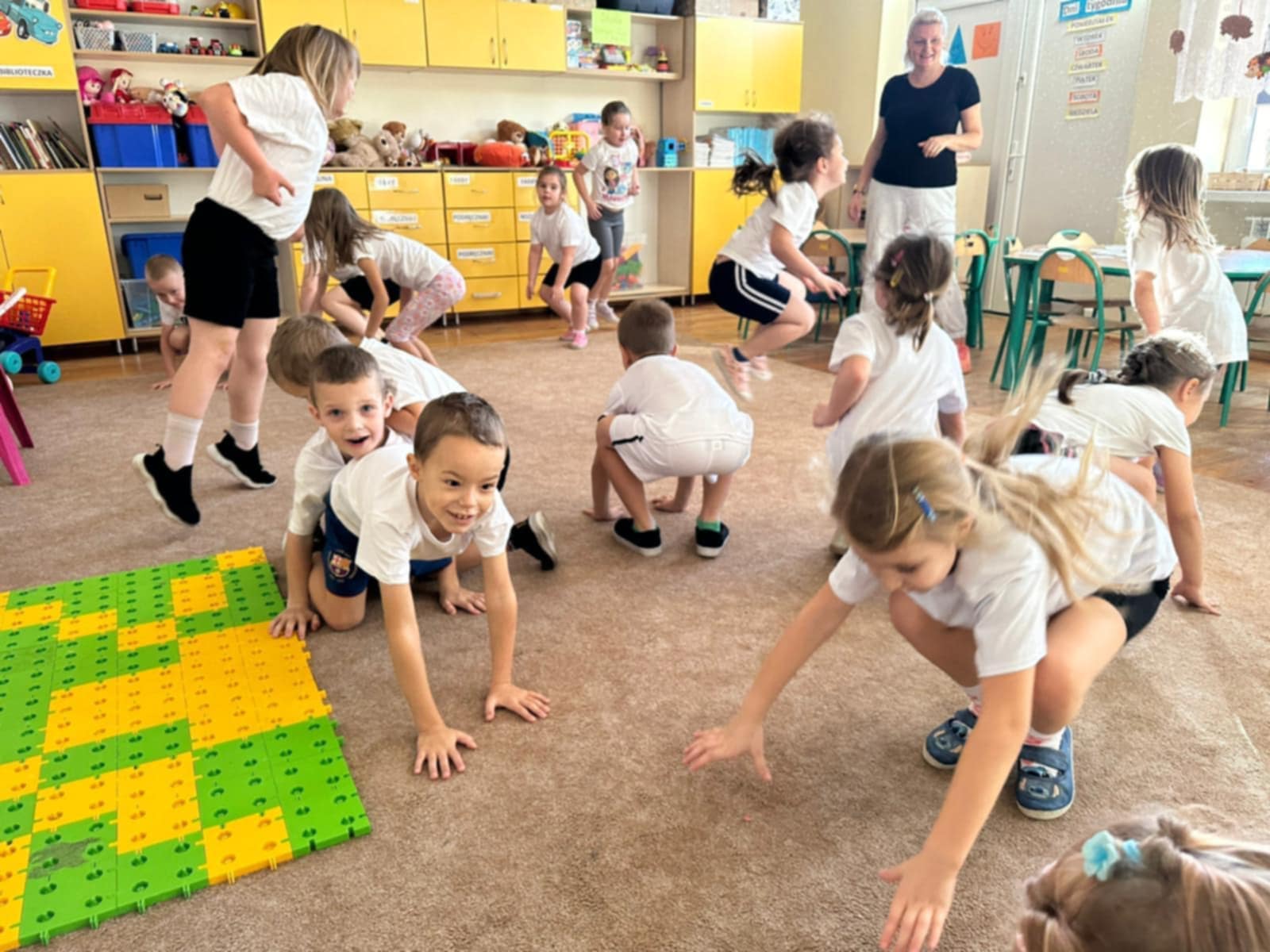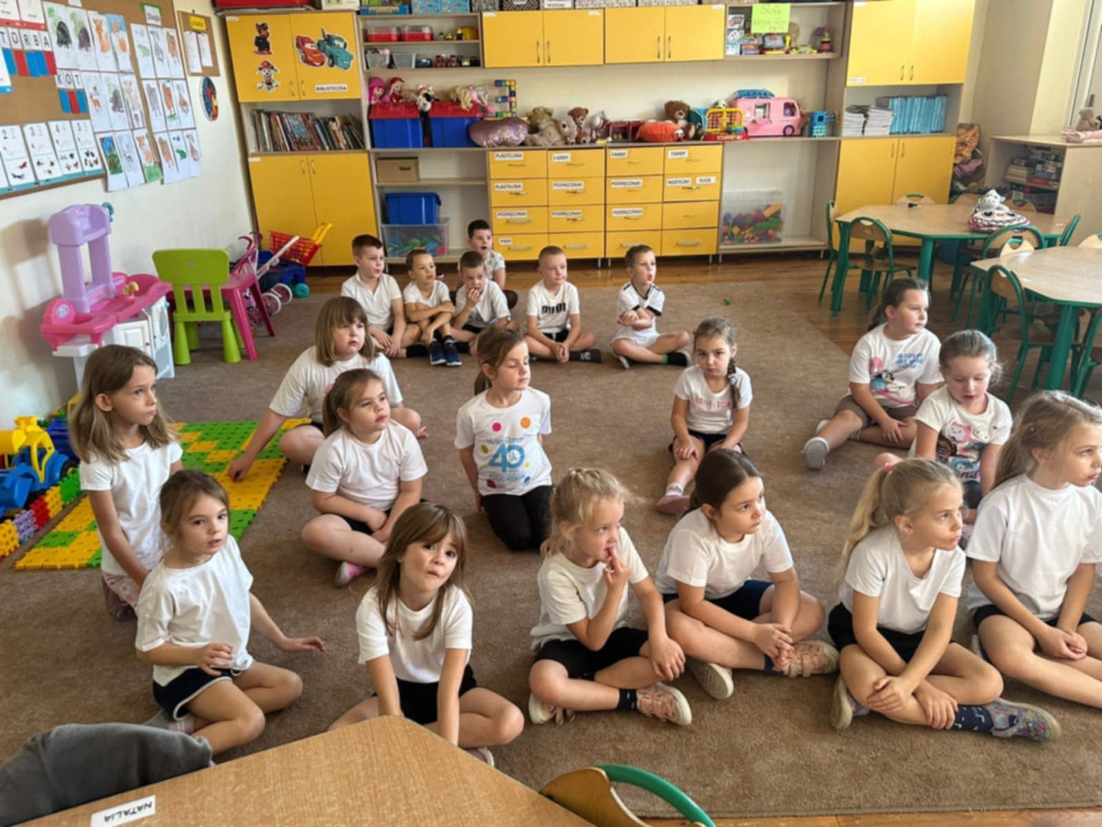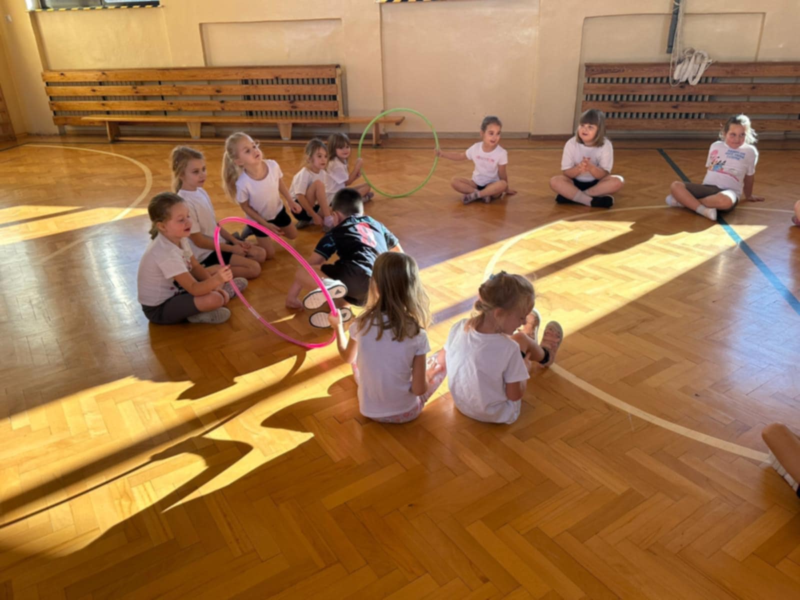 W ramach projektu „Zdrowe życie i pierwsza pomoc” dzieci z grupy przedszkolnej „Jeżyki’ brały udział w wyjątkowych zajęciach ruchowych pod hasłem „Rusz się!”, które poprowadził nauczyciel wychowania fizycznego pan Michał Wiśniewski. Celem zajęć było rozwijanie sprawności fizycznej, promowanie aktywności ruchowej oraz uświadamianie uczniom, jak ważny wpływ na zdrowie ma regularny ruch. Dzieci brały udział w różnorodnych grach i zabawach. Nie zabrakło również tańca i swobodnego ruchu przy muzyce. Podczas zajęć przyszli uczniowie współpracowali w grupach, doskonalili koordynację ruchową i uczyli się, że aktywność fizyczna może być świetną zabawą. Na zakończenie odbyła się krótka dyskusja i refleksja na temat roli ruchu w codziennym życiu. Zajęcia dostarczyły wszystkim uczestnikom mnóstwo radości, energii i motywacji do dalszej dbałości o zdrowy tryb życia.