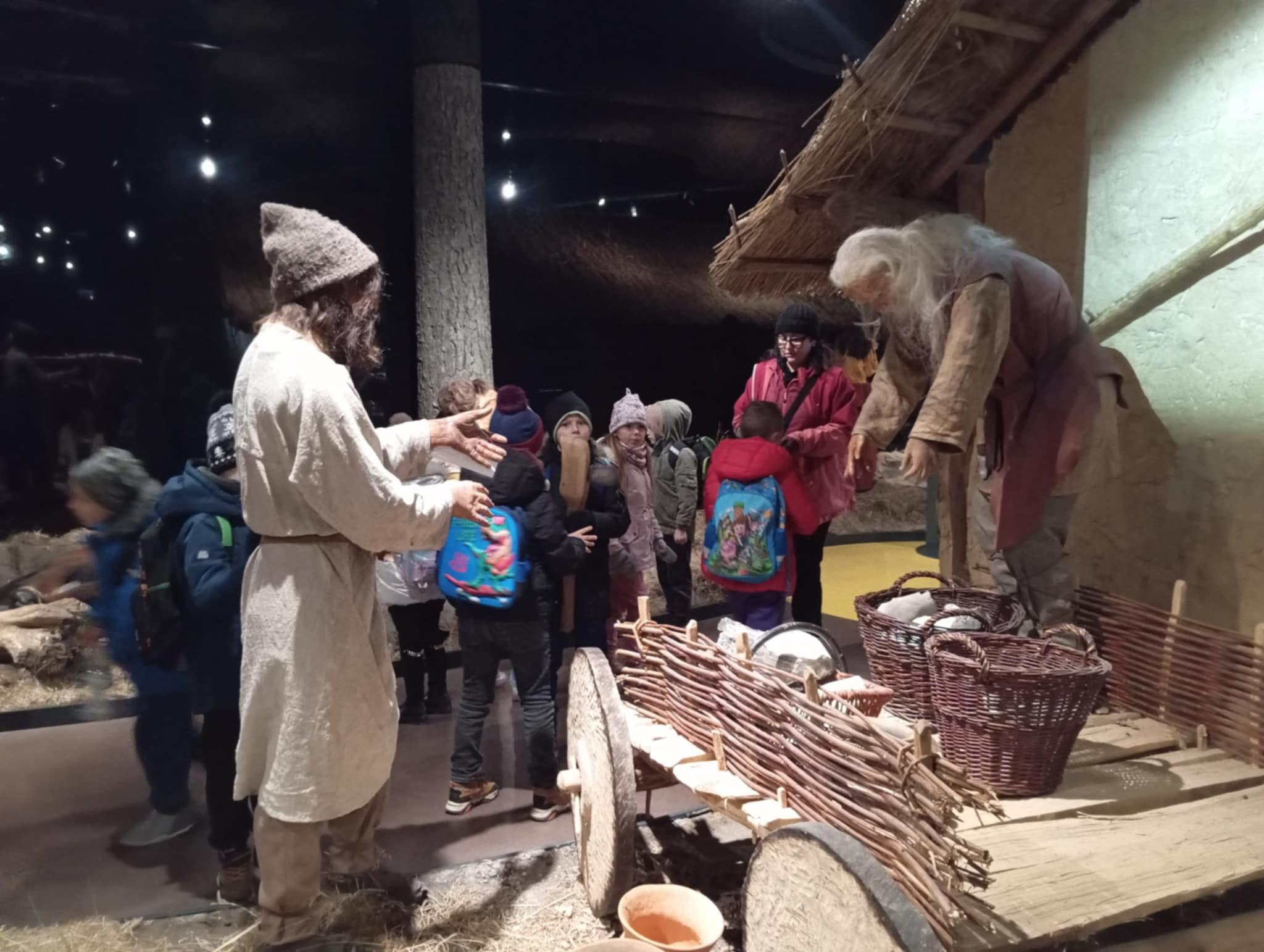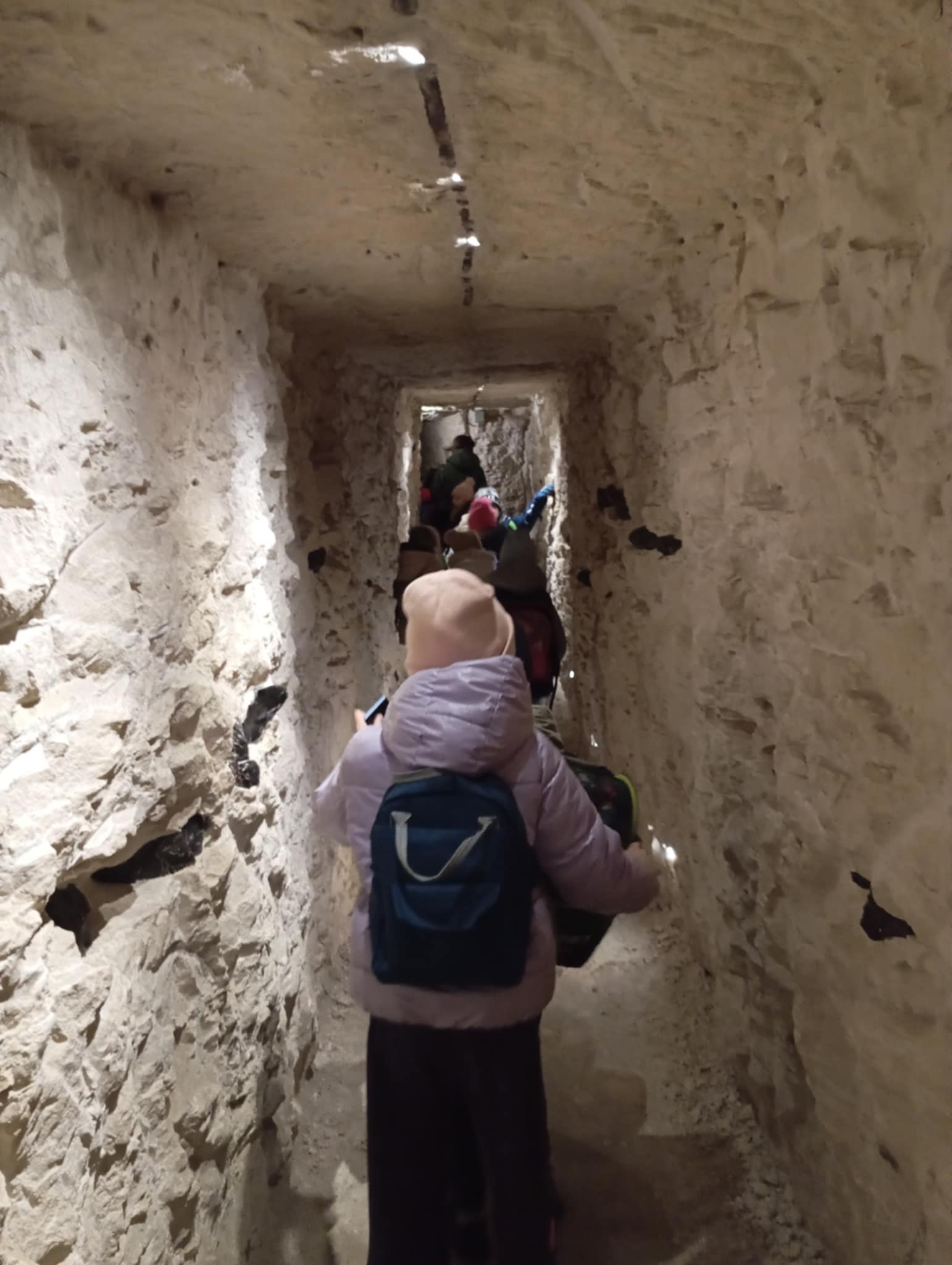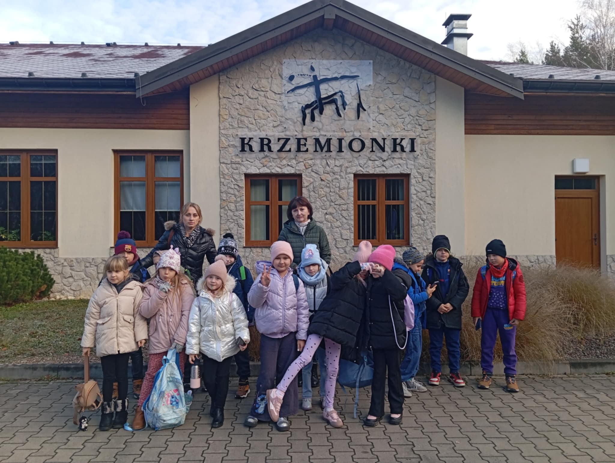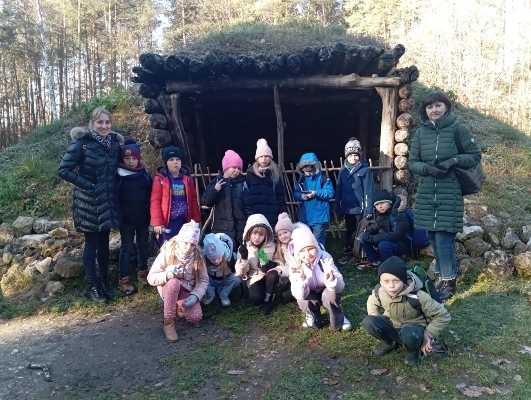 Dnia 19 listopada 2025 roku uczniowie klasy II udali się do Muzeum Archeologicznego w Krzemionkach Opatowskich. Zwiedzanie rozpoczęli od obejrzenia makiet ukazujących życie ludzi w młodszej epoce kamienia- neolicie. Obejrzeli też filmy przybliżające życie ludzi w tak odległych czasach. Pani przewodnik opowiedziała dzieciom o początkach zainteresowania terenem Krzemionek Opatowskich, które rozpoczął archeolog prof. Jan Samsonowicz w 1922 roku.