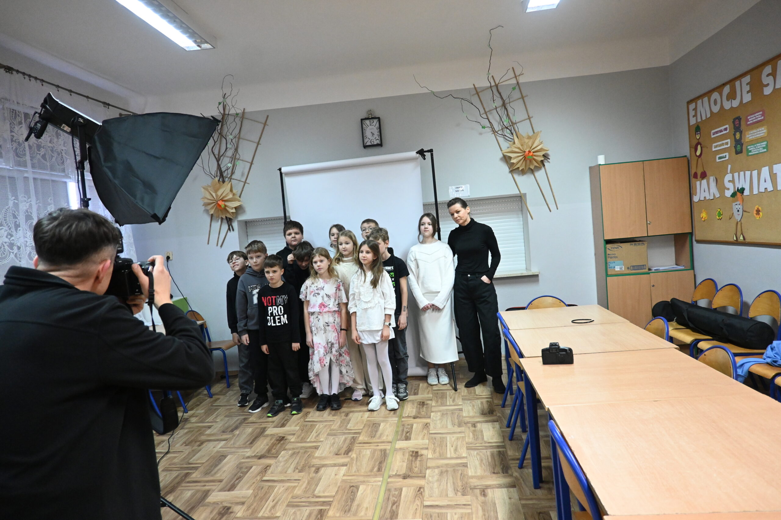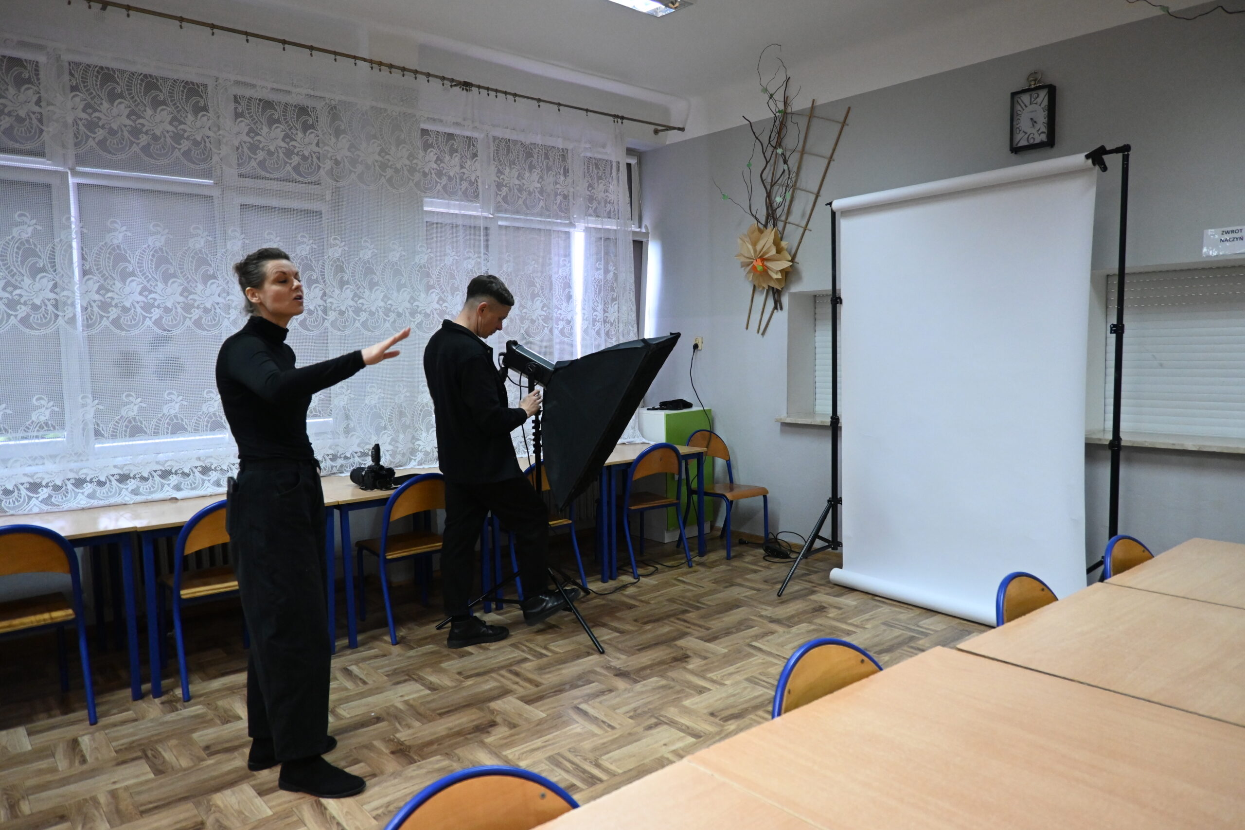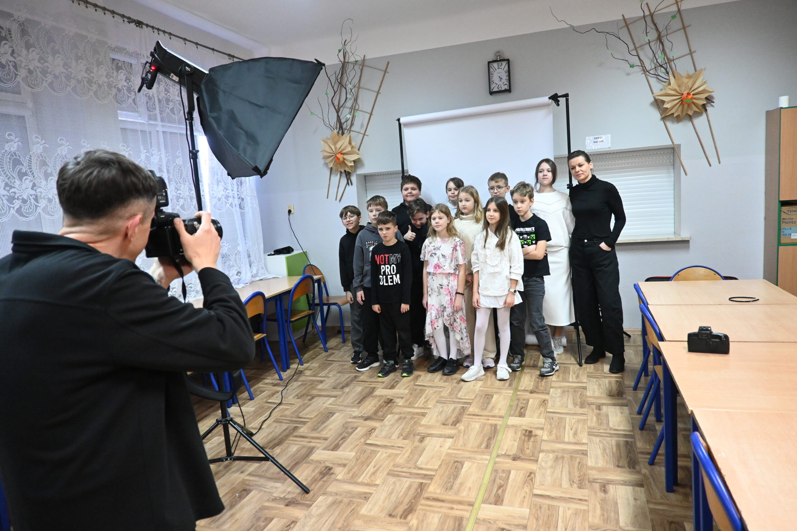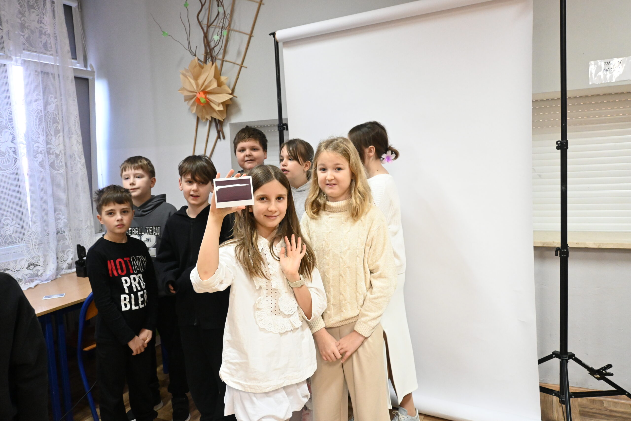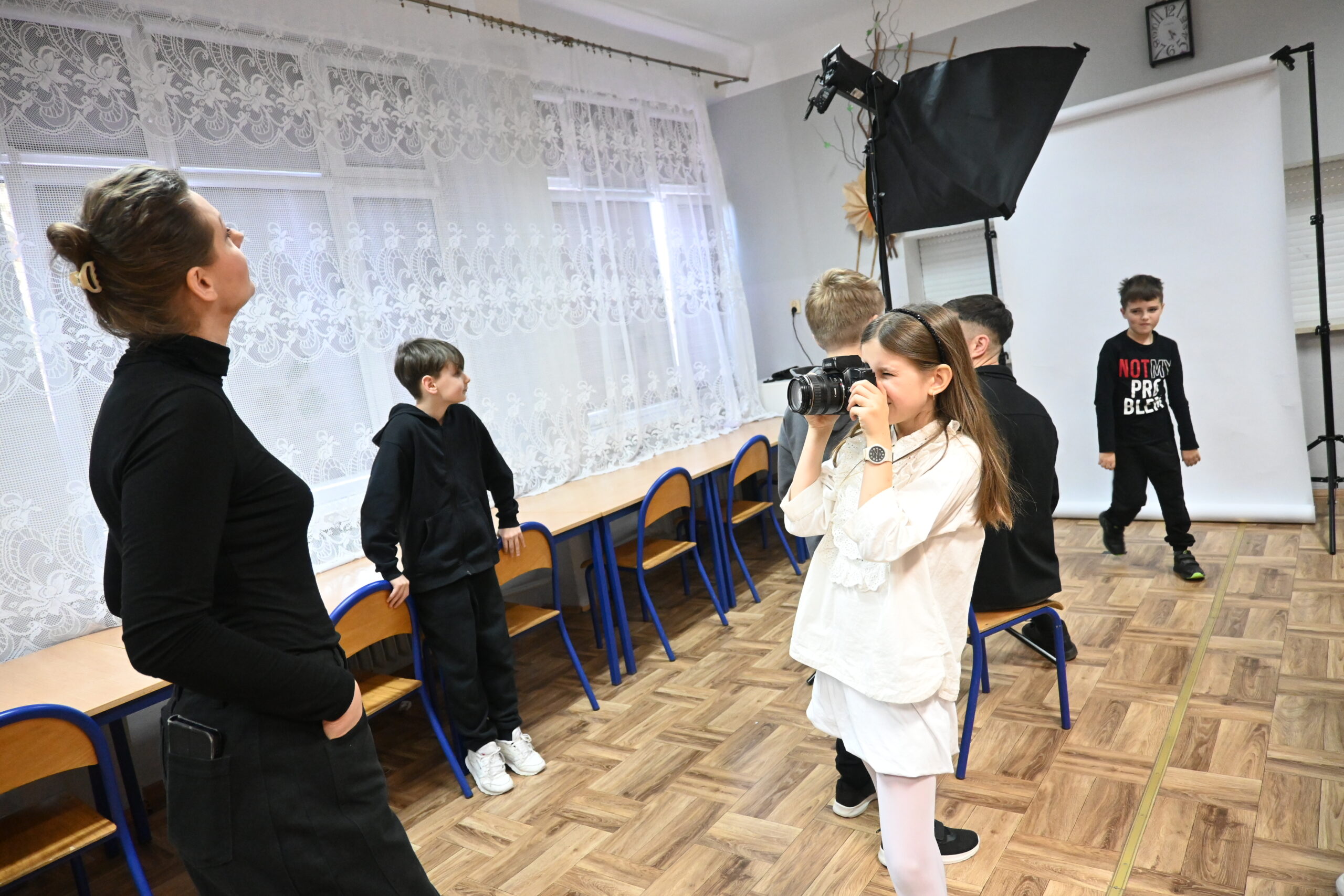 Pan Przemek nie tylko ciekawie opowiadał o swojej pracy i pasji, ale również przygotował indywidualną sesję fotograficzną dla każdego ucznia. Dzieci mogły poczuć się jak w profesjonalnym studio. Serdecznie dziękujemy Panu Przemysławowi za poprowadzenie inspirujących warsztatów.