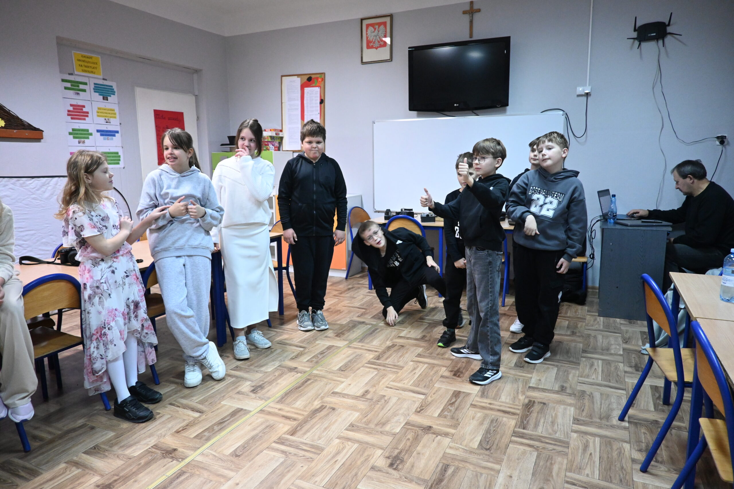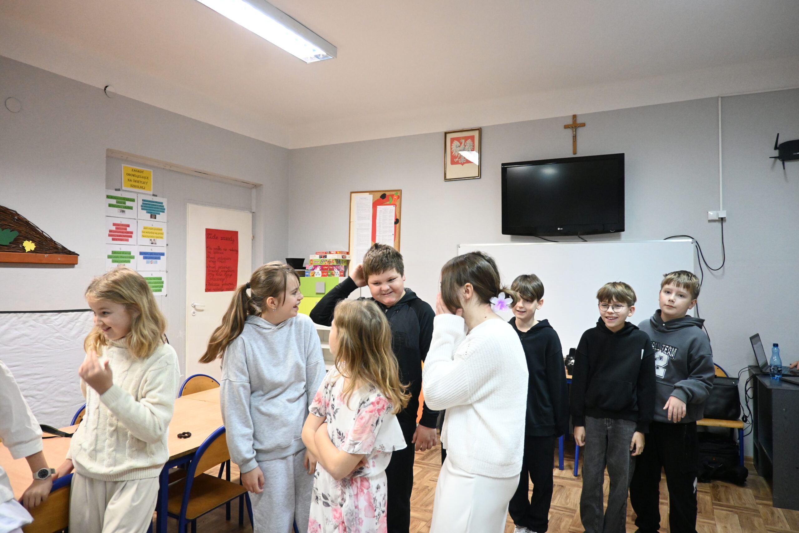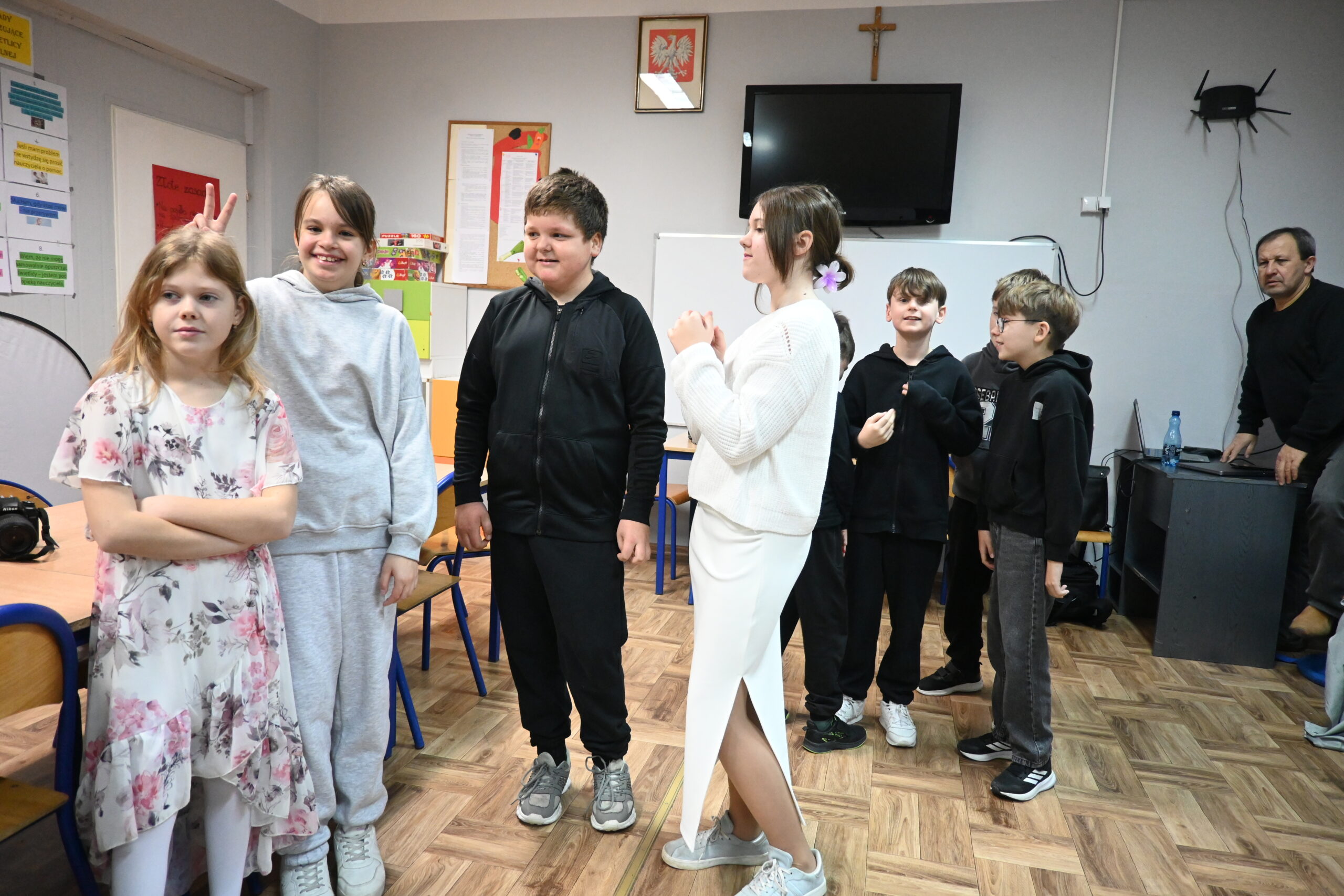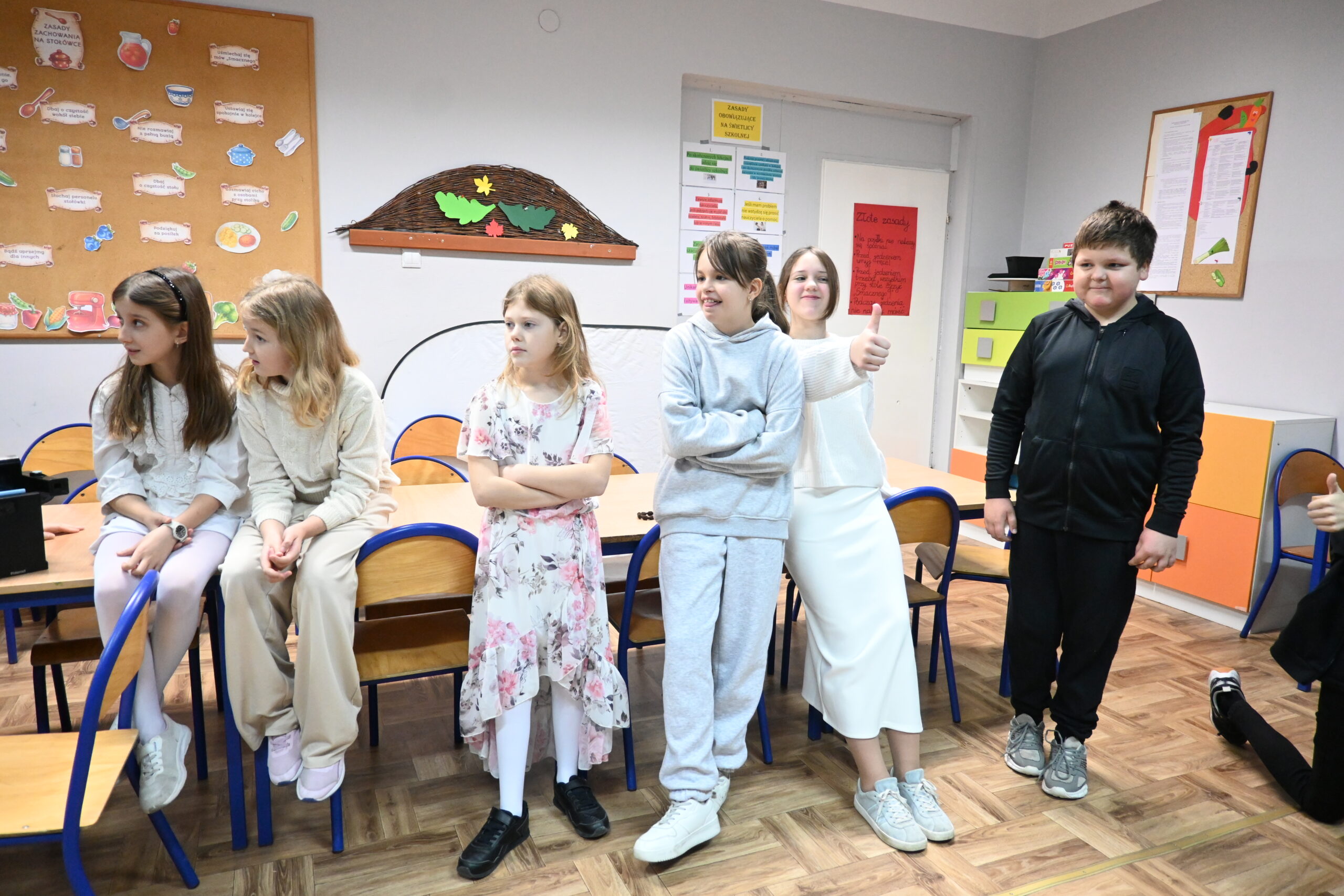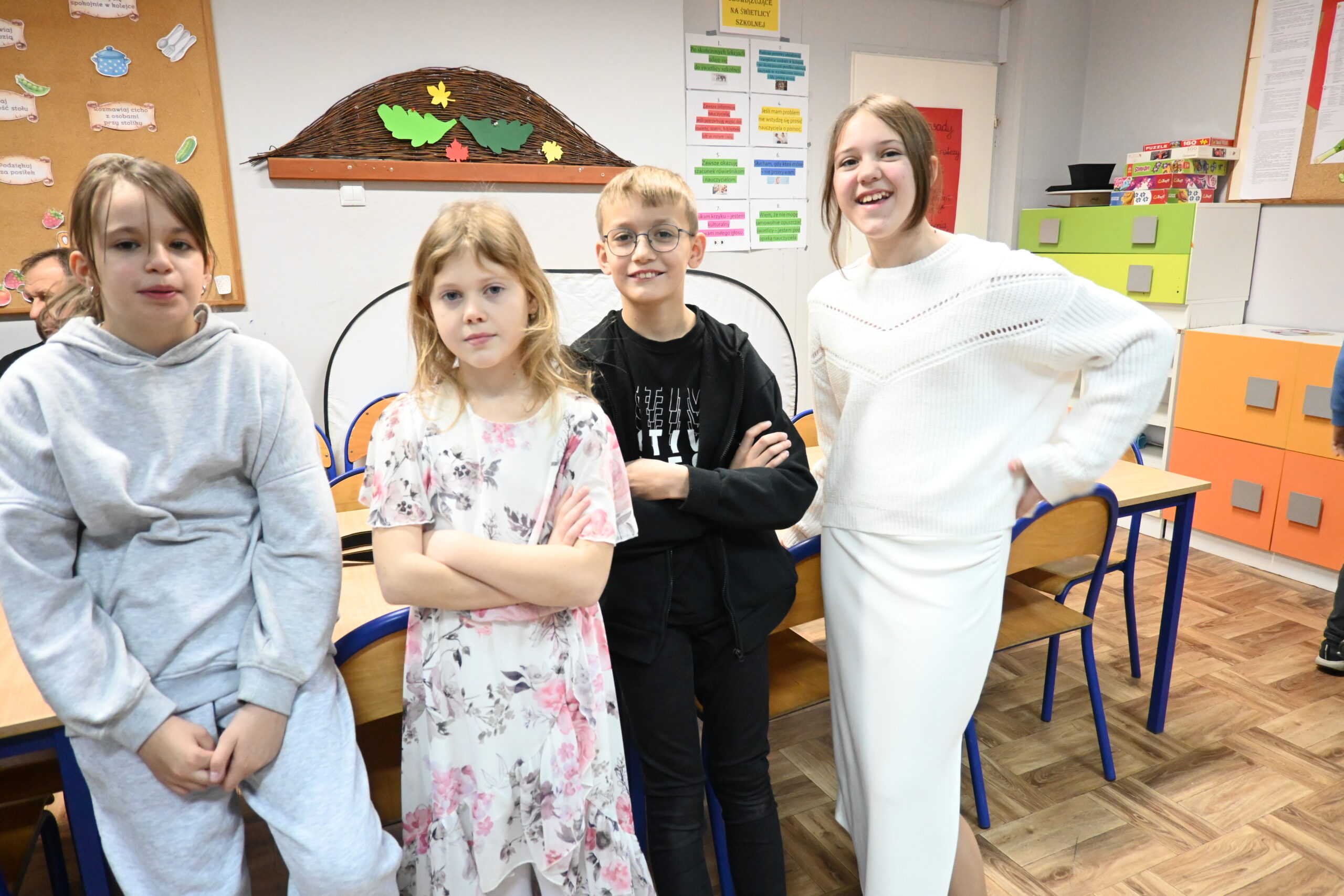 Pan Przemek nie tylko ciekawie opowiadał o swojej pracy i pasji, ale również przygotował indywidualną sesję fotograficzną dla każdego ucznia. Dzieci mogły poczuć się jak w profesjonalnym studio. Serdecznie dziękujemy Panu Przemysławowi za poprowadzenie inspirujących warsztatów.