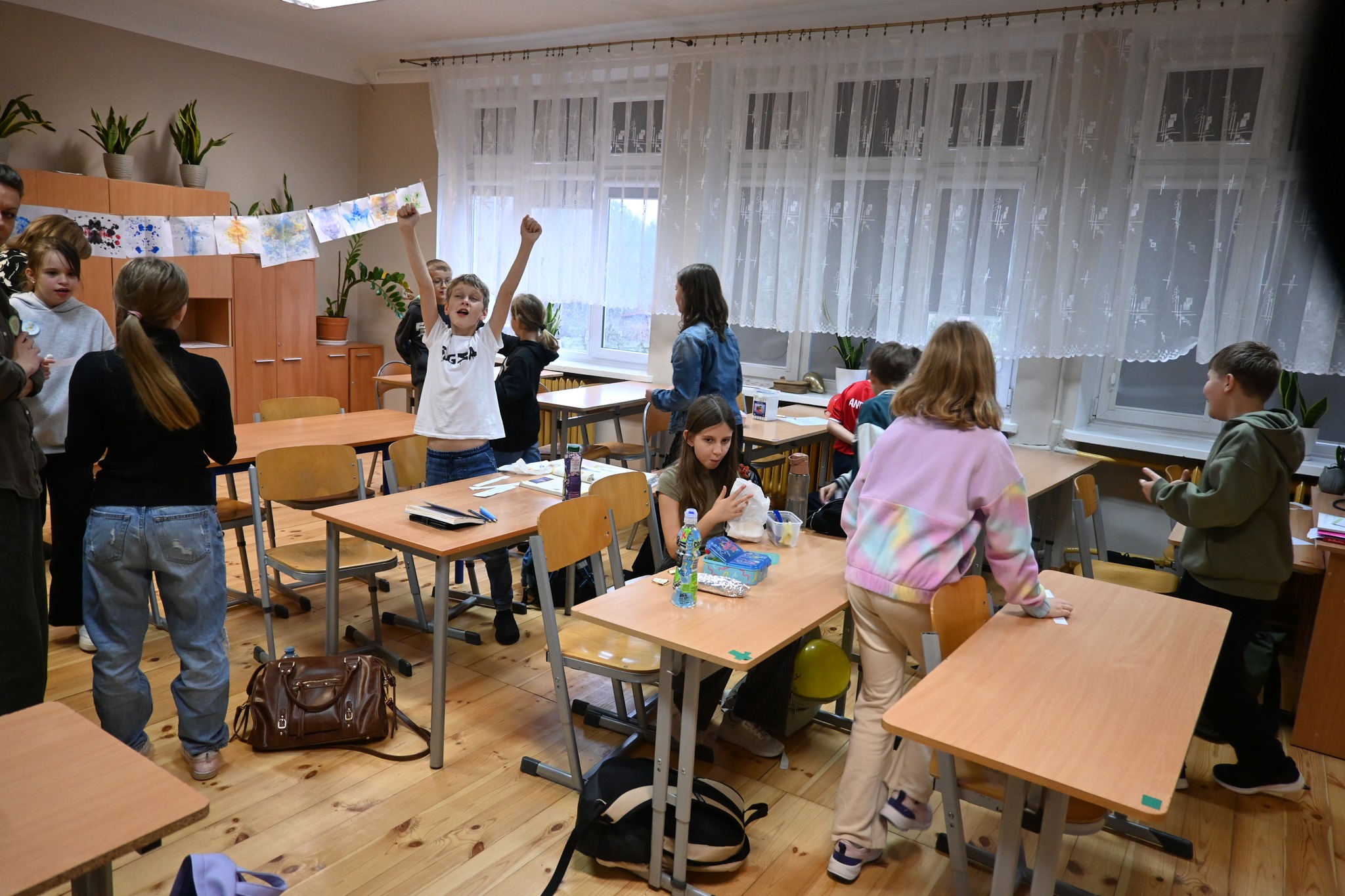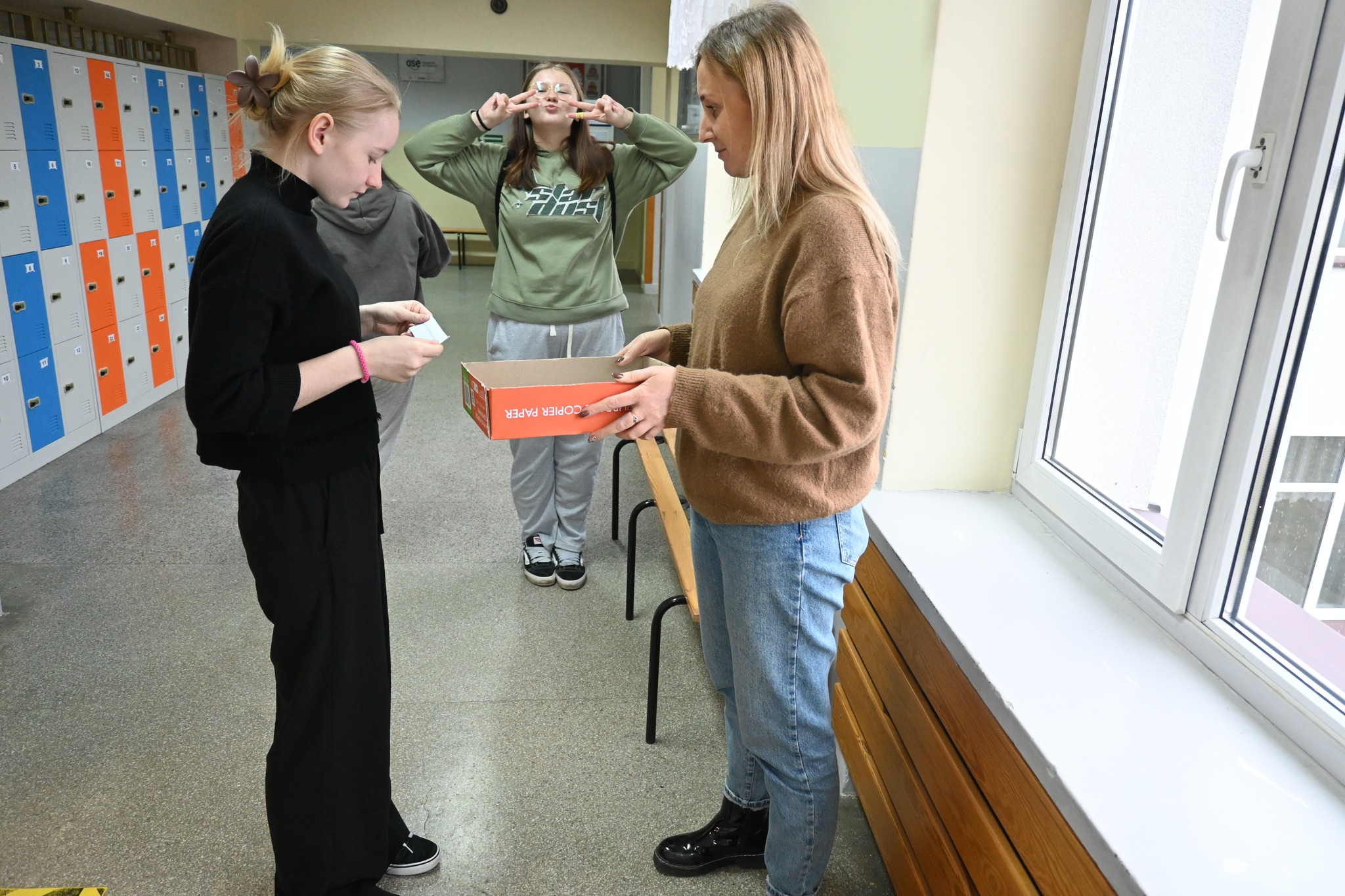 Nie zabrakło też twórczej pracy – uczniowie wykonywali kolorowe piórka, na których zapisywali miłe słowa i pozytywne przesłania dla kolegów i koleżanek.