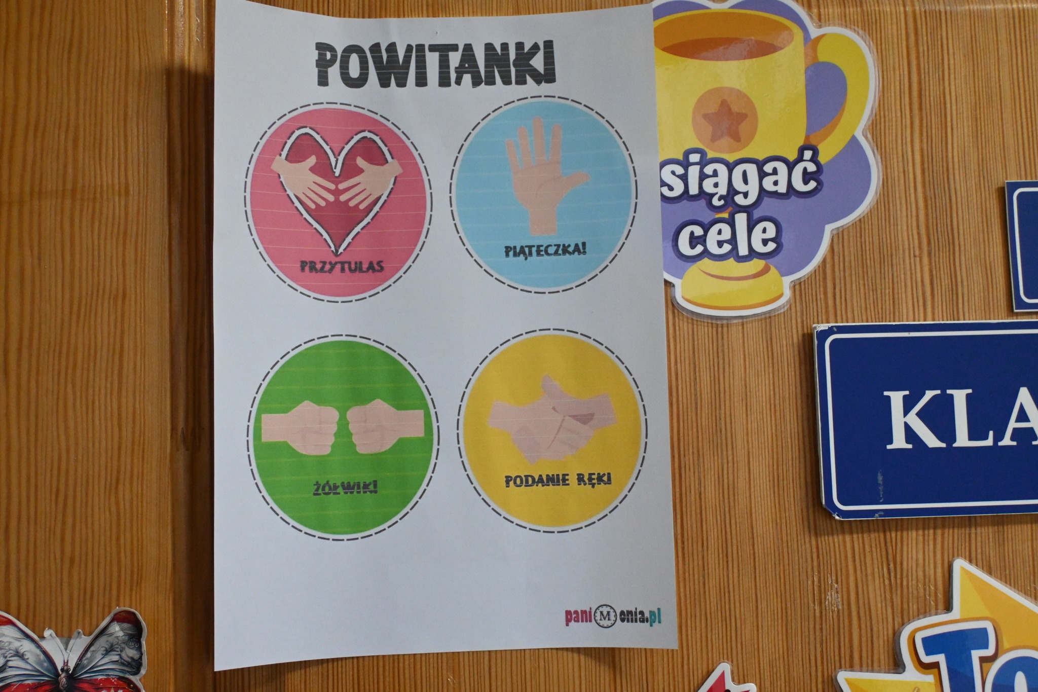 Przedszkolaczki oraz uczniowie klas 1–3 wspólnie z wychowawcami wybierali wesołe powitanki, które umilały im początek dnia. W oddziałach przedszkolnych czytano również opowiadania o życzliwych zwierzątkach, ucząc najmłodszych empatii i troski o innych.