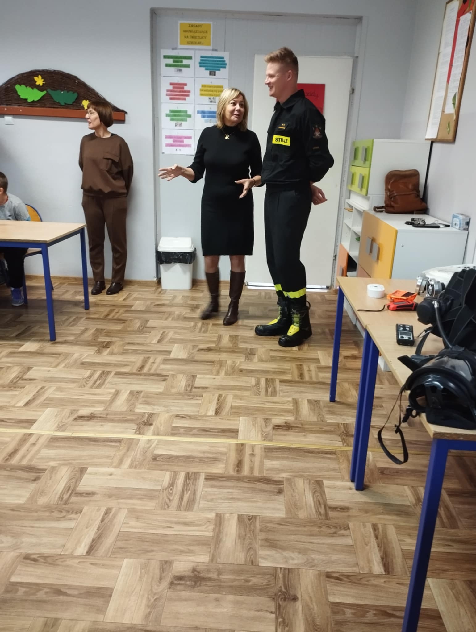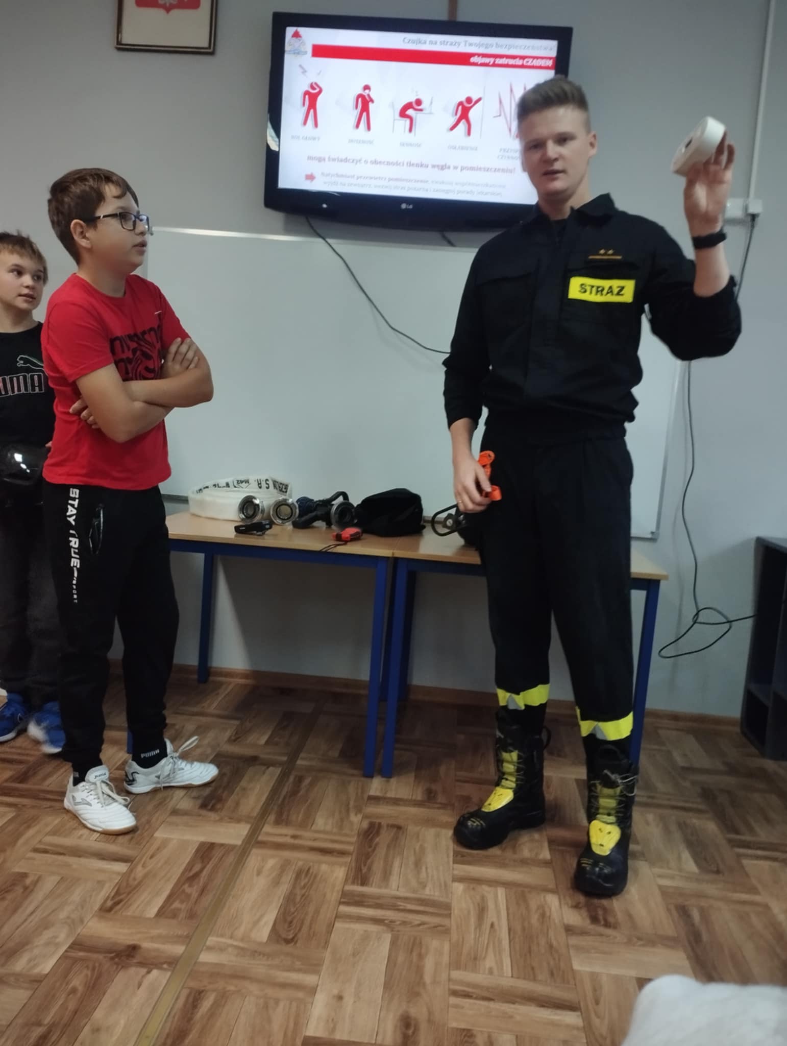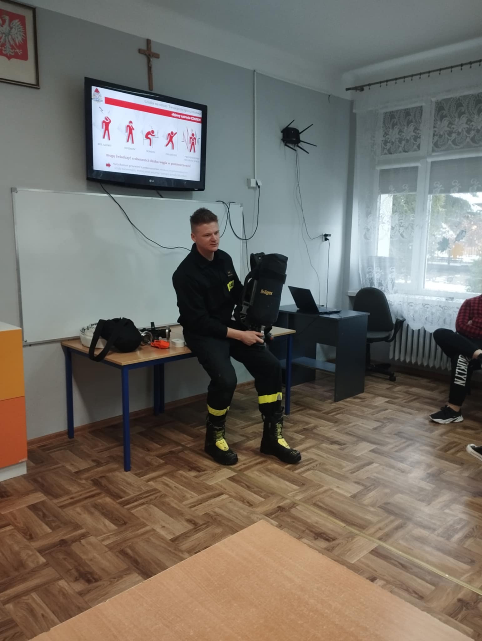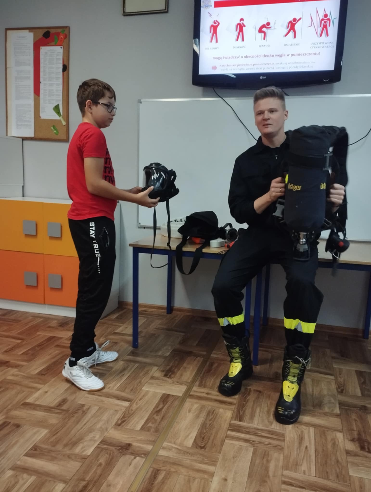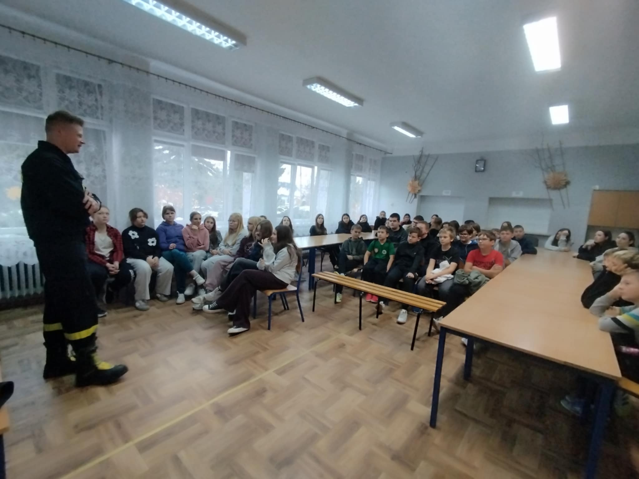 Dziś w naszej szkole odbyły się wyjątkowe zajęcia edukacyjne przeprowadzone przez funkcjonariusza Państwowej Straży Pożarnej w Lipsku mł. kpt. Pana Dominika Kominka. Była to niezwykle cenna lekcja bezpieczeństwa, która pokazała uczniom, jak ważna jest wiedza i odpowiednie reakcje w sytuacjach zagrożenia. Podczas prelekcji Pan strażak opowiedział o swojej codziennej pracy, sprzęcie oraz najczęstszych przyczynach pożarów. Szczególnie dużo uwagi poświecił czujkom dymu – urządzeniom, które mogą uratować życie. Uczniowie dowiedzieli się: jak działa czujka dymu, gdzie powinna być zamontowana, jak często należy sprawdzać jej działanie, dlaczego jest ważnym elementem bezpieczeństwa domowego. Uczniowie przypomnieli sobie również podstawowe zasady postępowania w przypadku pożaru, sposoby wzywania pomocy oraz konieczności zachowania spokoju w sytuacjach kryzysowych. Zajęcia były urozmaicone pokazem sprzętu oraz praktycznymi wskazówkami które na długo zapadną naszym uczniom w pamięci. Serdecznie dziękujemy, Panu Dominikowi za poświęcony czas, profesjonalizm i zaangażowanie w edukację naszych uczniów.