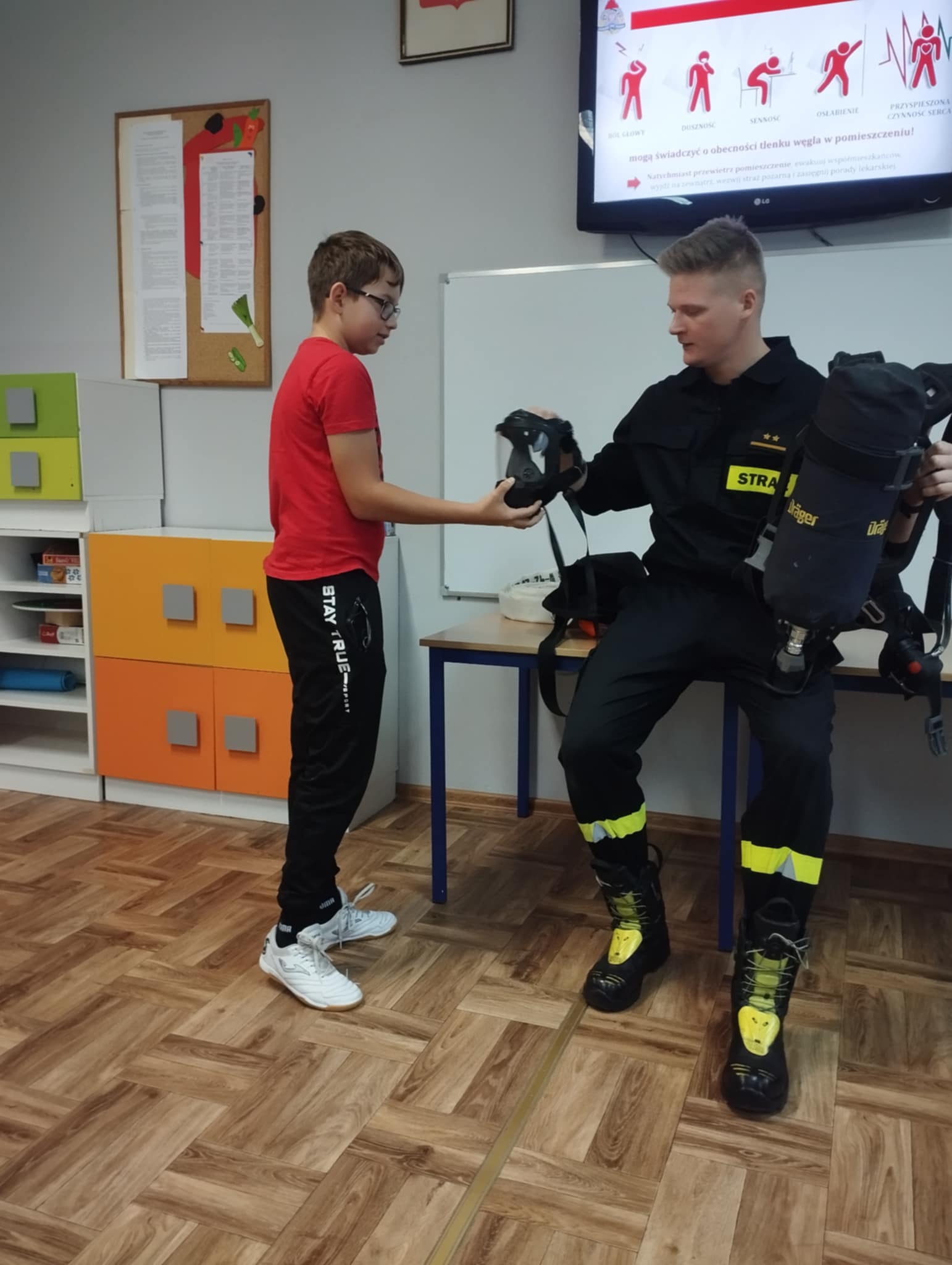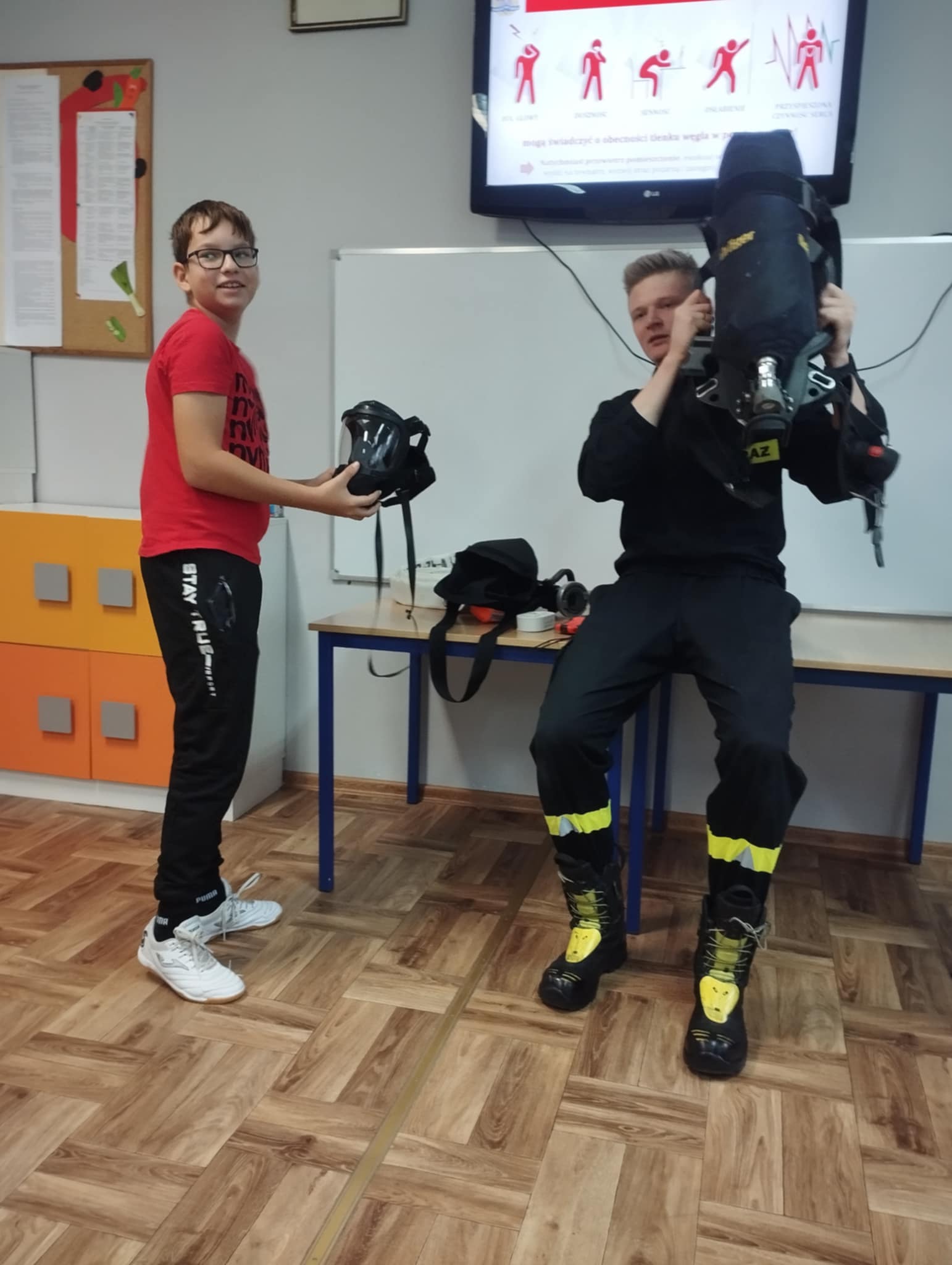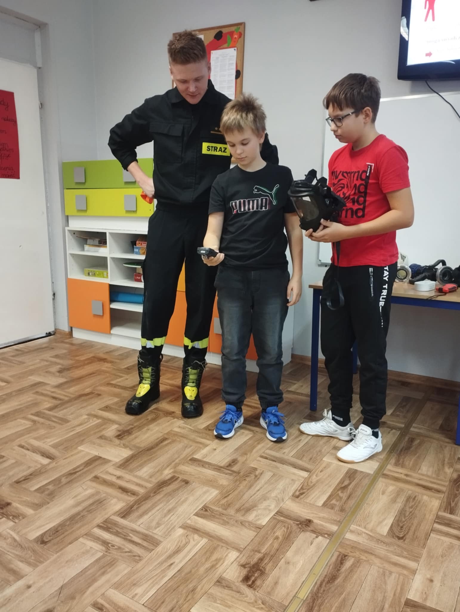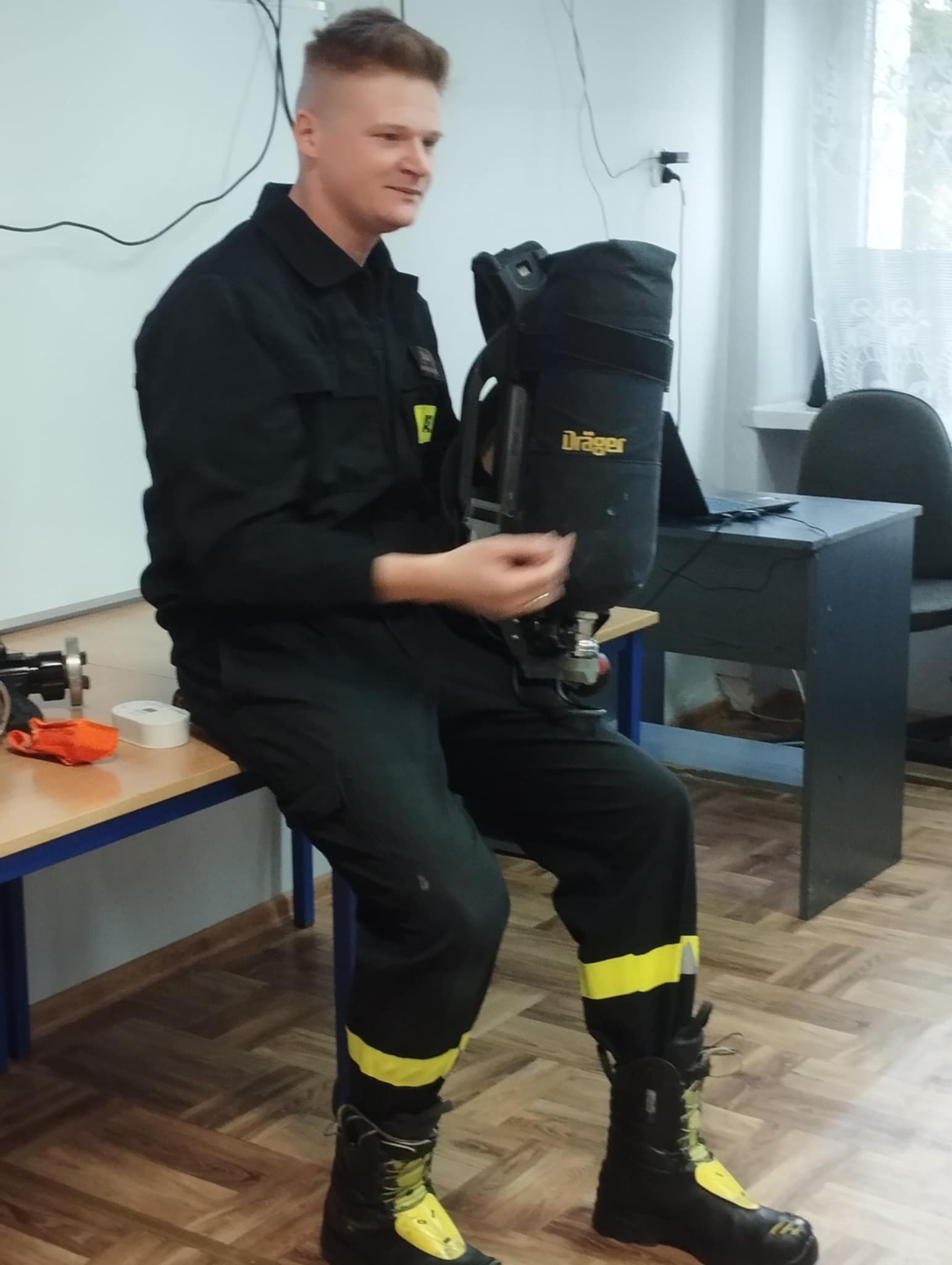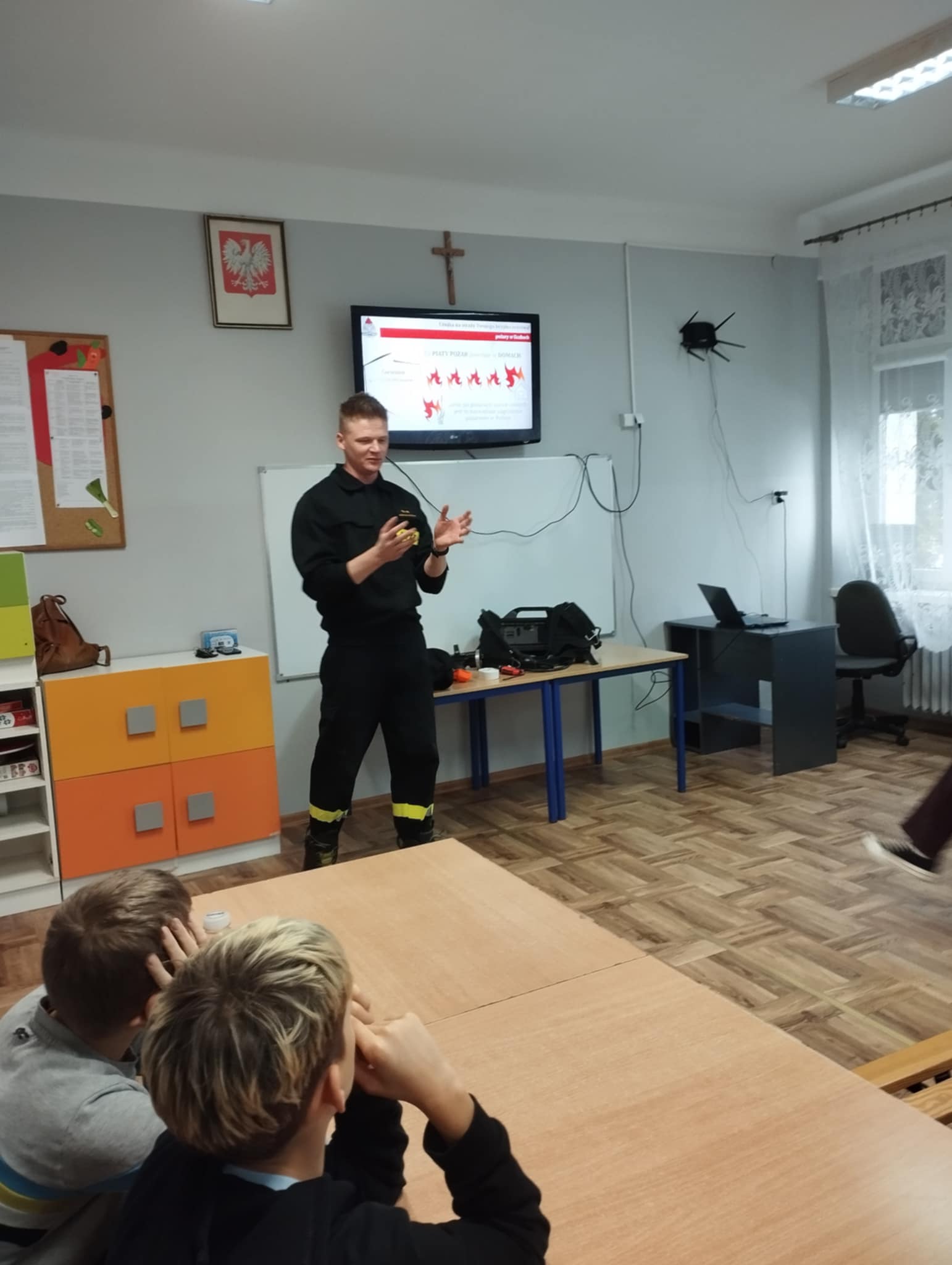 Dziś w naszej szkole odbyły się wyjątkowe zajęcia edukacyjne przeprowadzone przez funkcjonariusza Państwowej Straży Pożarnej w Lipsku mł. kpt. Pana Dominika Kominka. Była to niezwykle cenna lekcja bezpieczeństwa, która pokazała uczniom, jak ważna jest wiedza i odpowiednie reakcje w sytuacjach zagrożenia. Podczas prelekcji Pan strażak opowiedział o swojej codziennej pracy, sprzęcie oraz najczęstszych przyczynach pożarów. Szczególnie dużo uwagi poświecił czujkom dymu – urządzeniom, które mogą uratować życie. Uczniowie dowiedzieli się: jak działa czujka dymu, gdzie powinna być zamontowana, jak często należy sprawdzać jej działanie, dlaczego jest ważnym elementem bezpieczeństwa domowego. Uczniowie przypomnieli sobie również podstawowe zasady postępowania w przypadku pożaru, sposoby wzywania pomocy oraz konieczności zachowania spokoju w sytuacjach kryzysowych. Zajęcia były urozmaicone pokazem sprzętu oraz praktycznymi wskazówkami które na długo zapadną naszym uczniom w pamięci. Serdecznie dziękujemy, Panu Dominikowi za poświęcony czas, profesjonalizm i zaangażowanie w edukację naszych uczniów.