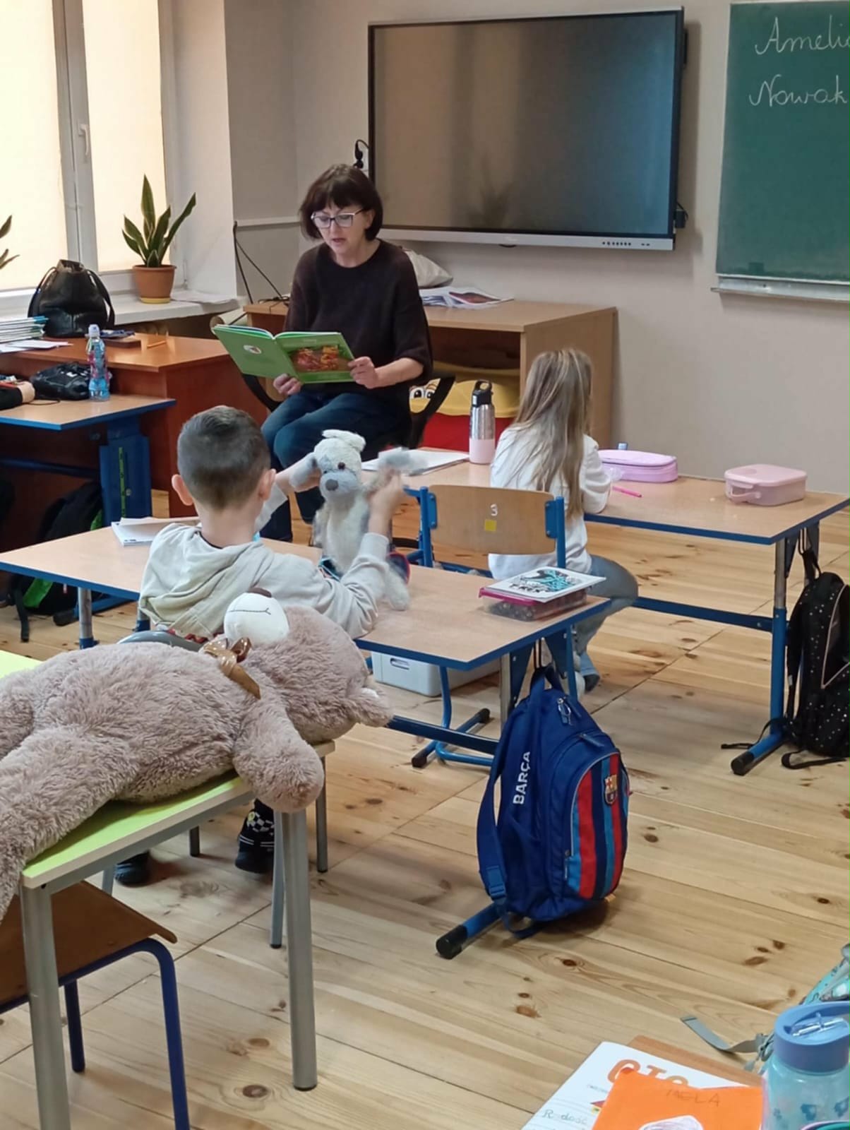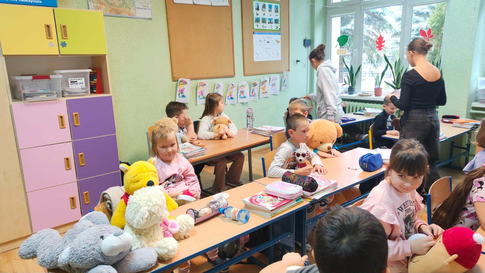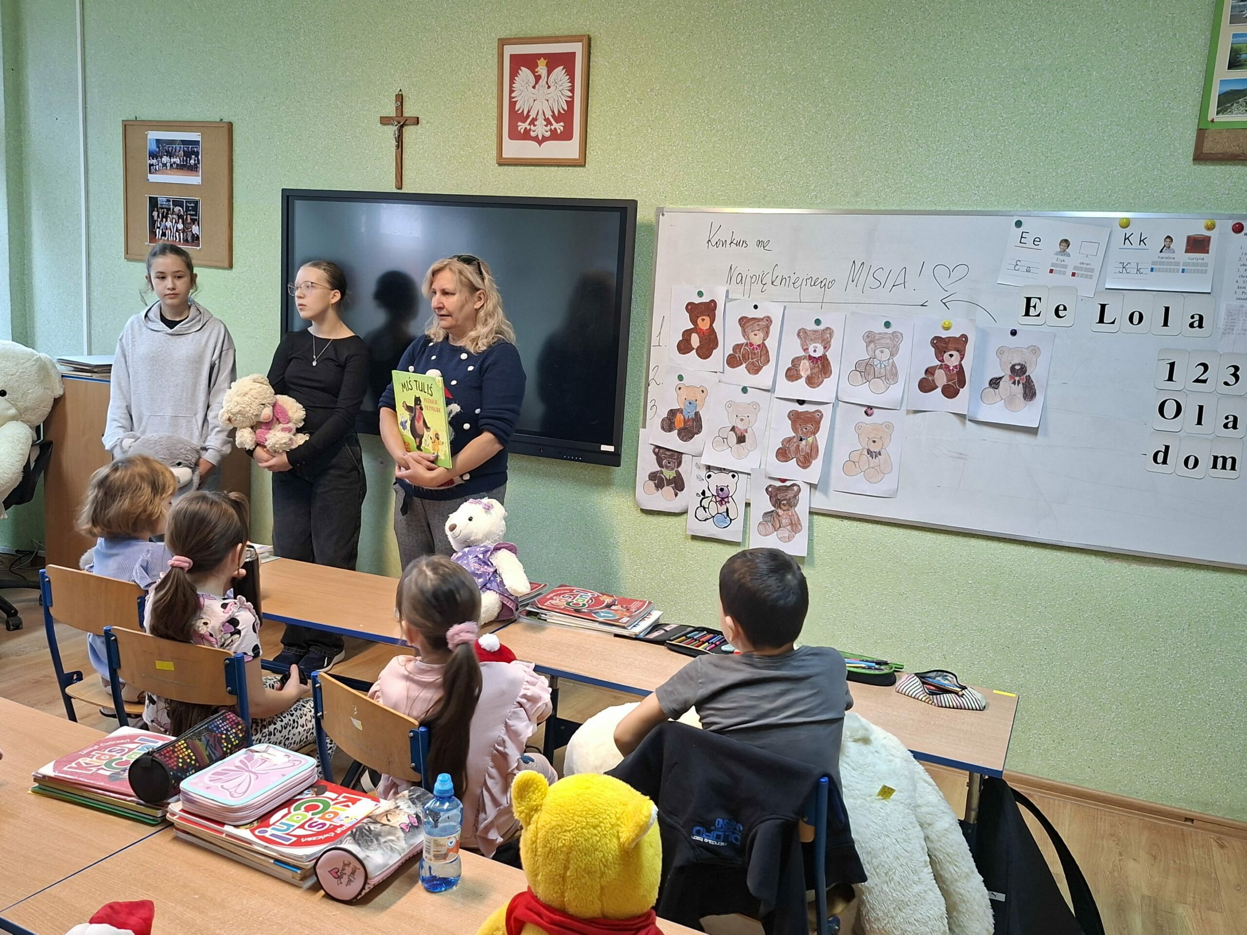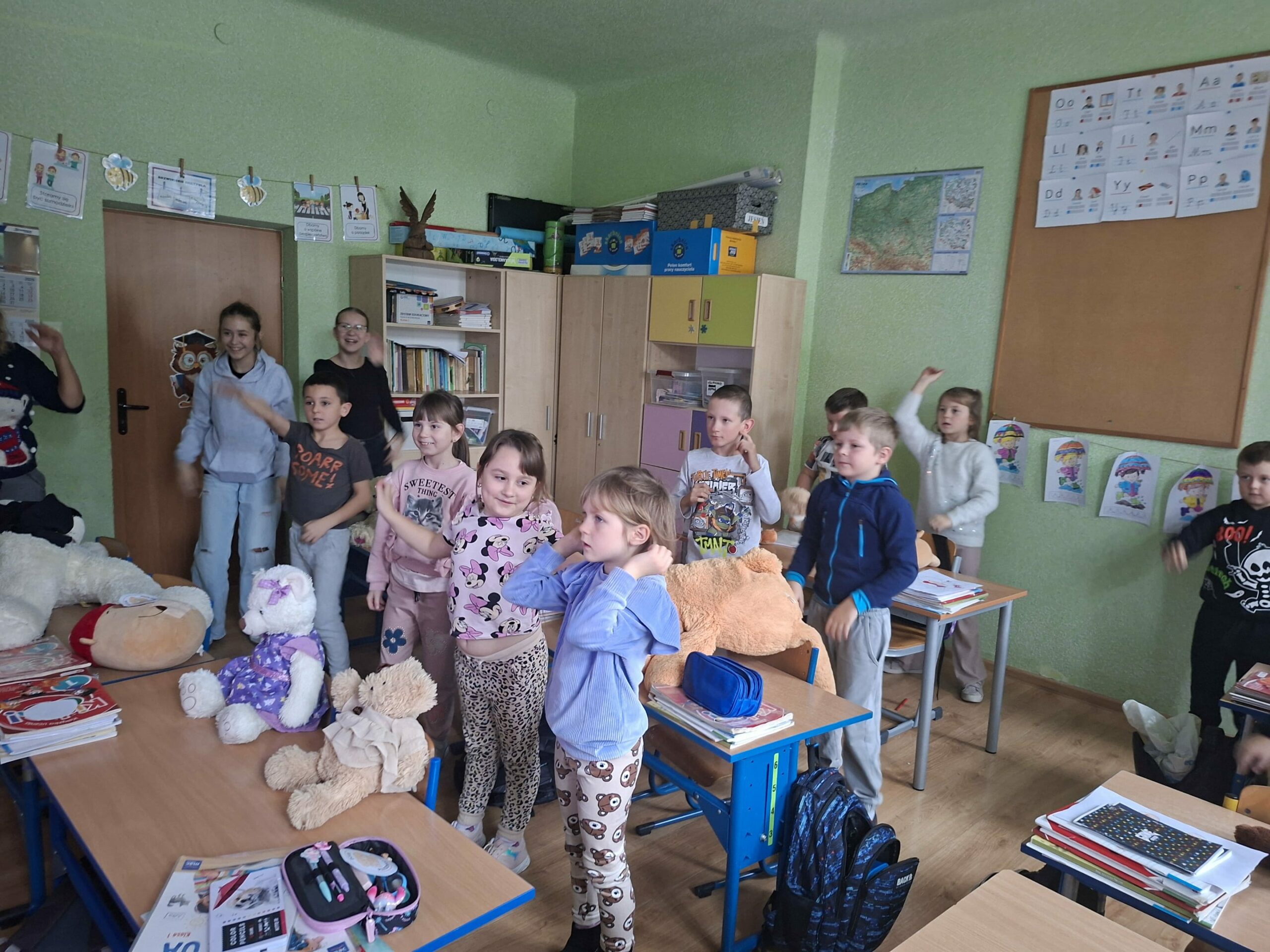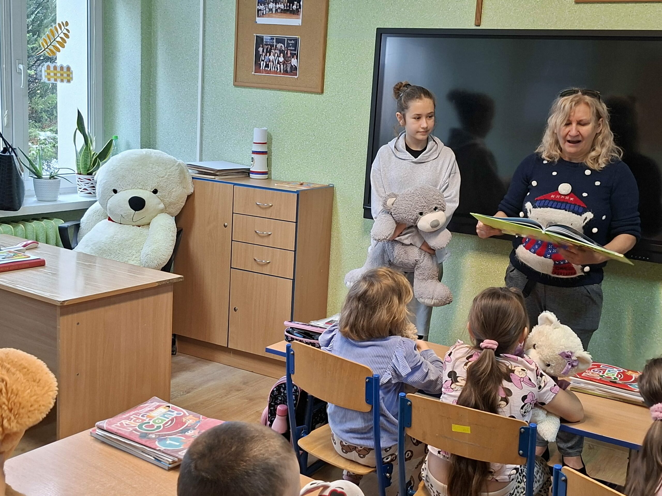 Nauczyciele z radością zainaugurowali ogólnopolską akcję „Cała Polska czyta dzieciom”, zabierając uczniów w niezwykłą podróż po kartach książek, w których pierwsze skrzypce grały misie – te grzeczne i te rozrabiaki, śpiochy, łakomczuchy, a nawet prawdziwe misiowe eleganty (czyli podejrzanie podobne do niektórych naszych milusińskich). Był misiowy taniec z przytupem, zabawy na wesoło, kodowanie na dywanie (bo każdy miś zna się na technologii), kolorowanki, zagadki oraz emocjonujące misiowe koło fortuny – emocje jak na finale talent show! Co więcej – dzieci pilnie uczyły się układu tanecznego do piosenki „Nasze skrzydła”, który już w czwartek zaprezentują na Andrzejkowym Balu Postaci z Bajek.