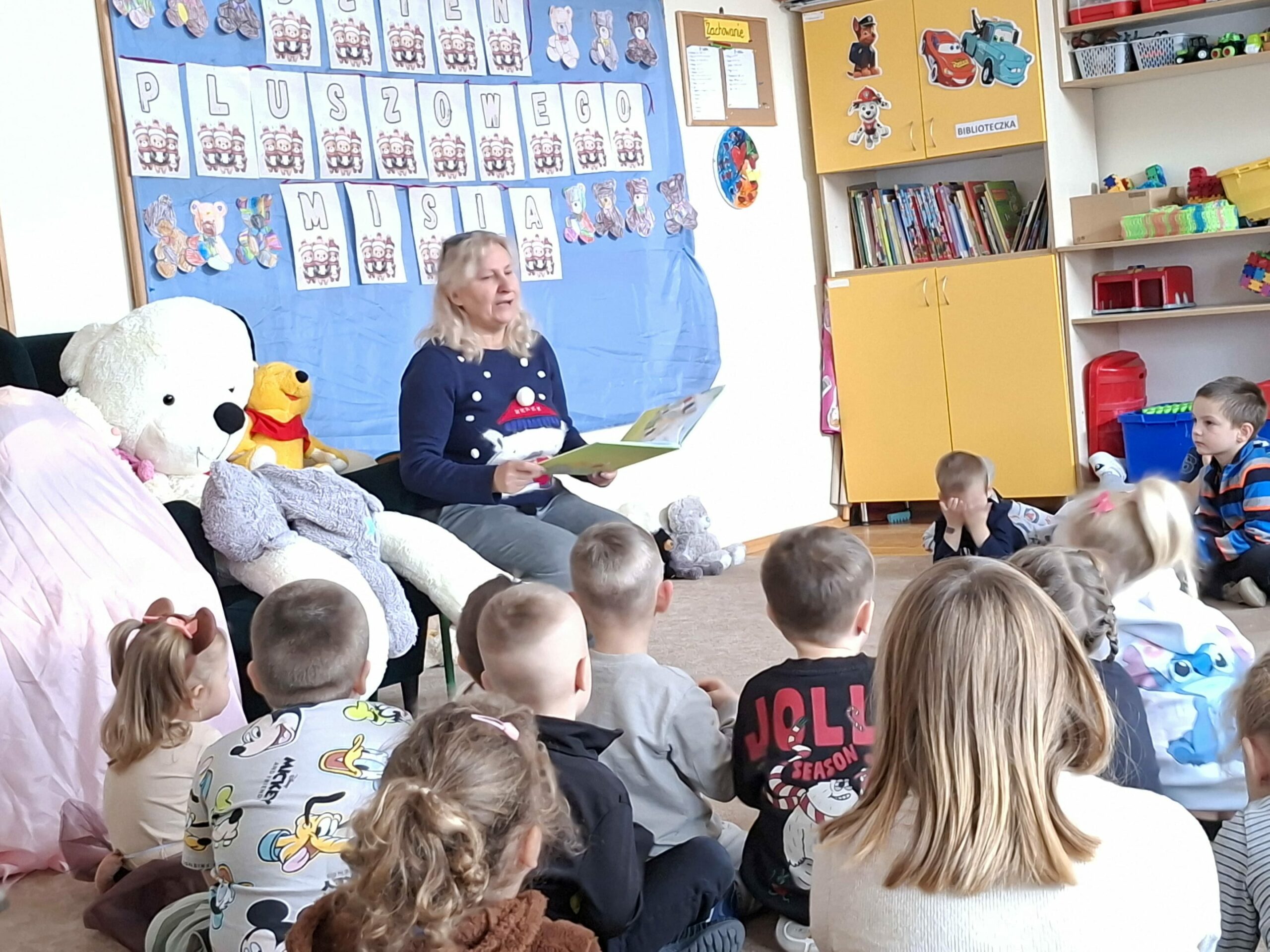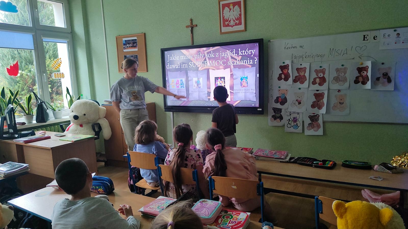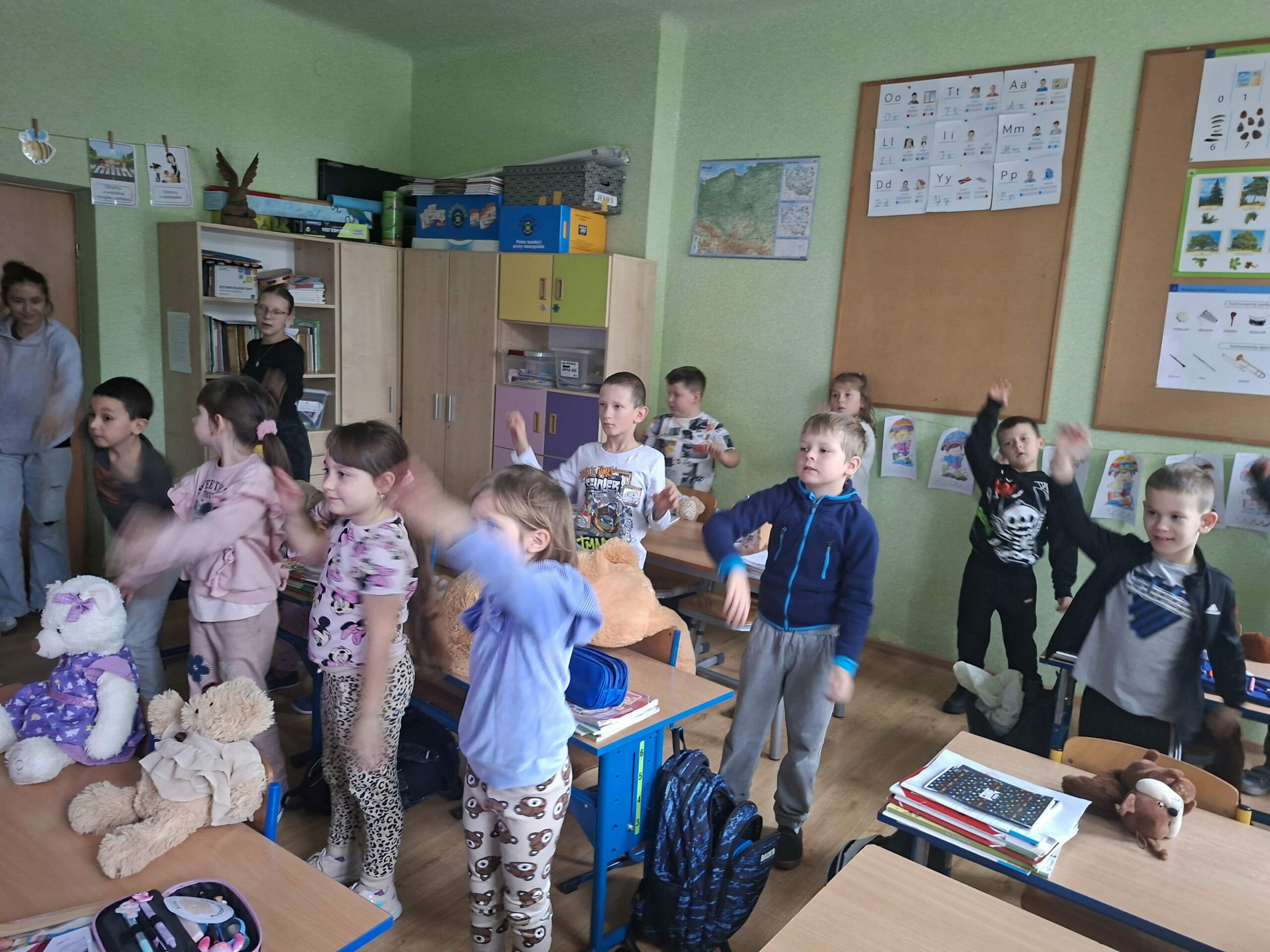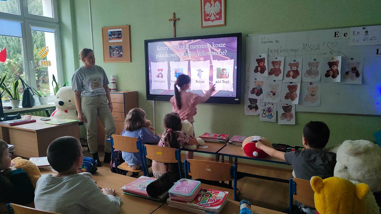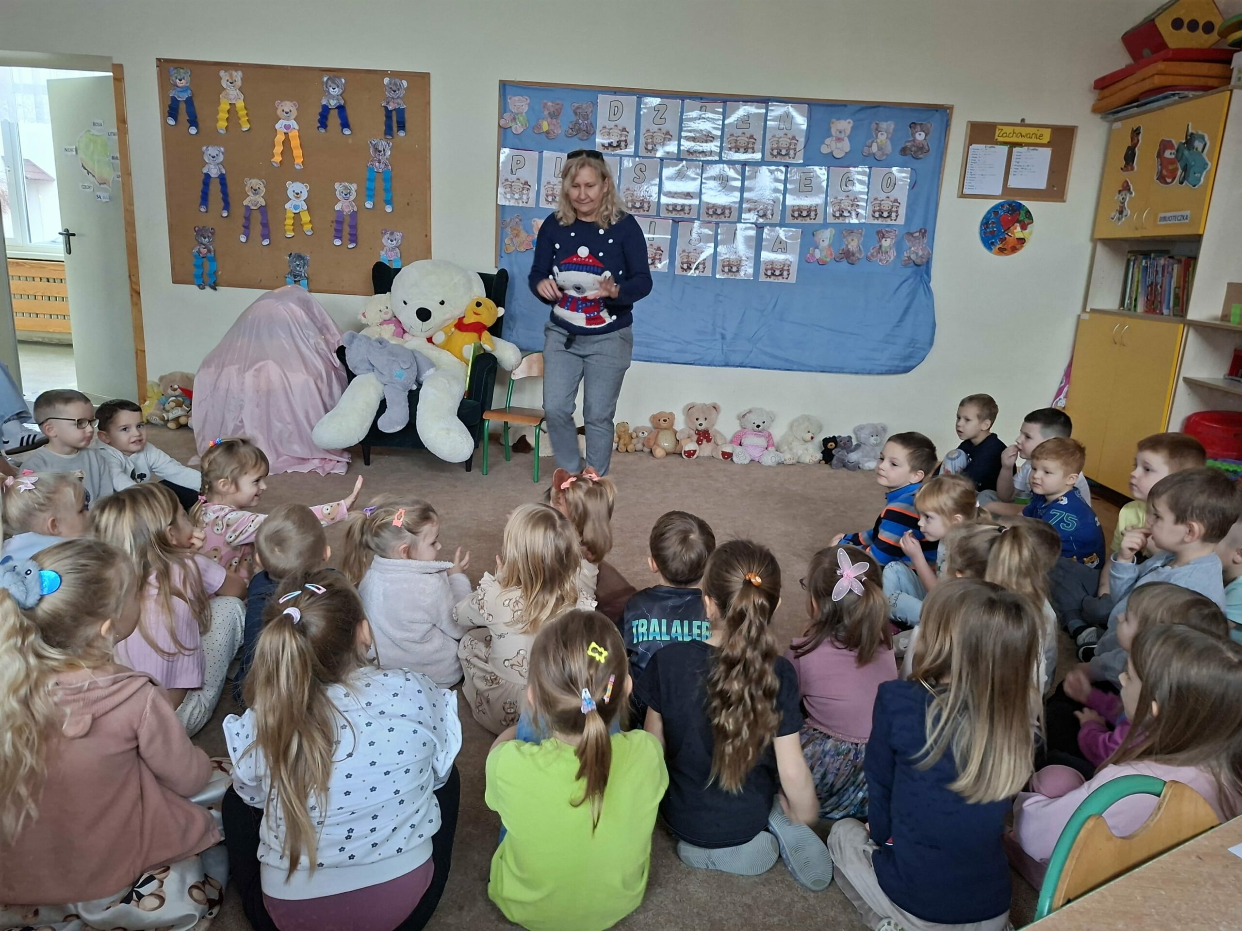 Nauczyciele z radością zainaugurowali ogólnopolską akcję „Cała Polska czyta dzieciom”, zabierając uczniów w niezwykłą podróż po kartach książek, w których pierwsze skrzypce grały misie – te grzeczne i te rozrabiaki, śpiochy, łakomczuchy, a nawet prawdziwe misiowe eleganty (czyli podejrzanie podobne do niektórych naszych milusińskich). Był misiowy taniec z przytupem, zabawy na wesoło, kodowanie na dywanie (bo każdy miś zna się na technologii), kolorowanki, zagadki oraz emocjonujące misiowe koło fortuny – emocje jak na finale talent show! Co więcej – dzieci pilnie uczyły się układu tanecznego do piosenki „Nasze skrzydła”, który już w czwartek zaprezentują na Andrzejkowym Balu Postaci z Bajek.