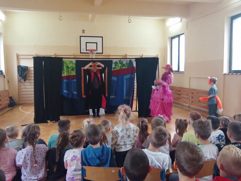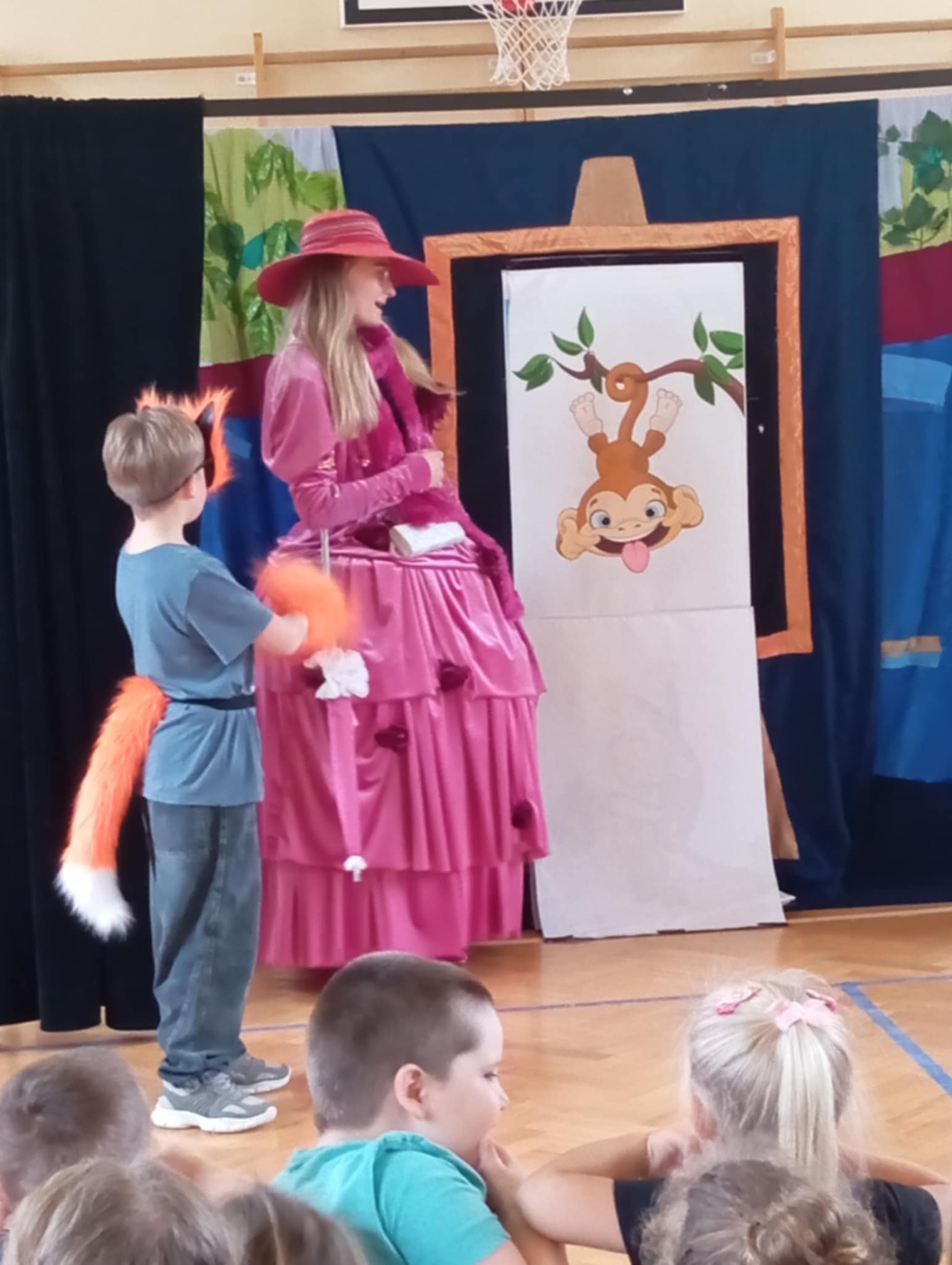 Spotkanie dostarczyło dzieciom wiele radości o czym świadczyły emocjonalne reakcje oglądających. Wspaniała scenografia, stroje aktorów i piosenki „Witajcie w naszej bajce”, „Zoo”, „Kaczka- Dziwaczka” uatrakcyjniły przedstawienie. Z pewnością zaprosimy jeszcze nie raz aktorów zaprzyjaźnionego teatru do naszej szkoły.