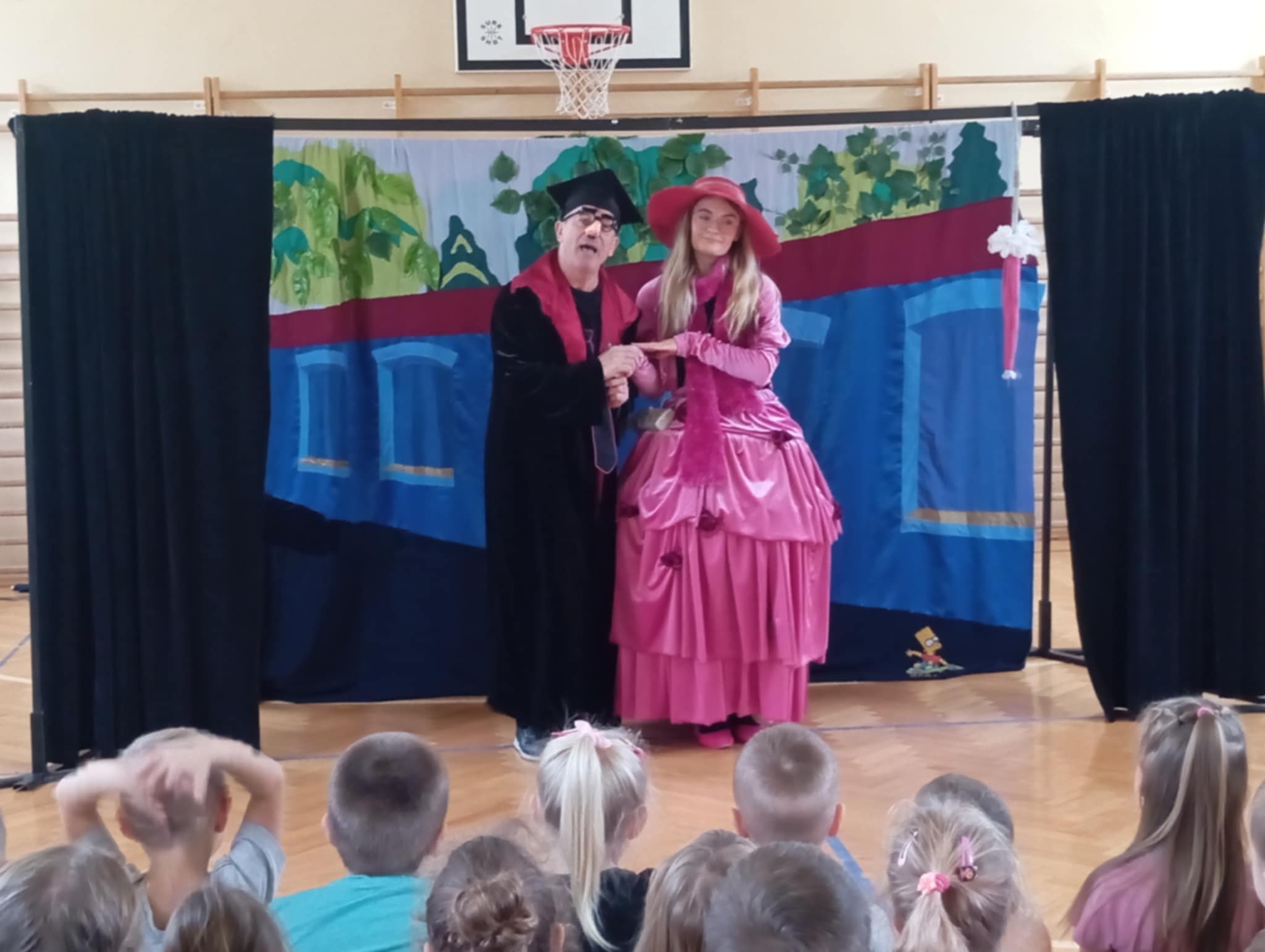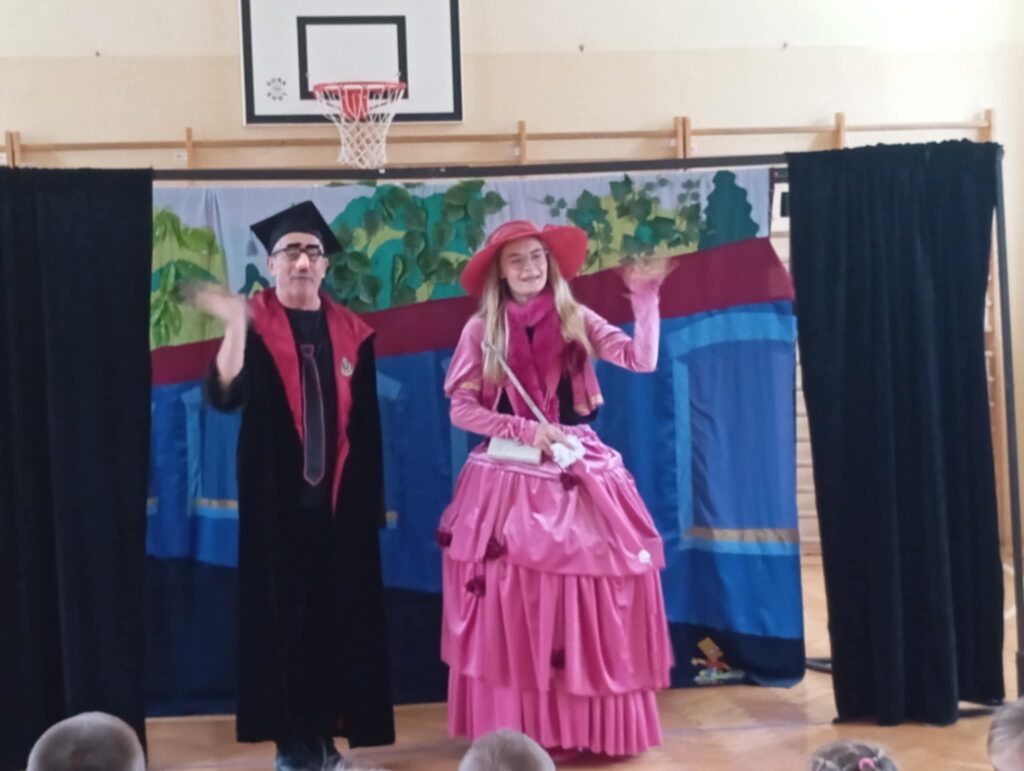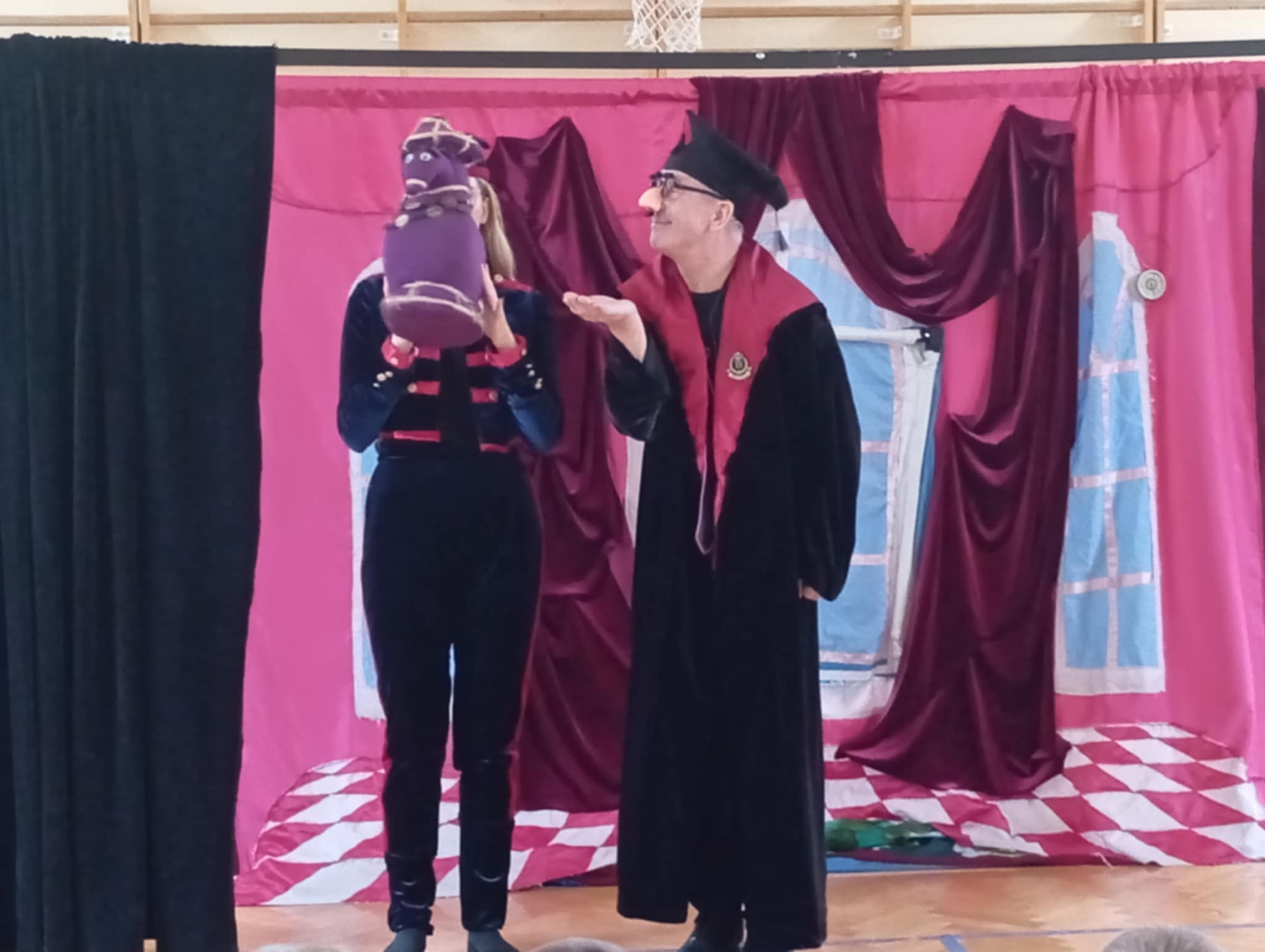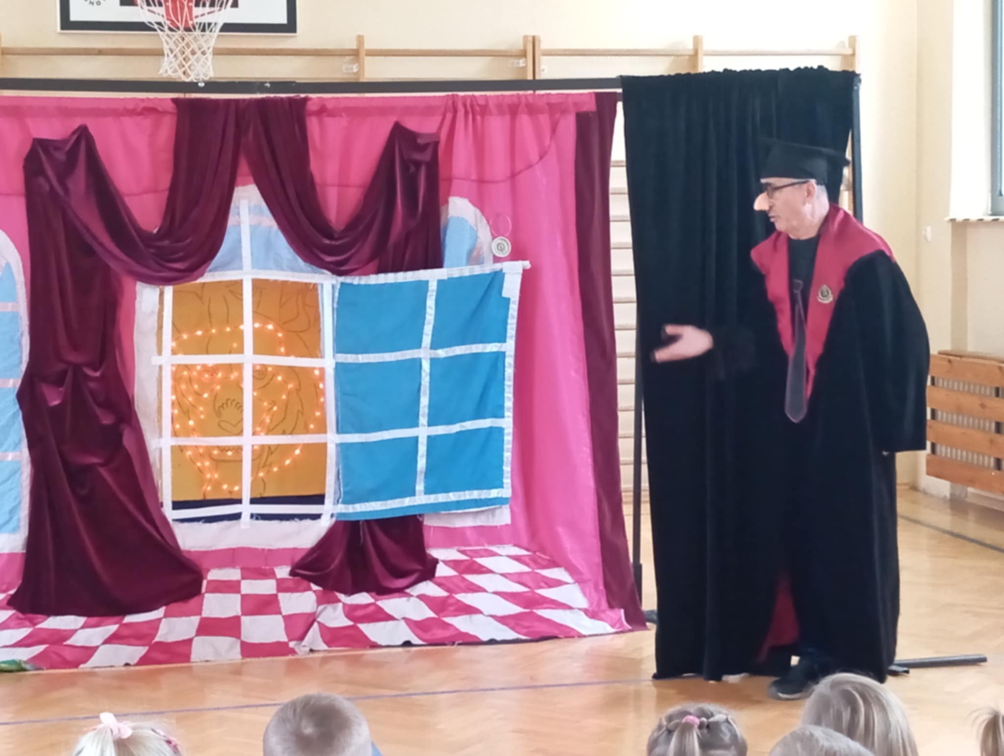 Dnia 02 grudnia 2025 roku najmłodsze dzieci PSP w Solcu nad Wisłą odwiedzili aktorzy Teatru Jana Brzechwy „Spichlerz” z Lublina. Wykonawcy przedstawili spektakl przygotowany w oparciu o utwór Jana Brzechwy pt. „Akademia Pana Kleksa”. Przedstawienie rozpoczął Adaś Niezgódka, który otwierał drzwi do wielu bajek: „Jaś i Małgosia”, „Kot w butach”, „Śpiąca Królewna”, „Piękna i Bestia”, itp. Okazało się, że jak to w bajkach, były też magiczne przedmioty- gadający świecznik, imbryk i rozbrykane filiżanki, którymi byli oczywiście nasi uczniowie.