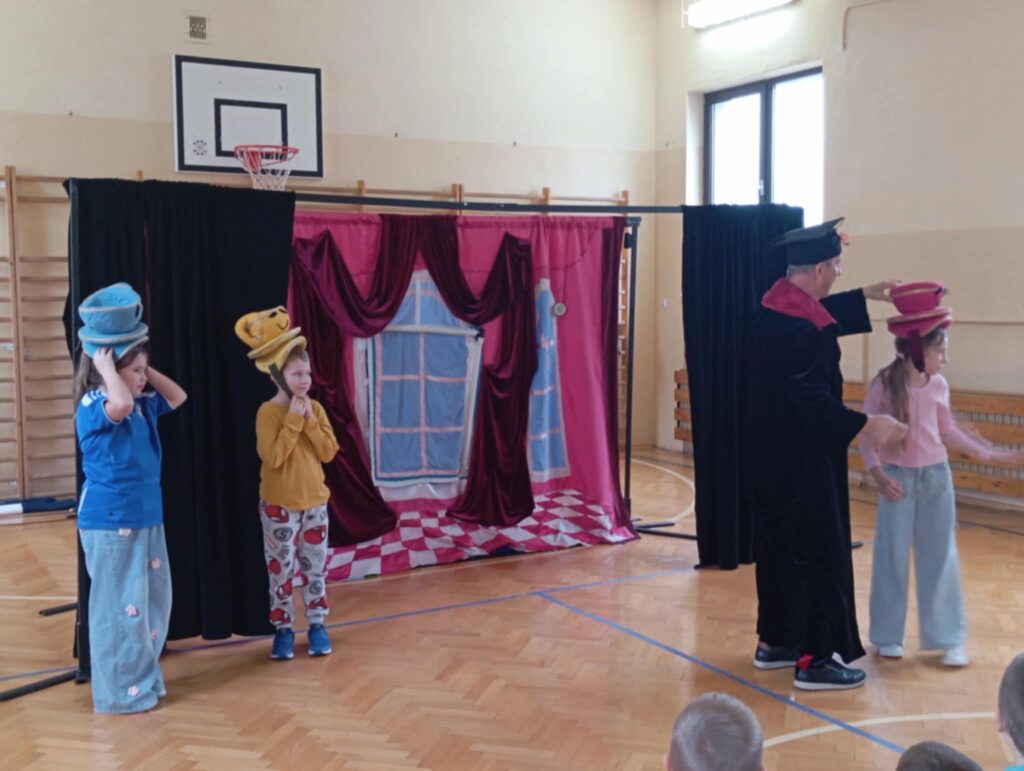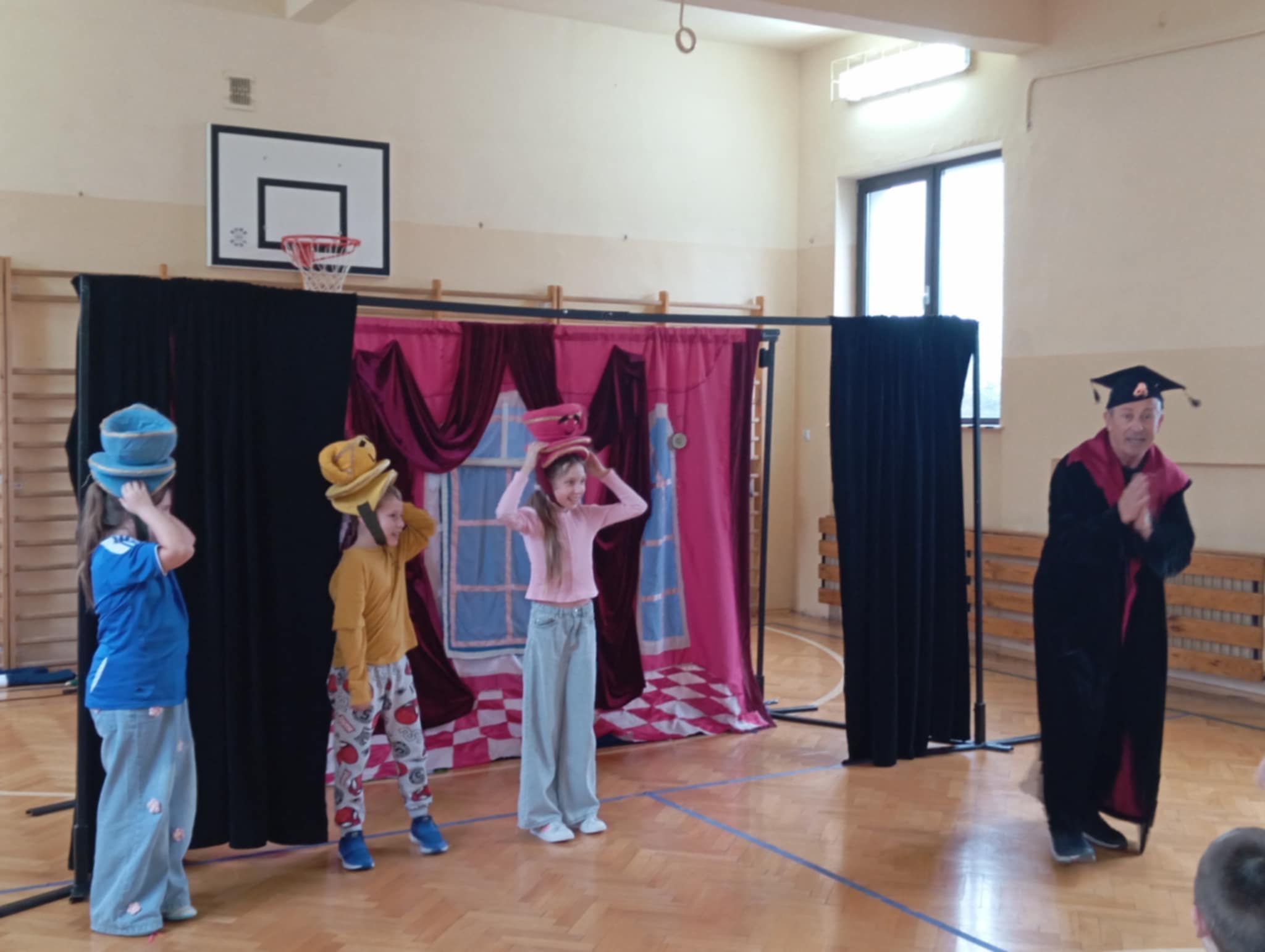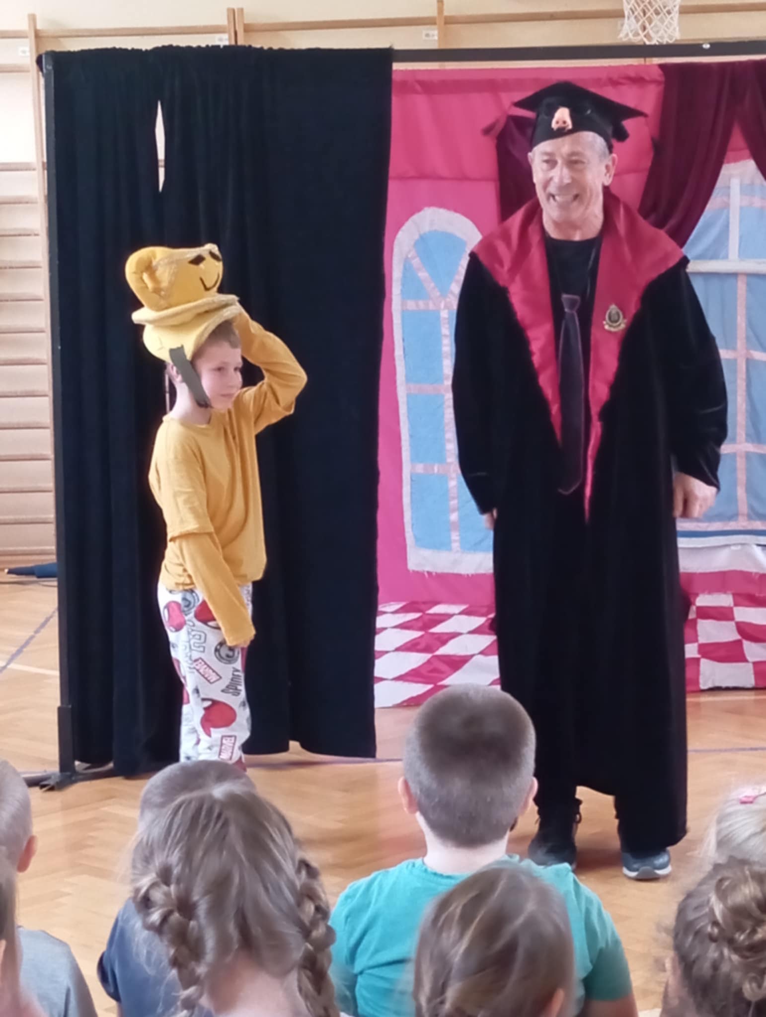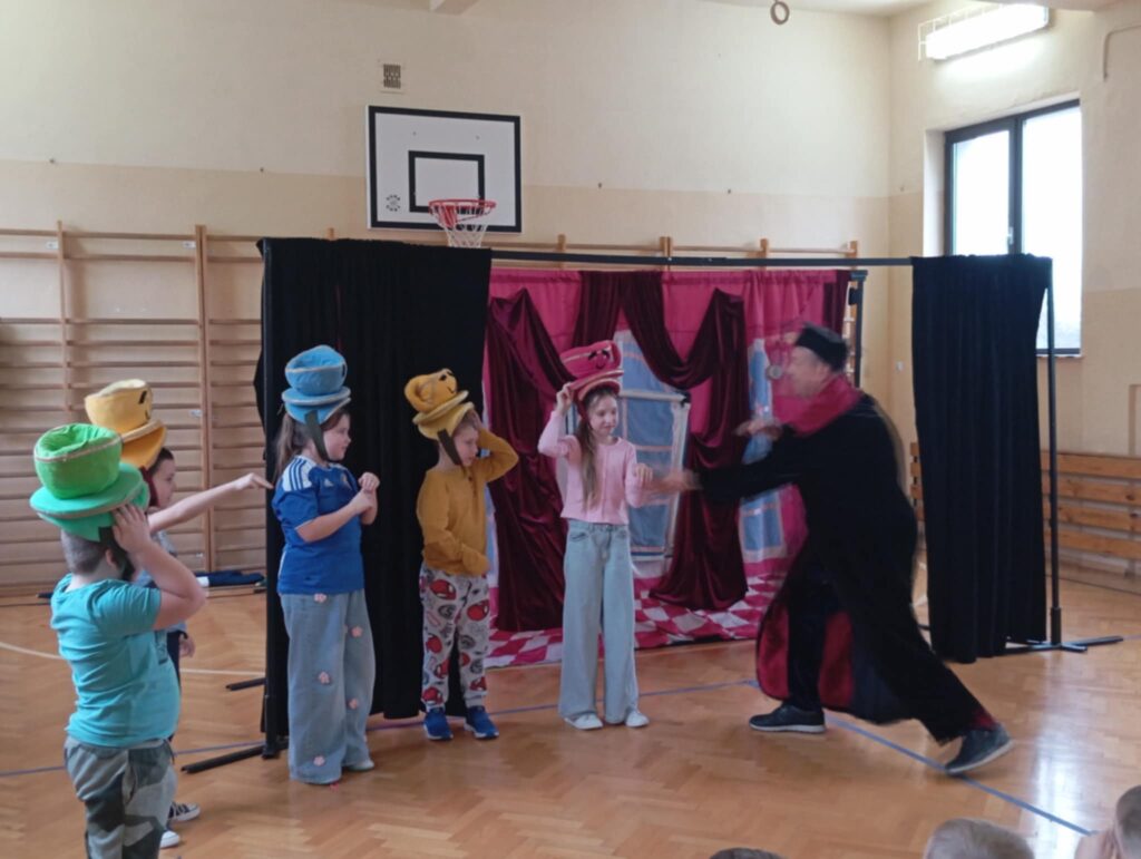 Dnia 02 grudnia 2025 roku najmłodsze dzieci PSP w Solcu nad Wisłą odwiedzili aktorzy Teatru Jana Brzechwy „Spichlerz” z Lublina. Wykonawcy przedstawili spektakl przygotowany w oparciu o utwór Jana Brzechwy pt. „Akademia Pana Kleksa”. Przedstawienie rozpoczął Adaś Niezgódka, który otwierał drzwi do wielu bajek: „Jaś i Małgosia”, „Kot w butach”, „Śpiąca Królewna”, „Piękna i Bestia”, itp. Okazało się, że jak to w bajkach, były też magiczne przedmioty- gadający świecznik, imbryk i rozbrykane filiżanki, którymi byli oczywiście nasi uczniowie.
