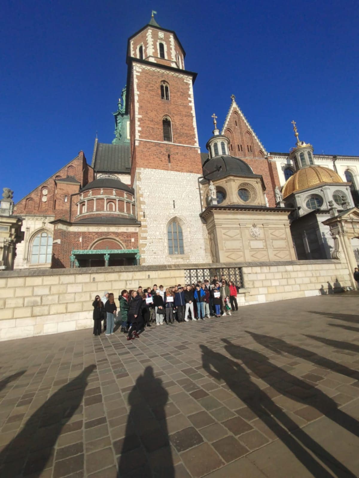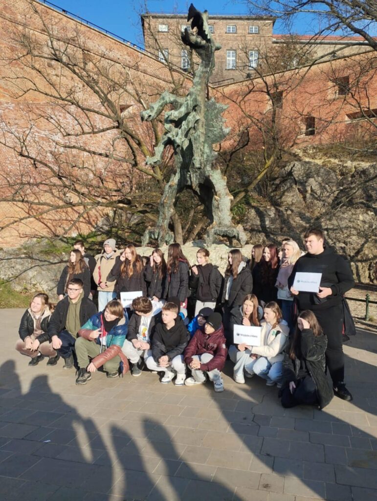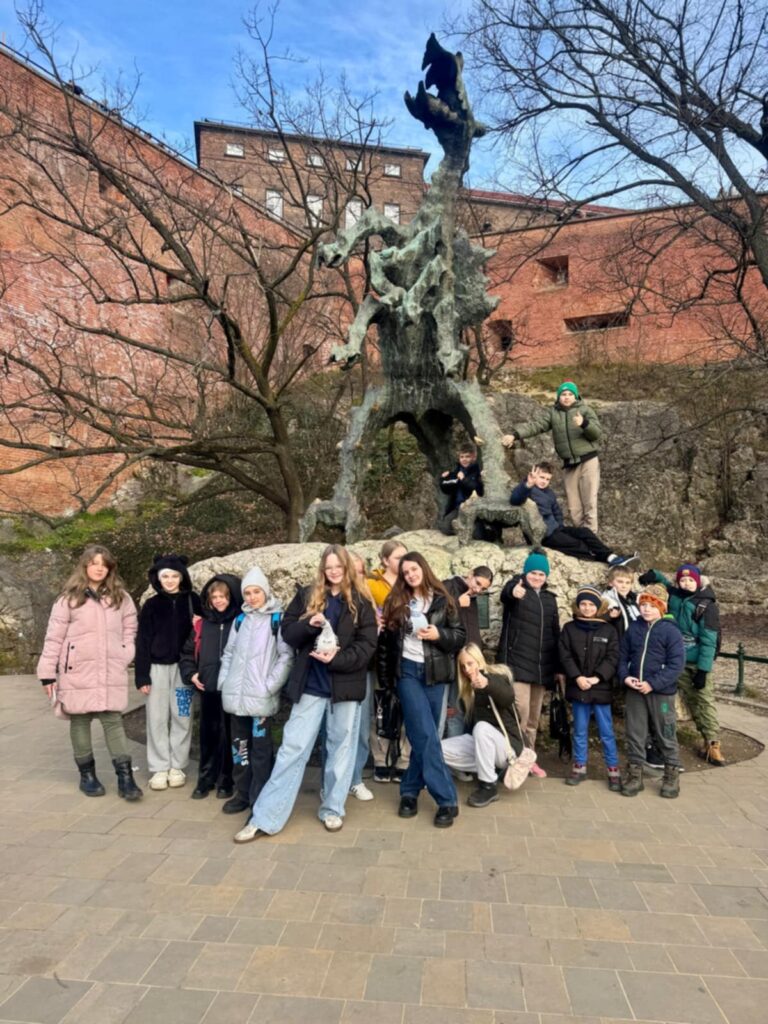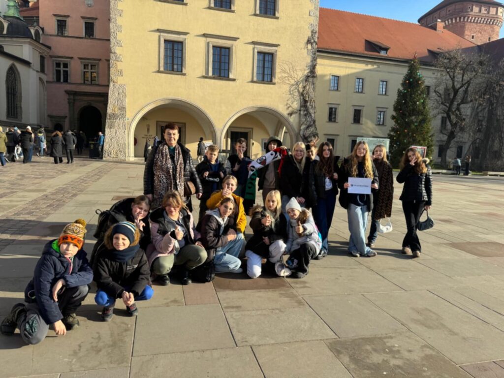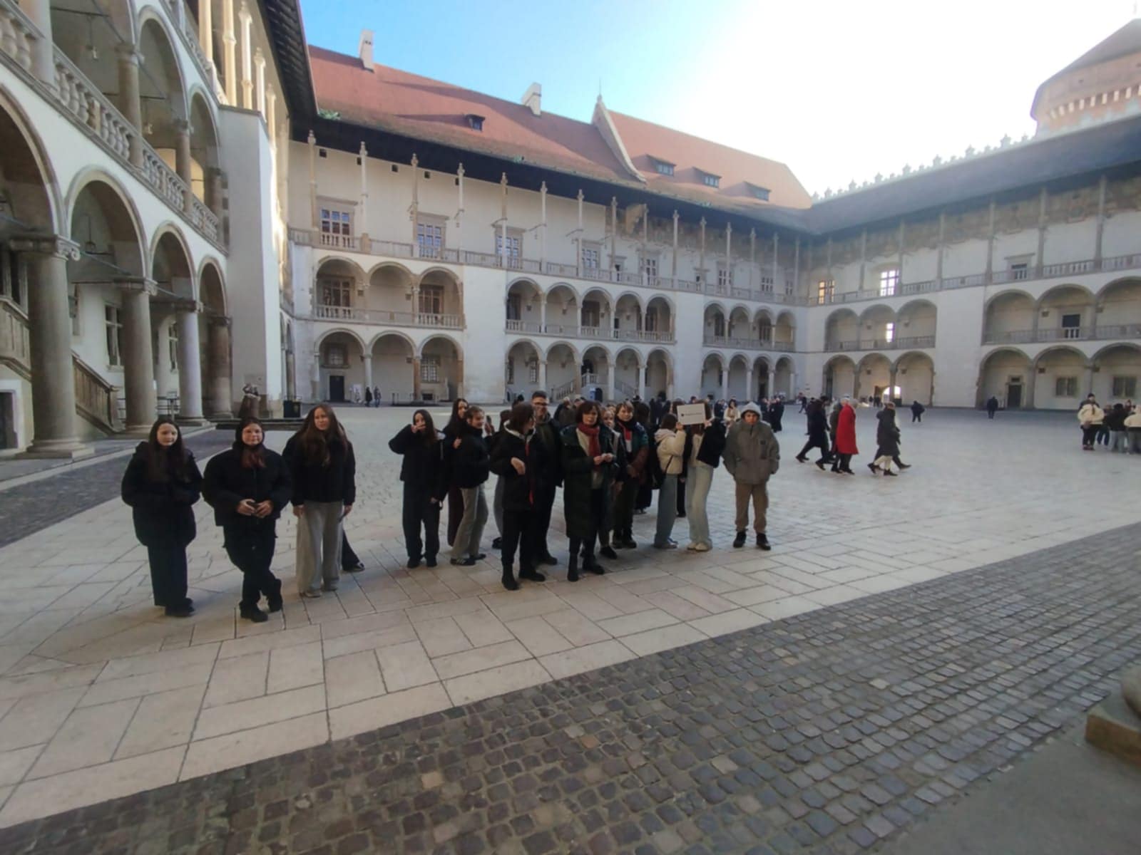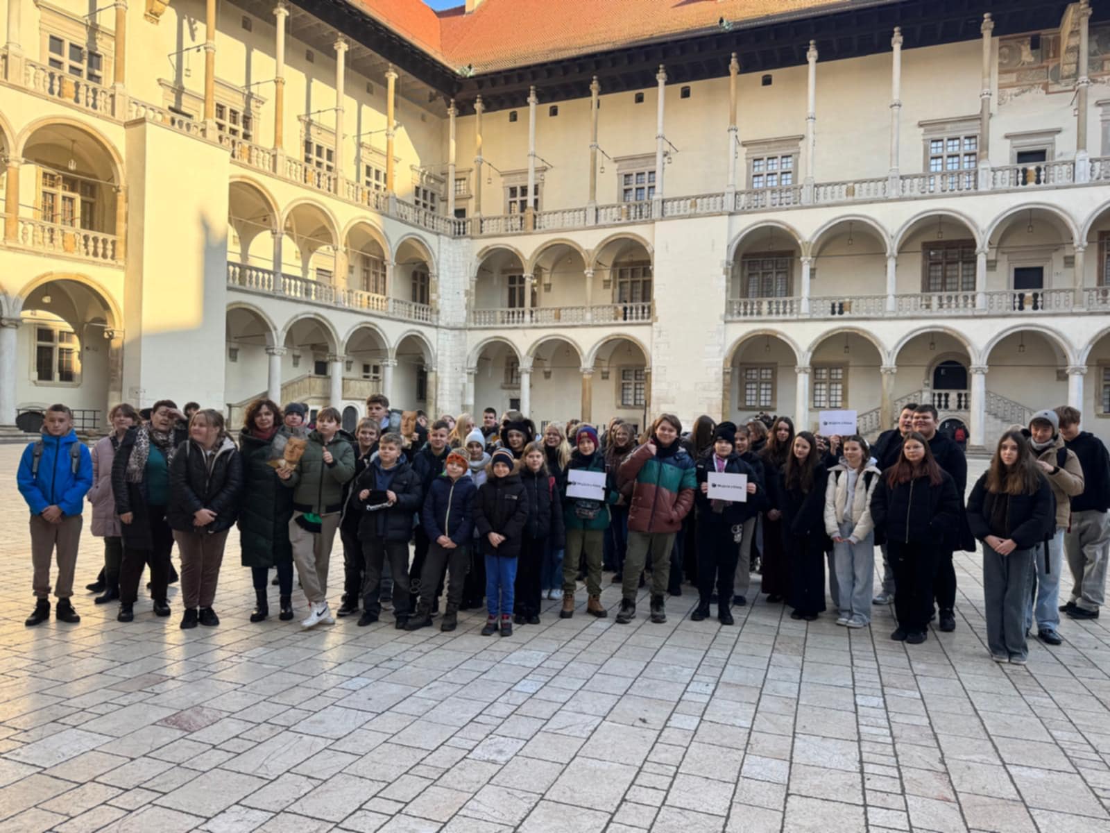 Podczas pobytu w Krakowie uczniowie mieli okazję poznać najważniejsze zabytki miasta. Wszystkich zachwyciło piękno Wzgórza Wawelskiego, Katedry Wawelskiej oraz Zamku Królewskiego. Na Wawelu zwiedzali komnaty królewskie, poznając historię polskich monarchów oraz życie codzienne na dawnym dworze królewskim. Spacer po Rynku Głównym umożliwił obejrzenie Sukiennic oraz Kościoła Mariackiego.
