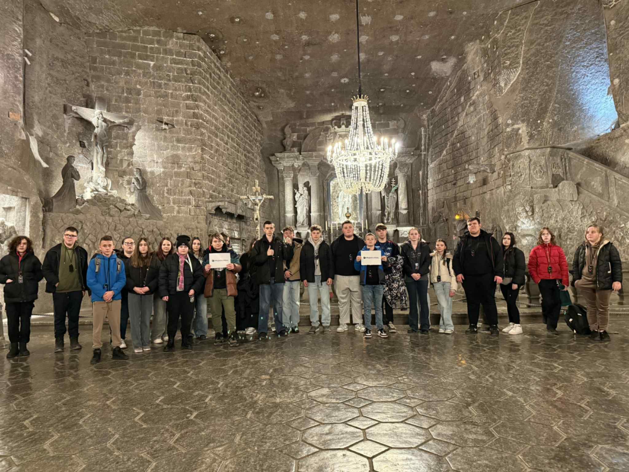 Kolejnym punktem programu była Kopalnia Soli w Wieliczce. Uczniowie wzięli udział w ciekawych warsztatach edukacyjno-kulturalnych w Muzeum Żup Krakowskich, a także, pokonując trasę turystyczną, zwiedzili Komnatę św. Kingi oraz bogate zbiory eksponatów. Dzięki temu poznali historię wydobycia soli oraz znaczenie kopalni dla dziedzictwa kulturowego Polski.