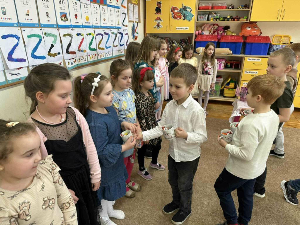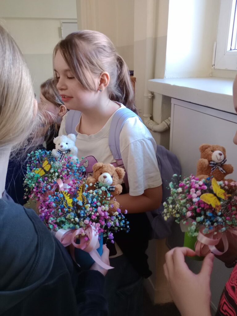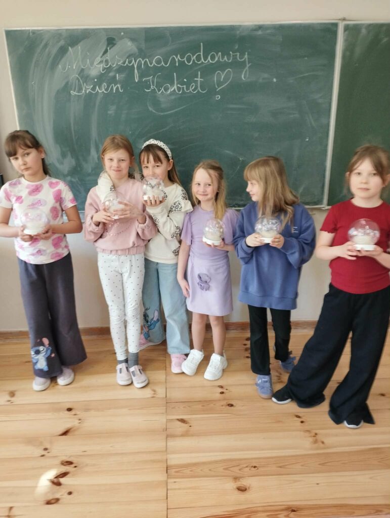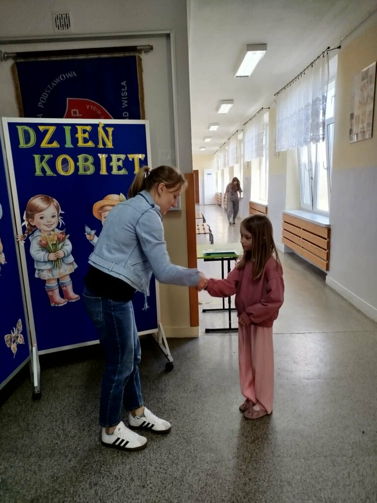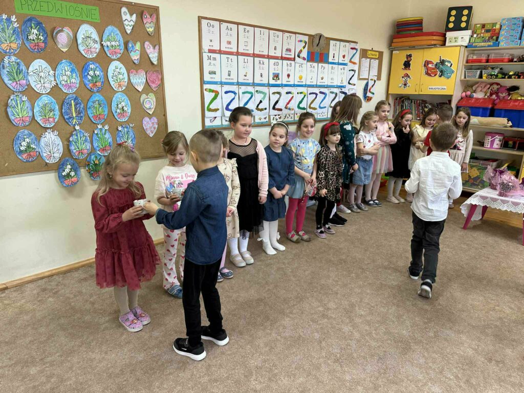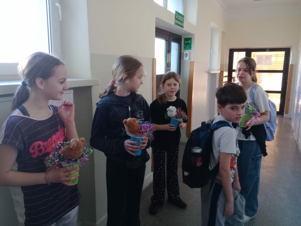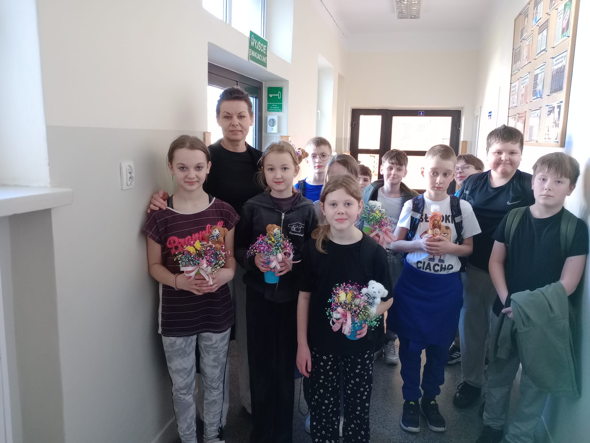 Dzień 9 marca upłynął w wyjątkowo miłej i uroczystej atmosferze. Dziewczęta i Panie pojawiły się w pięknych sukienkach i spódnicach, a Chłopcy i Panowie zadbali o miłe gesty – obdarowywali koleżanki oraz Panie kwiatami i słodyczami.