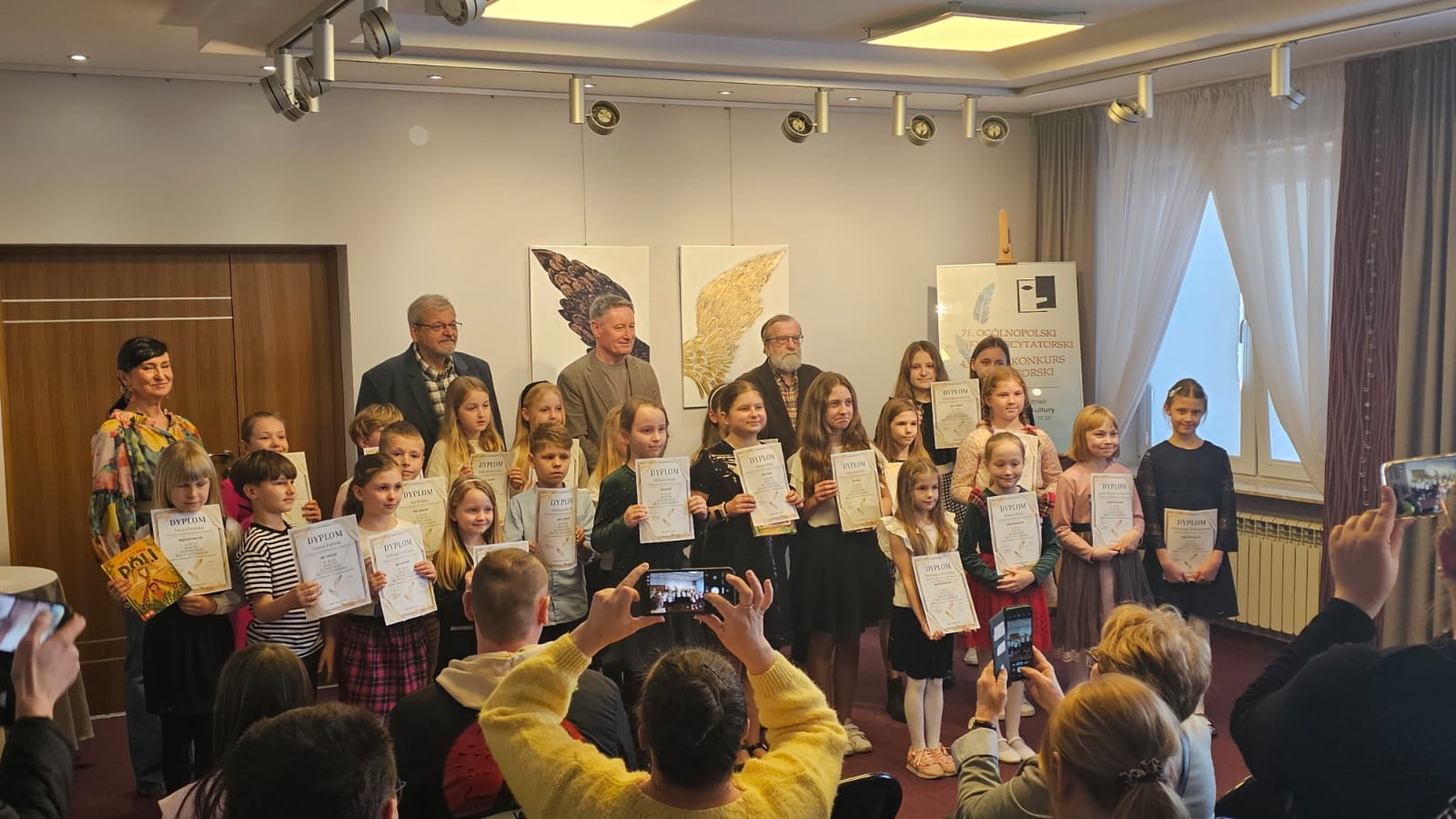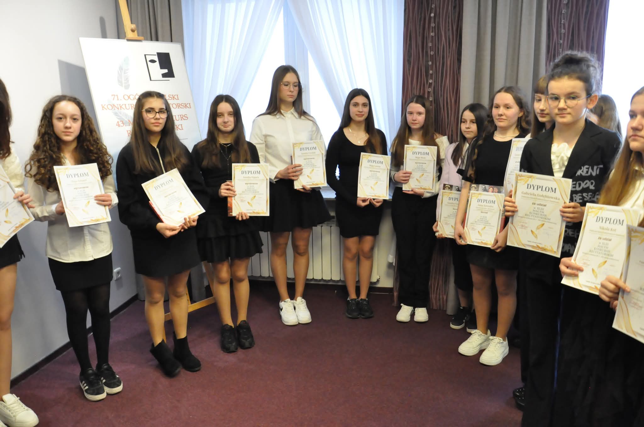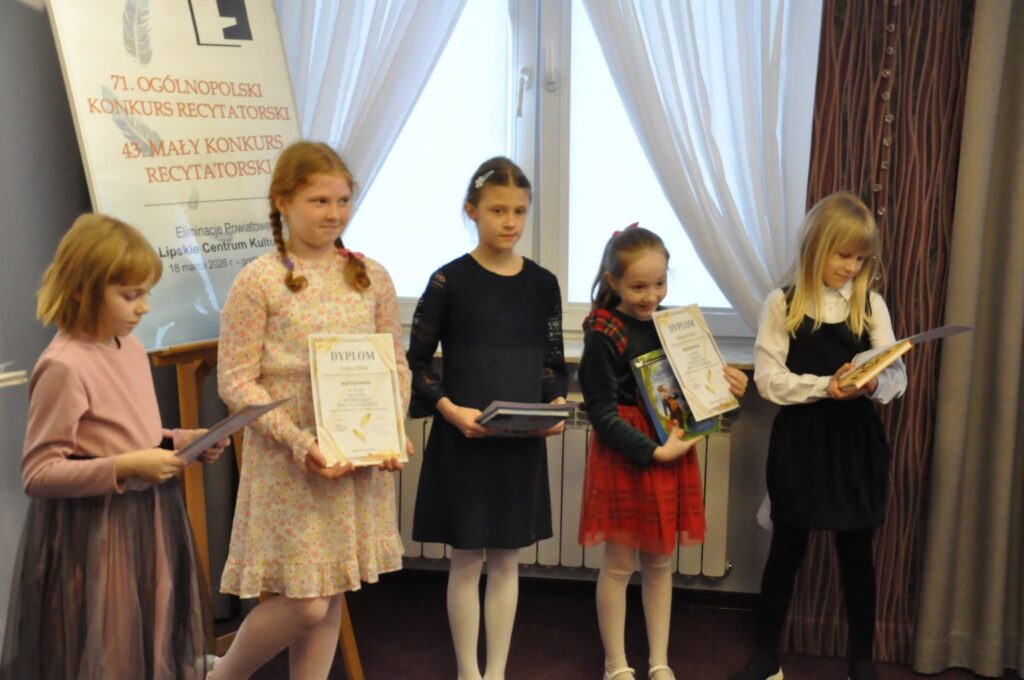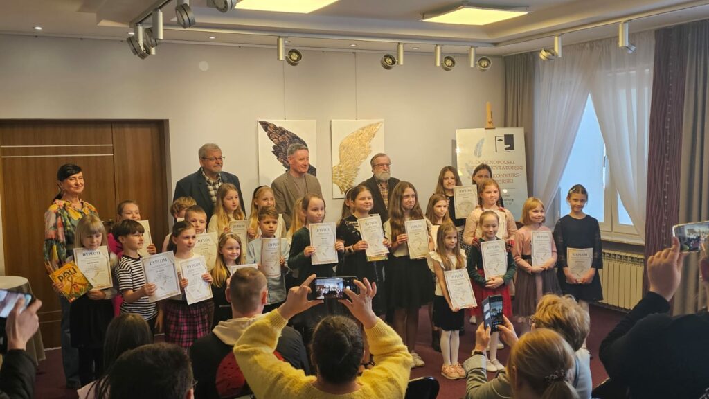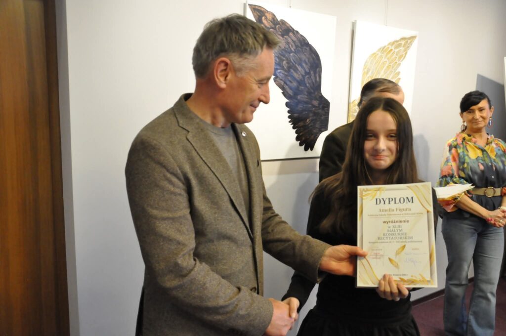 Sukcesy naszych uczniów w XLIII Małym Konkursie Recytatorskim Z dumą informujemy, że sześcioro uczniów naszej szkoły wzięło udział w XLIII Małym Konkursie Recytatorskim, który odbył się 18 marca w Lipsku. Nasi reprezentanci zaprezentowali się wspaniale, wykazując się nie tylko doskonałą pamięcią, ale także wyjątkową wrażliwością artystyczną i kulturą słowa. Przygotowane interpretacje utworów wykonali z dużym zaangażowaniem i sceniczną swobodą, niczym prawdziwi aktorzy. Naszą szkołę reprezentowali: • Maria Mróz (oddział przedszkolny – 6-latki) – wyróżnienie • Hanna Pękala (kl. II) – dyplom za udział • Laura Blin (kl. III) – wyróżnienie • Krzysztof Krupa (kl. III) – dyplom za udział • Maja Winiarczyk (kl. IV) – dyplom za udział • Amelia Figura (kl. VI) – wyróżnienie. Składamy serdeczne gratulacje wszystkim uczestnikom, dziękując za godne reprezentowanie naszej szkoły. Każdy udział w konkursie jest cennym doświadczeniem i świadectwem rozwijania talentów oraz pasji, dlatego z uznaniem podkreślamy wysiłek wszystkich uczniów, którzy podjęli to wyzwanie i zaprezentowali swoje umiejętności przed publicznością i jury. Wyrazy uznania i podziękowania kierujemy również do opiekunów, którzy przygotowali uczniów do udziału w konkursie.