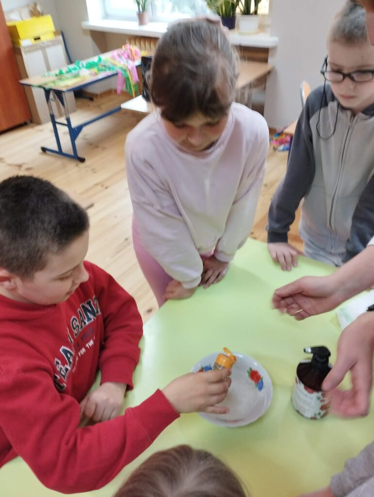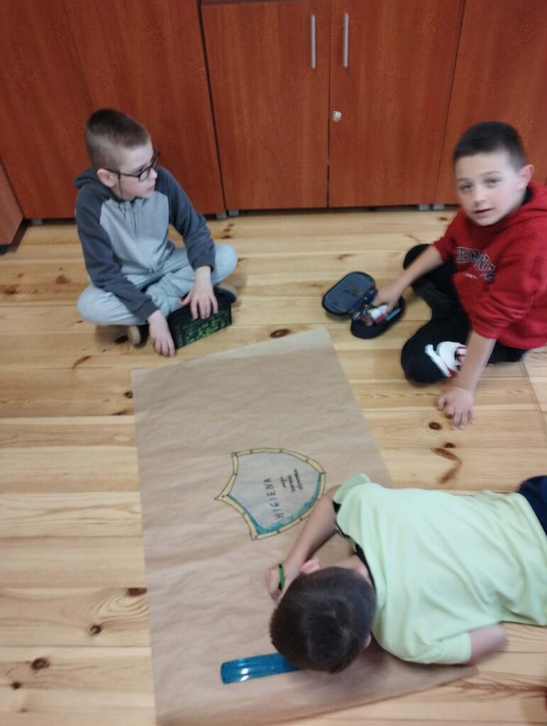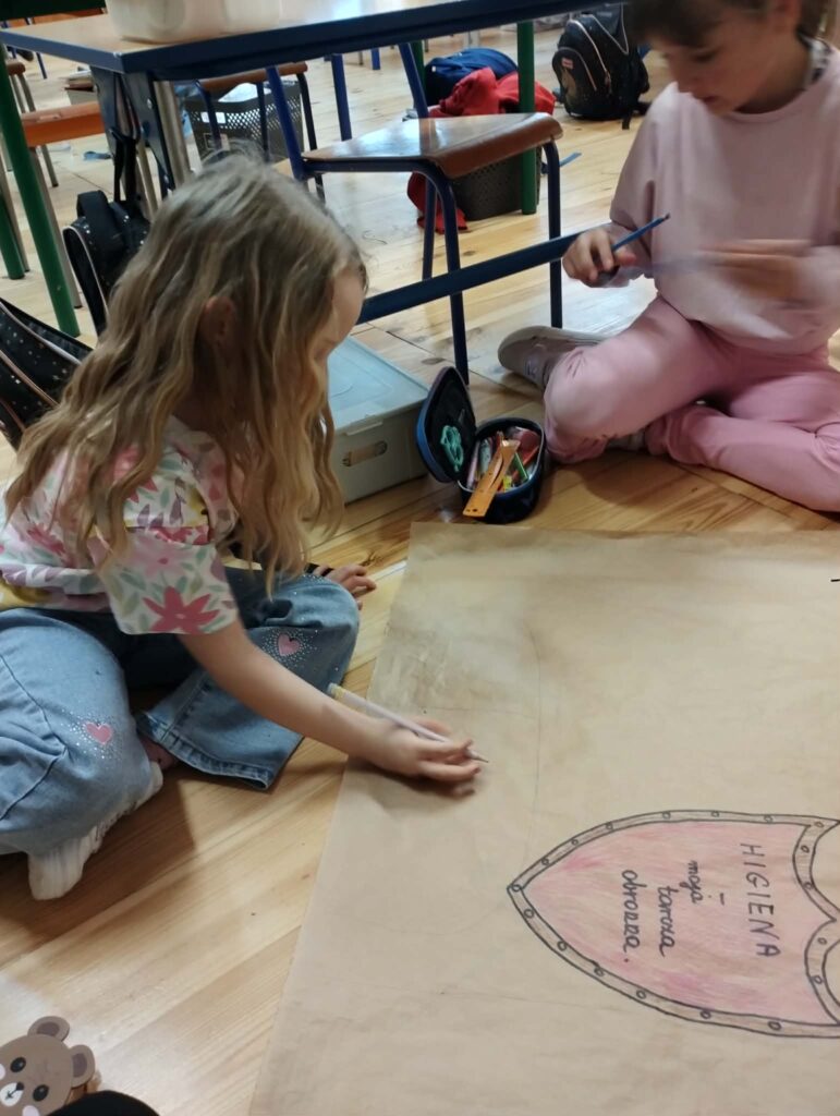 Następnie dzieci wykonały w grupach projekty pod hasłem „Higiena- moja tarcza ochronna”.