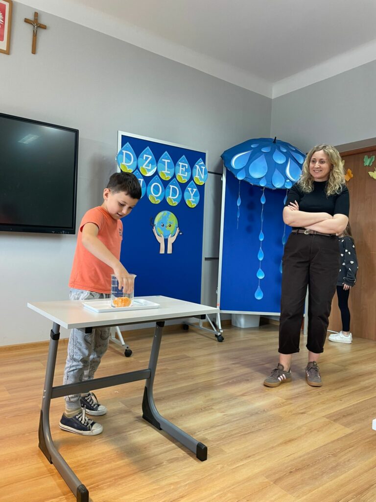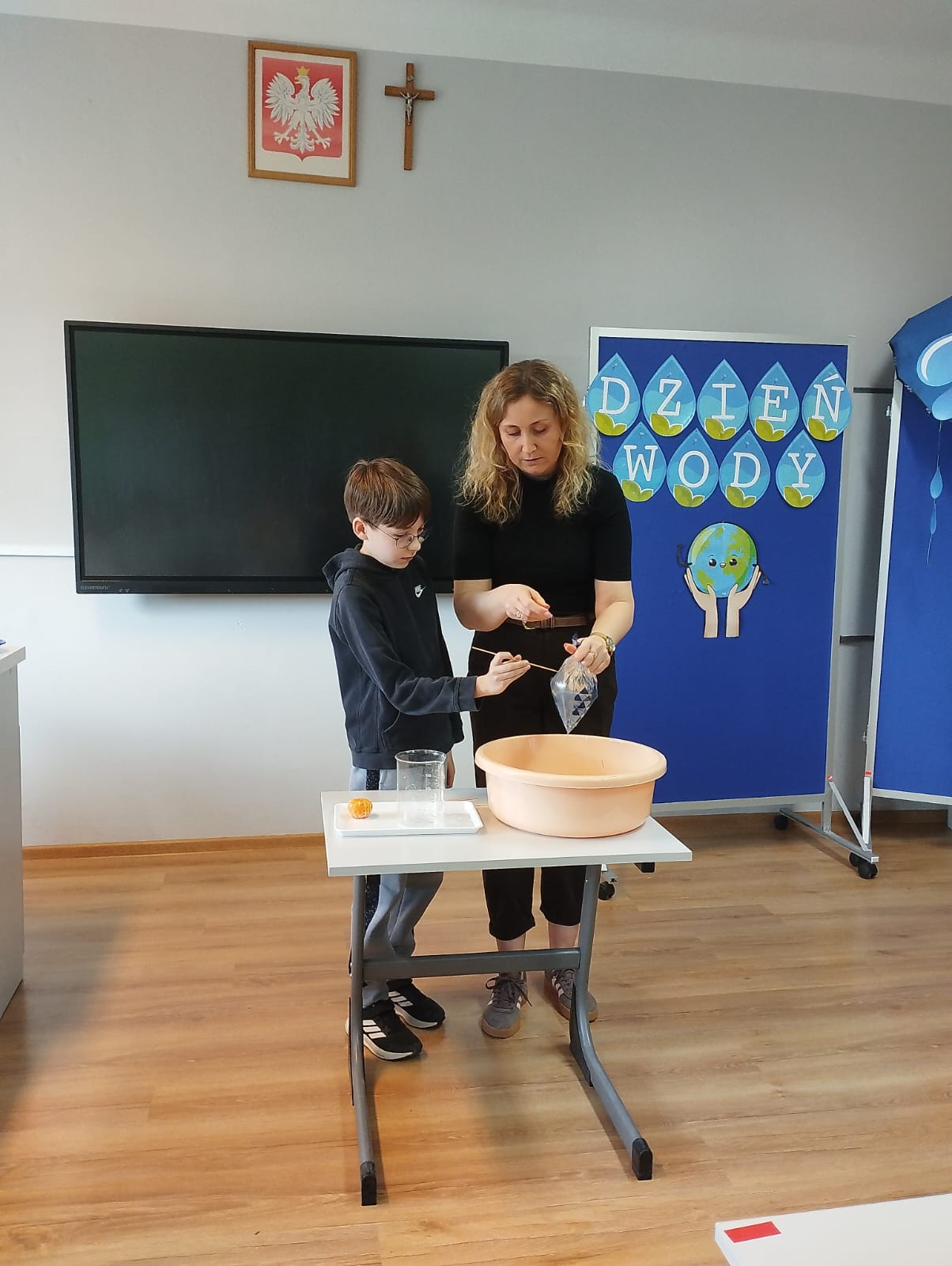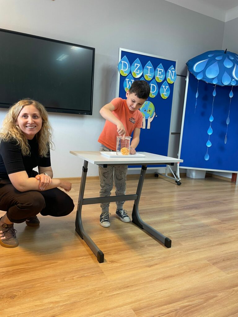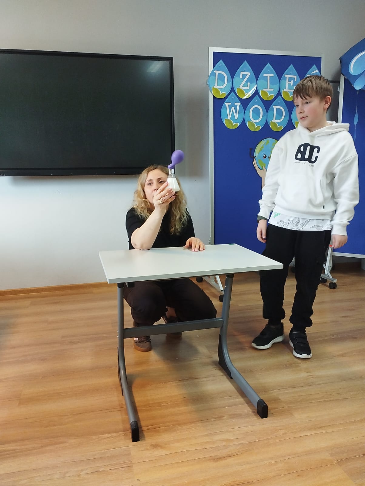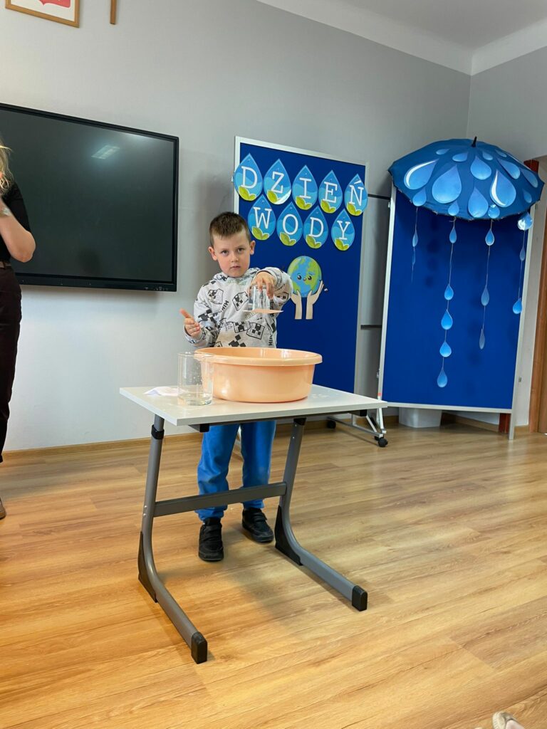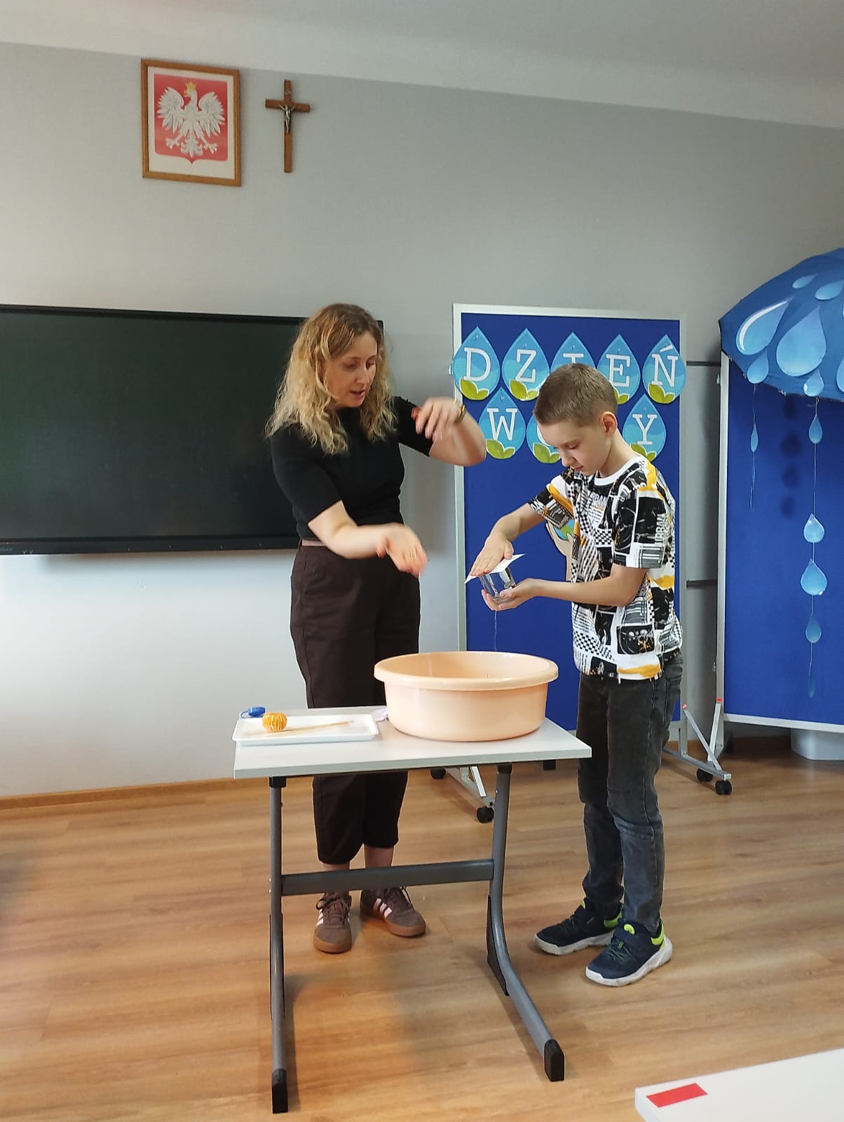 Równocześnie świętowaliśmy Dzień Wody. Uczniowie uczestniczyli w ciekawych doświadczeniach z wodą, które pozwoliły im lepiej zrozumieć jej właściwości oraz znaczenie w życiu codziennym.