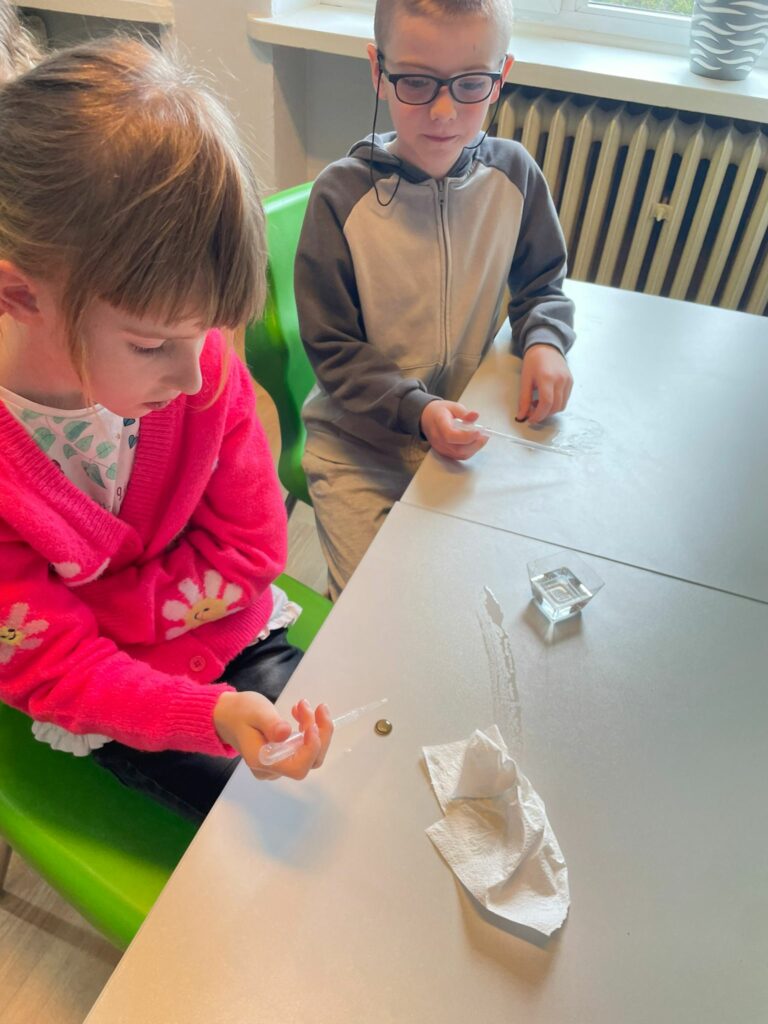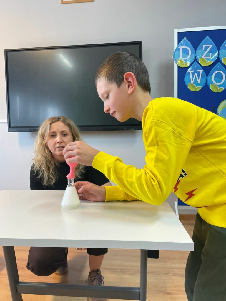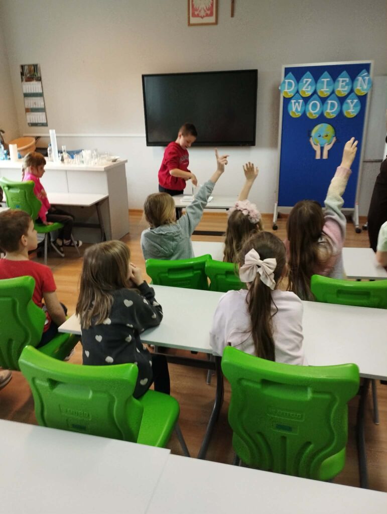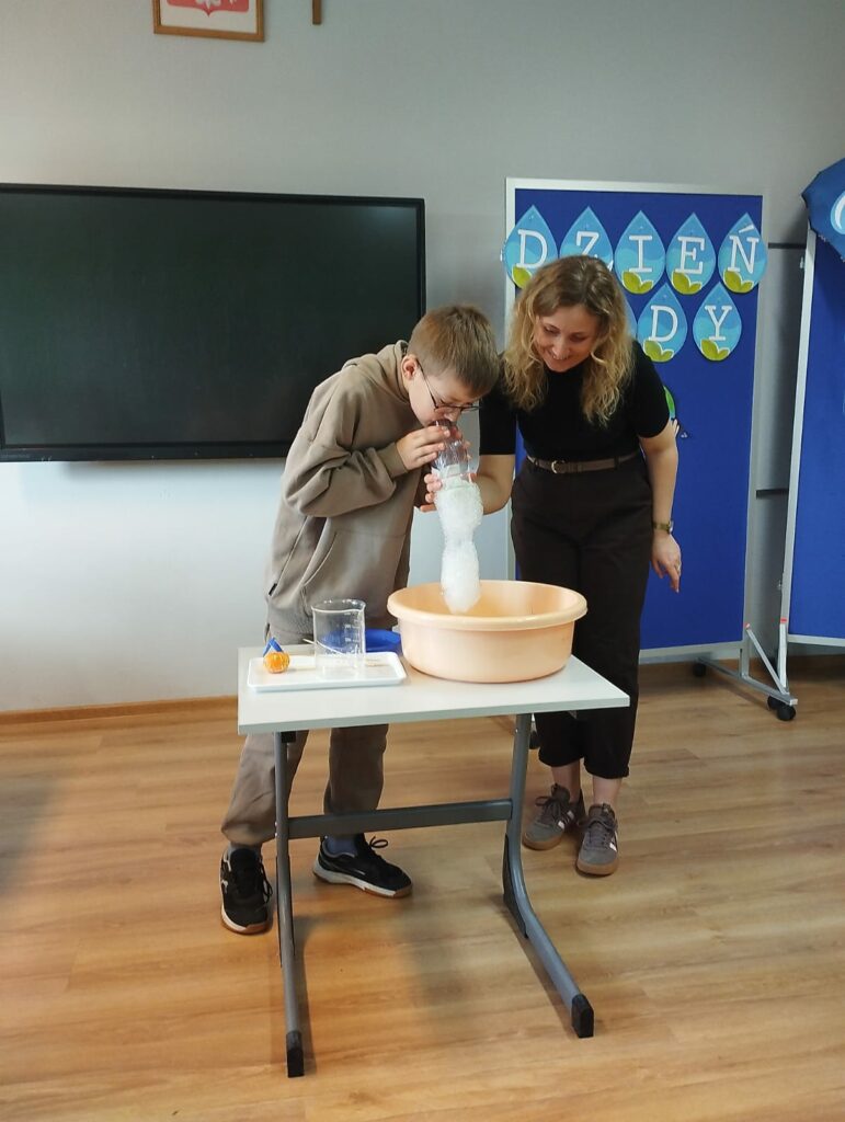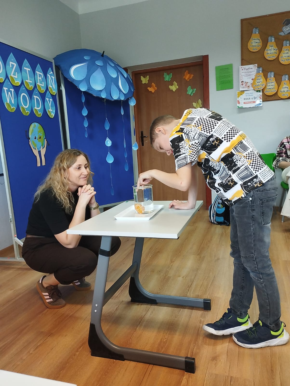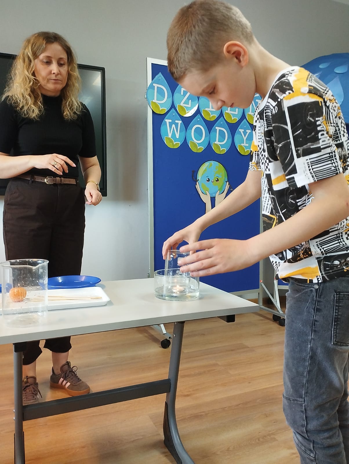 Równocześnie świętowaliśmy Dzień Wody. Uczniowie uczestniczyli w ciekawych doświadczeniach z wodą, które pozwoliły im lepiej zrozumieć jej właściwości oraz znaczenie w życiu codziennym.
