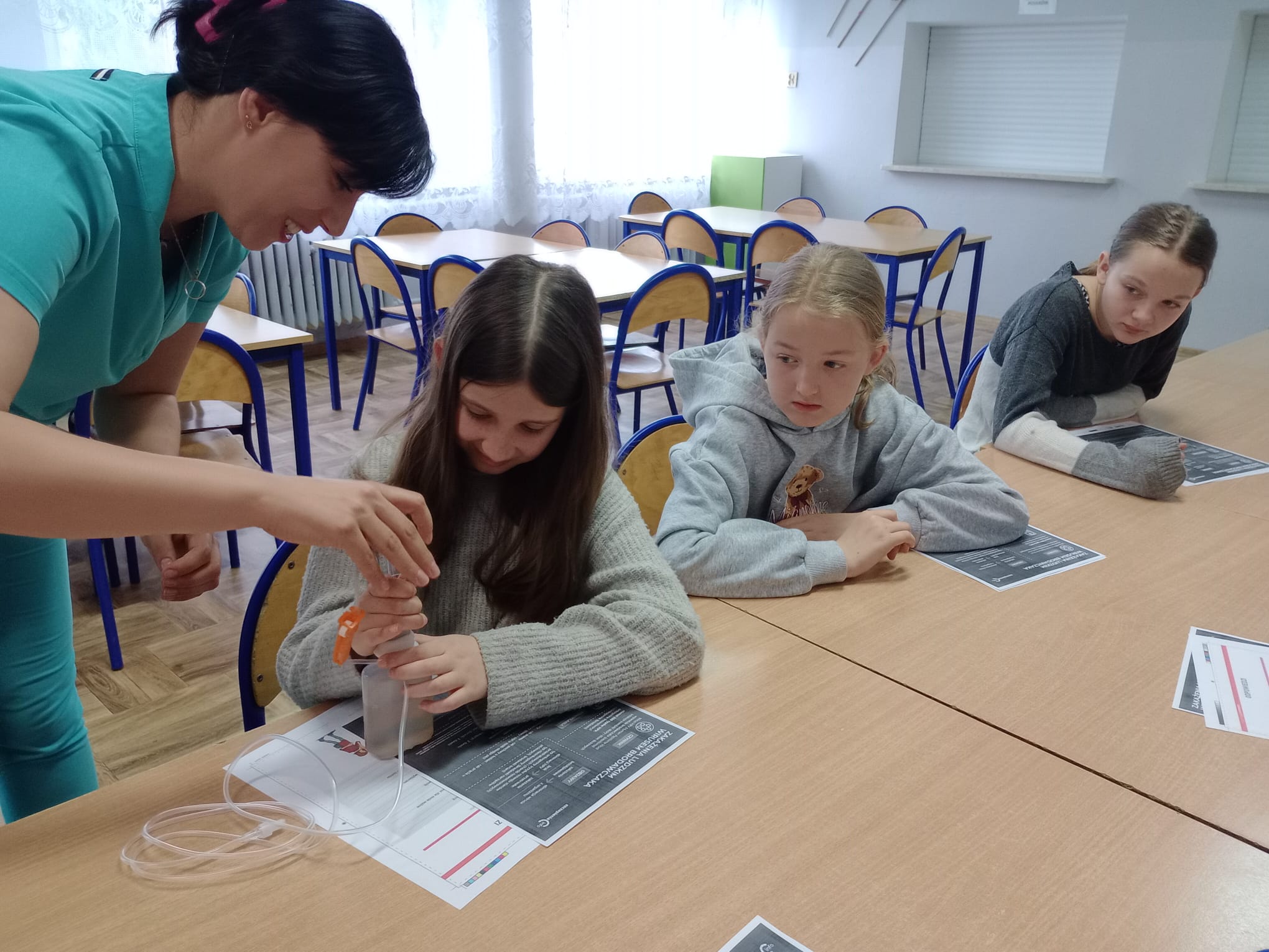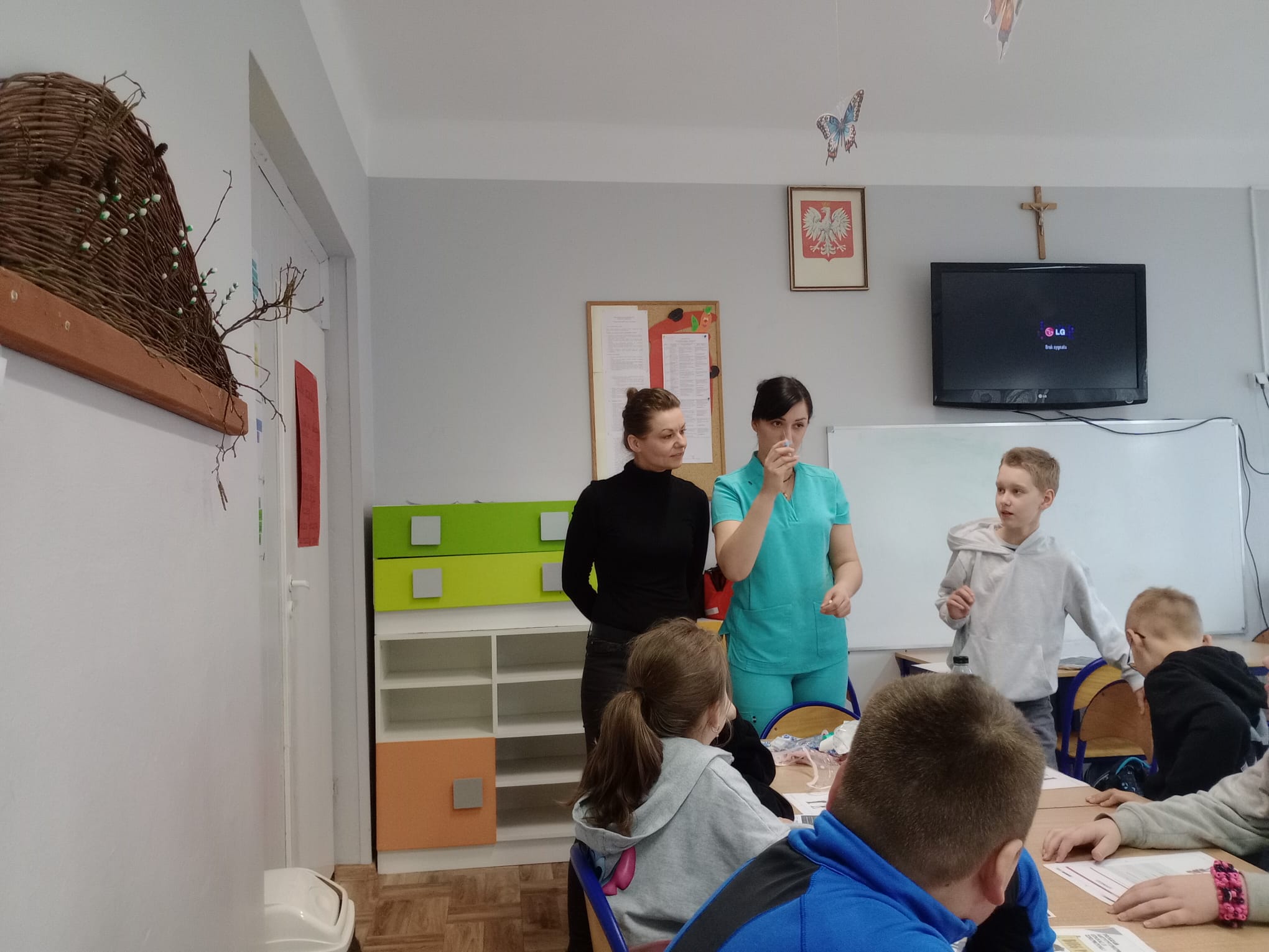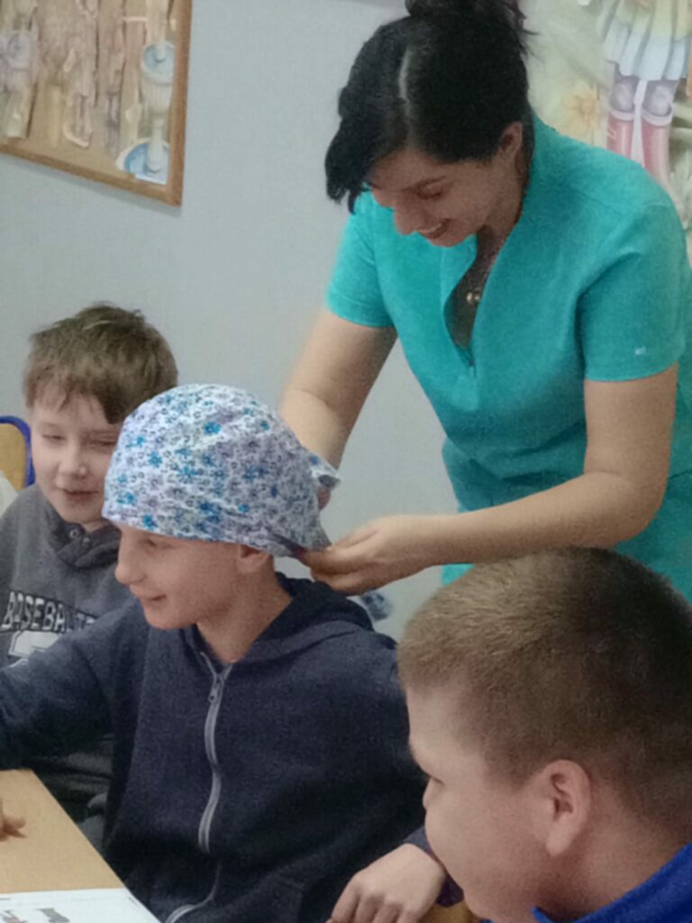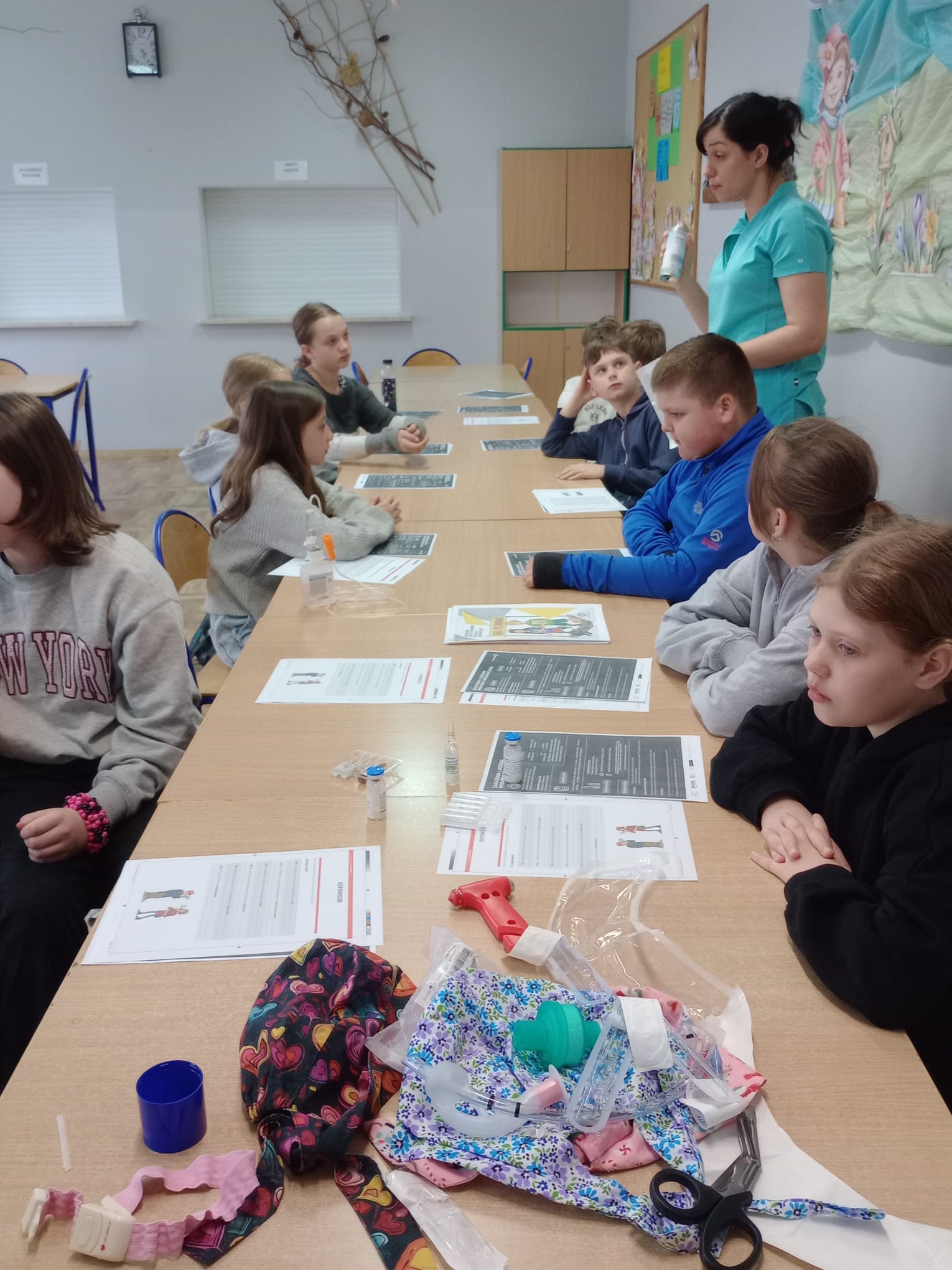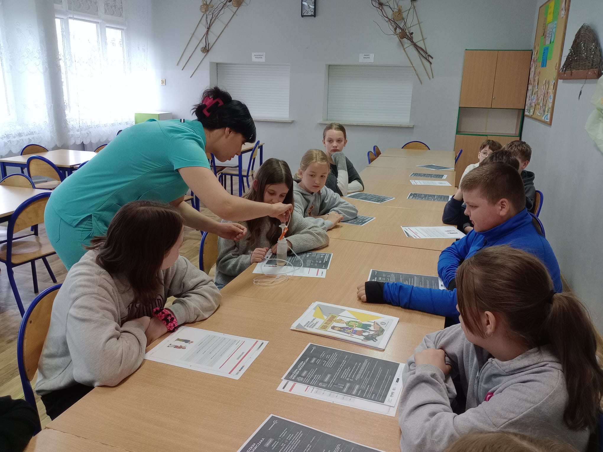 Nasz gość opowiedział uczniom czwartej klasy o swoim zawodzie, podkreślając, jak ważna i odpowiedzialna jest praca pielęgniarki. Dowiedzieliśmy się, jak wygląda codzienna pomoc pacjentom, troska o ich zdrowie oraz wsparcie w trudnych chwilach.