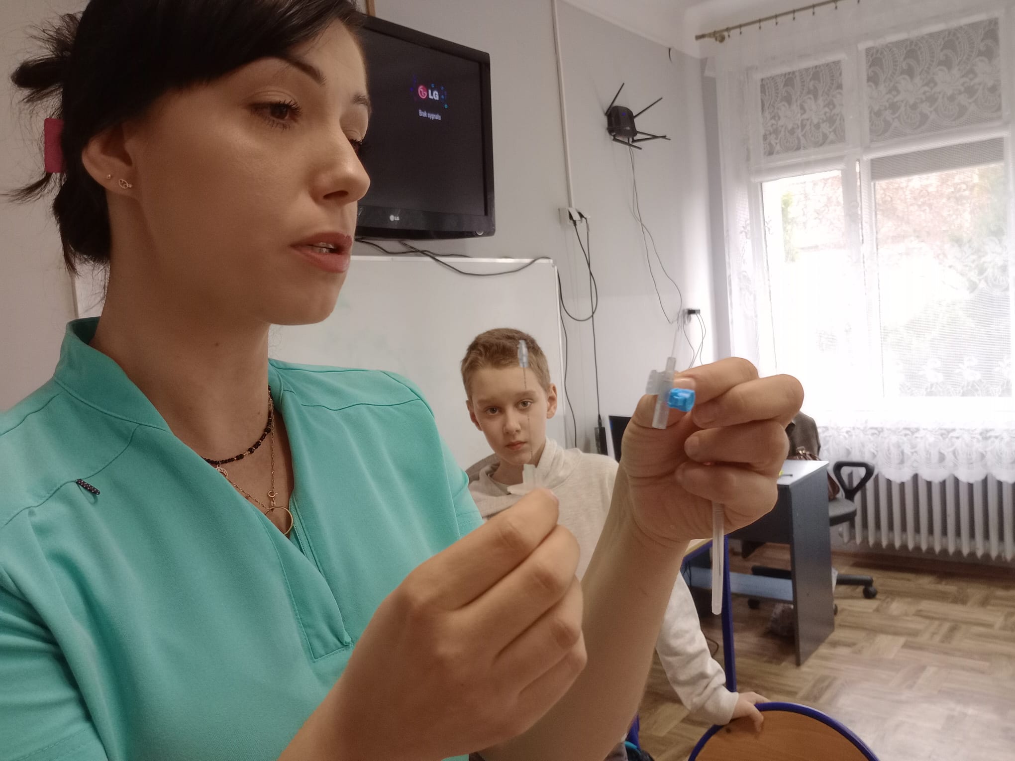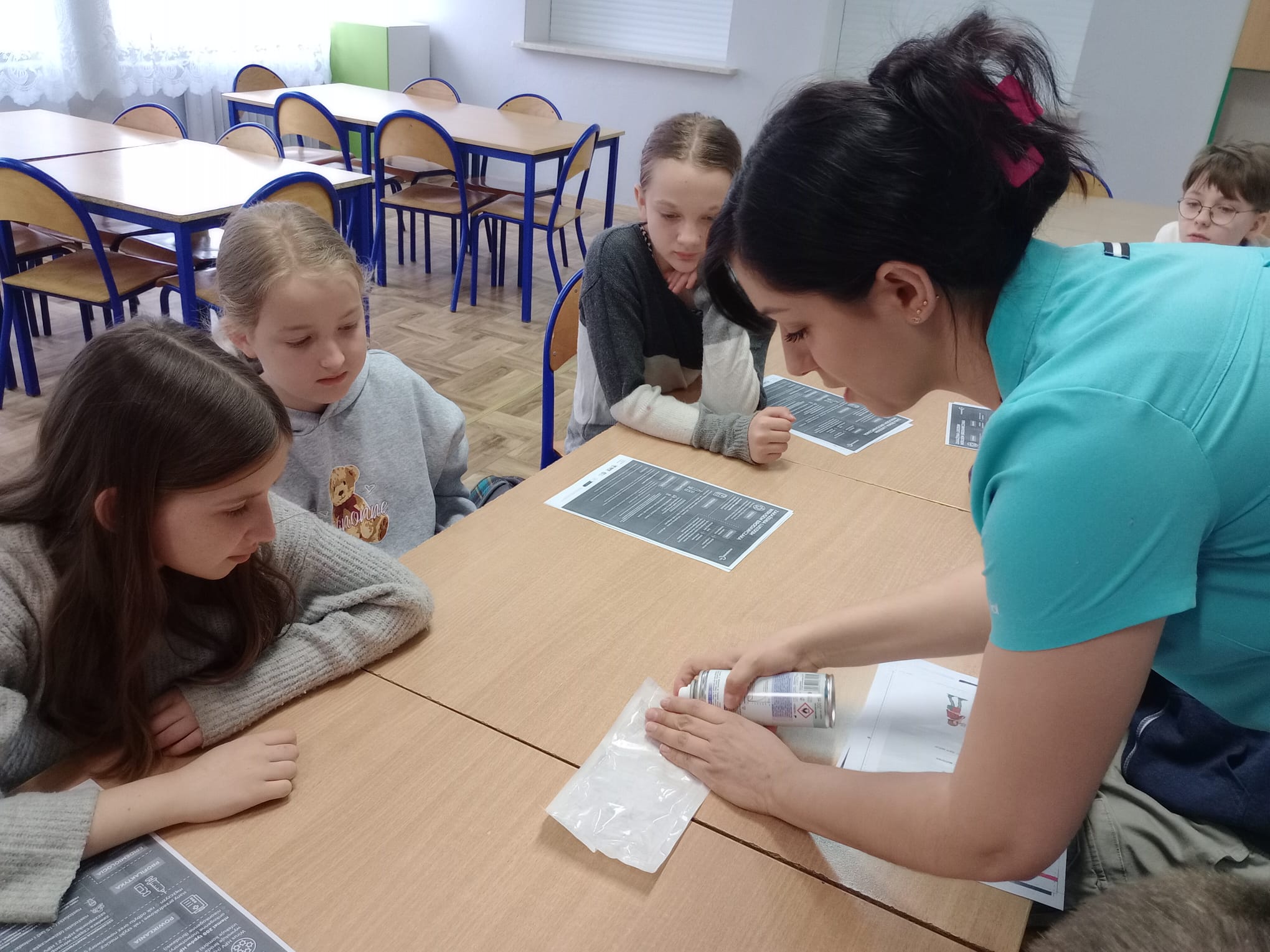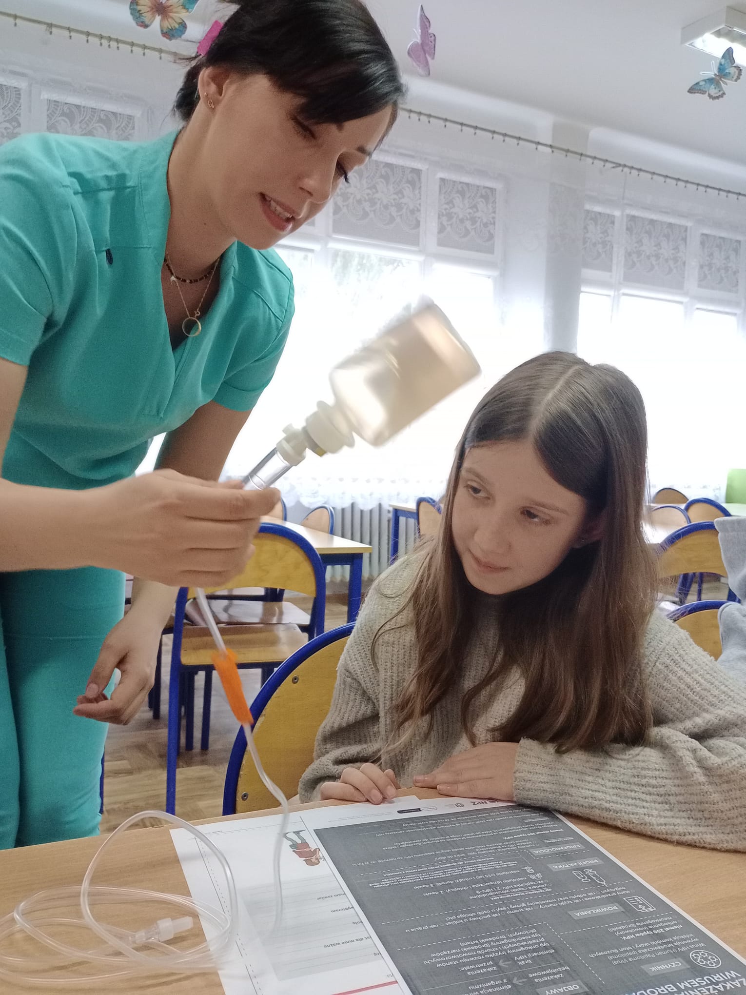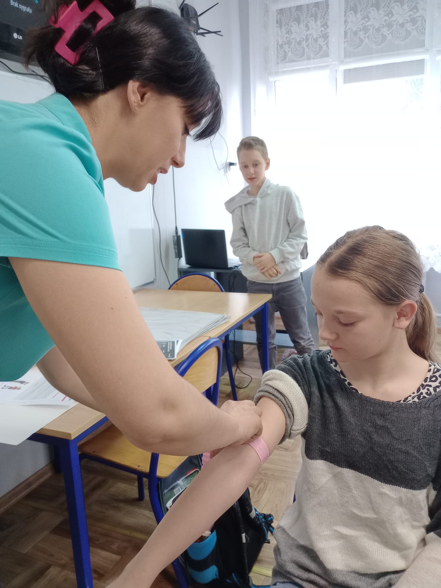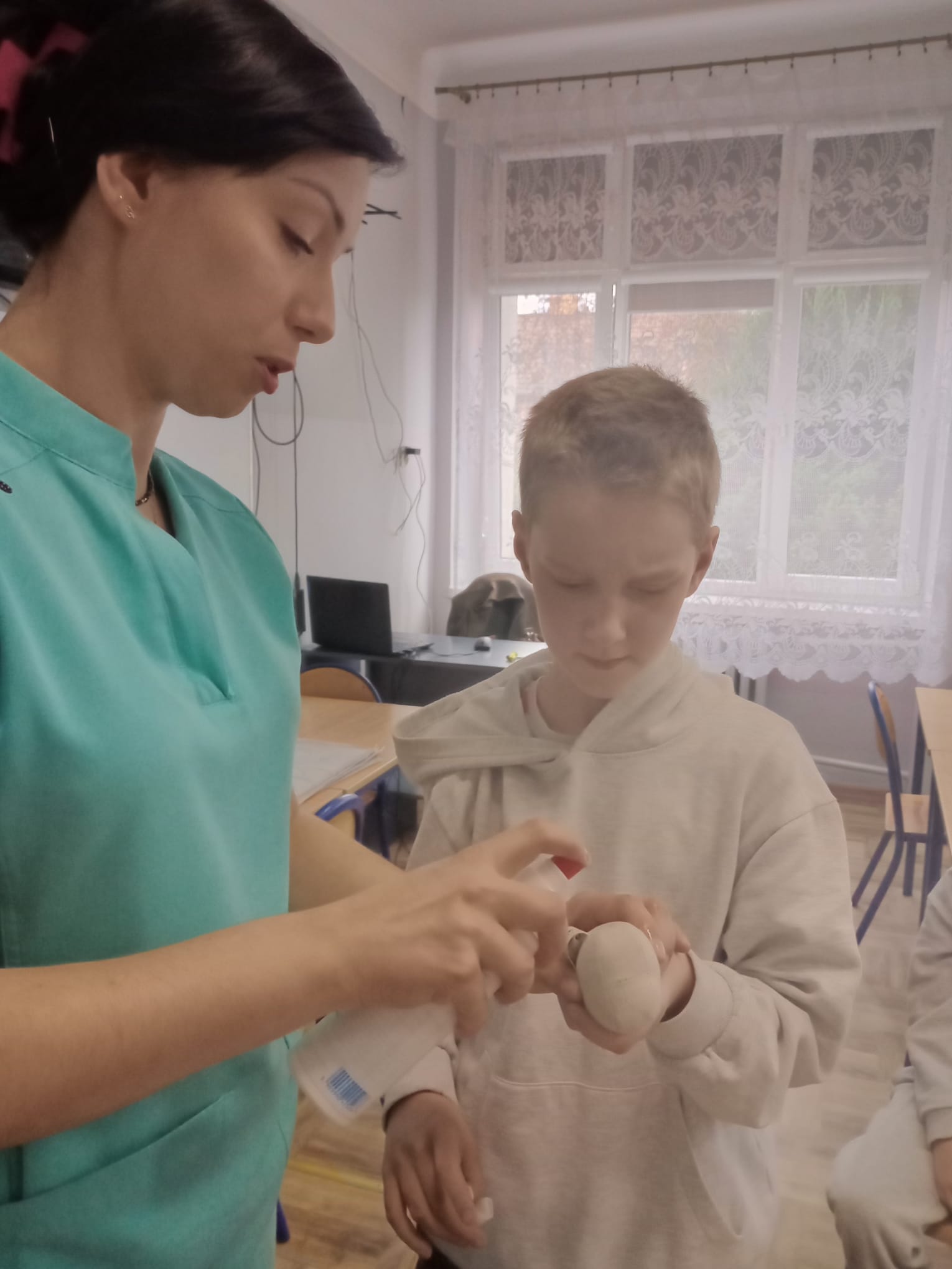 Nasz gość opowiedział uczniom czwartej klasy o swoim zawodzie, podkreślając, jak ważna i odpowiedzialna jest praca pielęgniarki. Dowiedzieliśmy się, jak wygląda codzienna pomoc pacjentom, troska o ich zdrowie oraz wsparcie w trudnych chwilach.