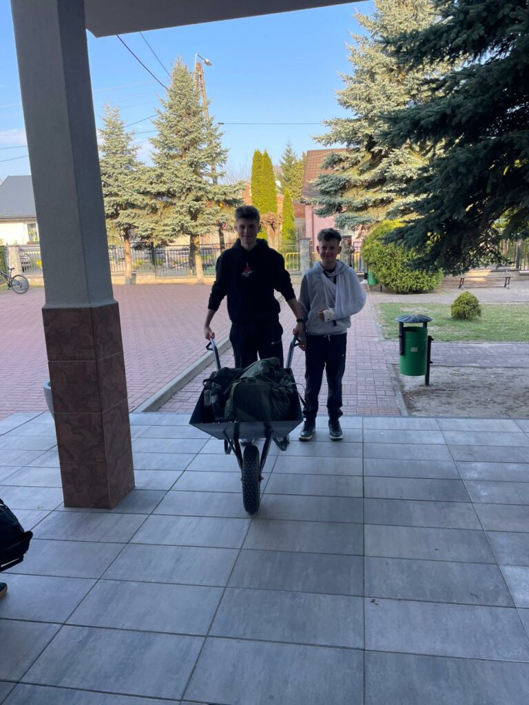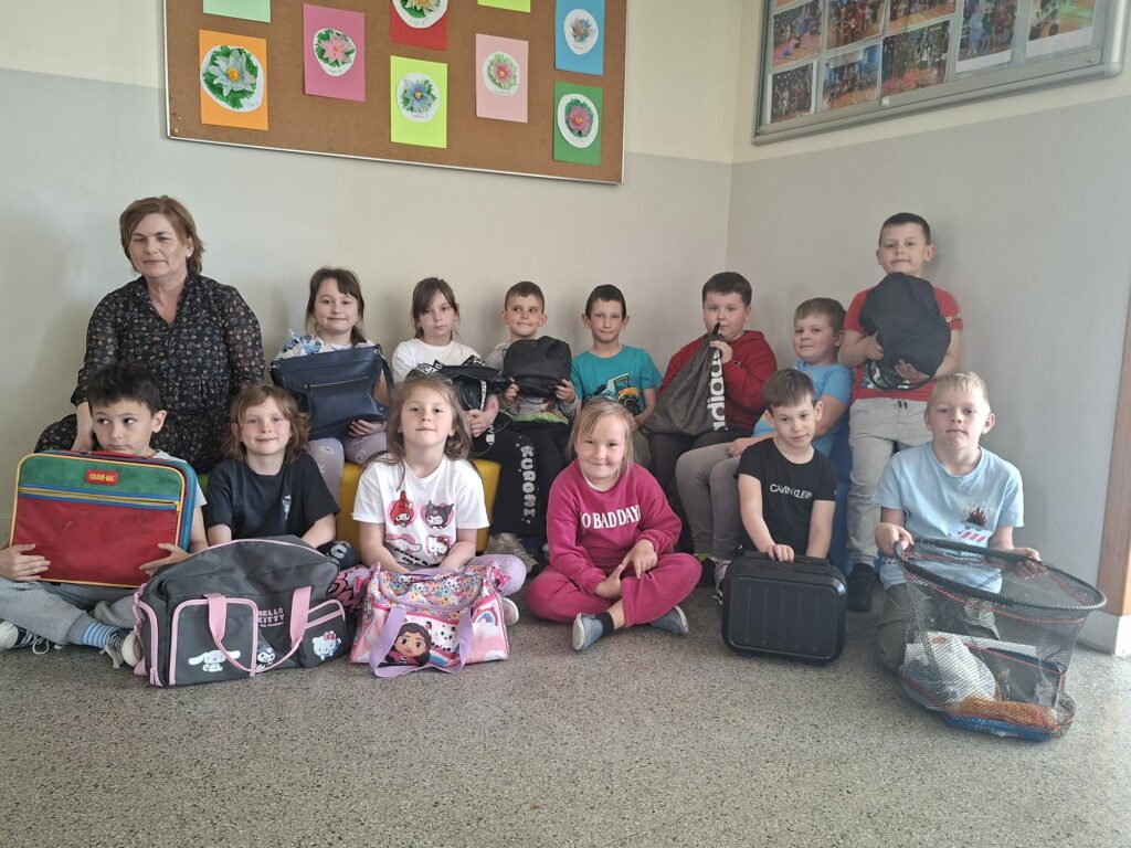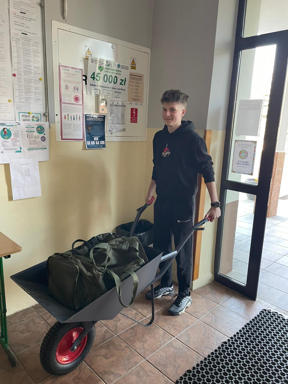 Ale prawdziwe gwiazdy dnia? Zdecydowanie taczka, kosze na pranie… i szuflady! Jeden z uczniów dumnie wjechał do szkoły z pełną taczką książek, jakby właśnie kończył remont zamiast zaczynał lekcję. Inni postawili na kosze na pranie – wyglądało to tak, jakby zamiast zeszytów nieśli świeżo wyprane ubrania prosto z suszarni. A absolutnym hitem były szuflady – tak, prawdziwe szuflady! Wyglądało to tak, jakby ktoś wyjął kawałek komody z domu i stwierdził: „to będzie mój plecak”.