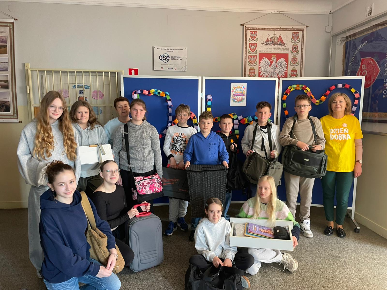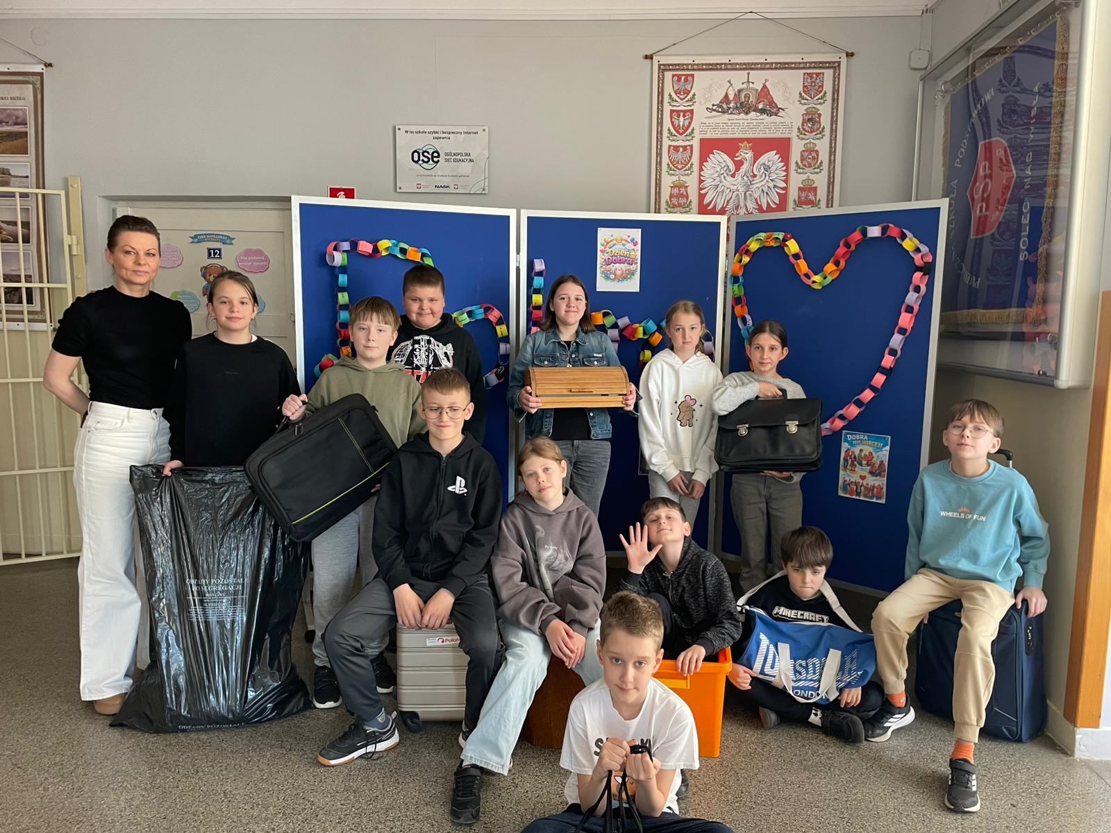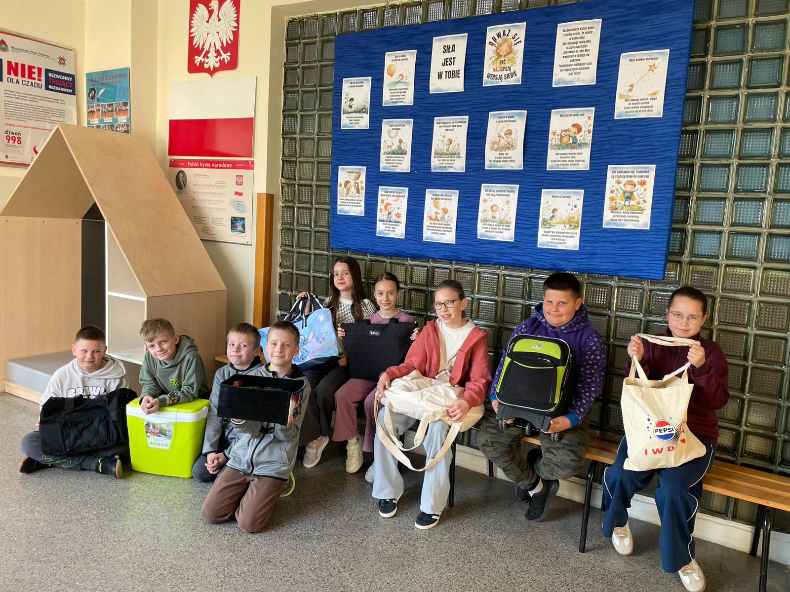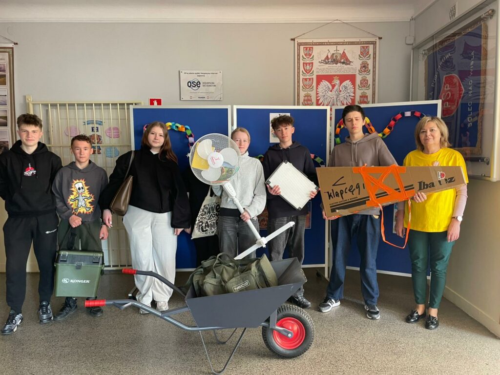 Efekt? Absolutny chaos – oczywiście w najlepszym wydaniu. Po korytarzach spacerowali uczniowie z książkami w koszykach jak na piknik, torbach zakupowych rodem z supermarketu, a nawet w etui na gitarę, jakby zaraz mieli zagrać koncert matematyki. Byli też tacy, którzy poszli o krok dalej – ktoś próbował zmieścić zeszyty do… wiatraka (do dziś nie wiemy jak), a inni przynieśli walizki, jakby wybierali się na tygodniowe wakacje zamiast na lekcję historii.