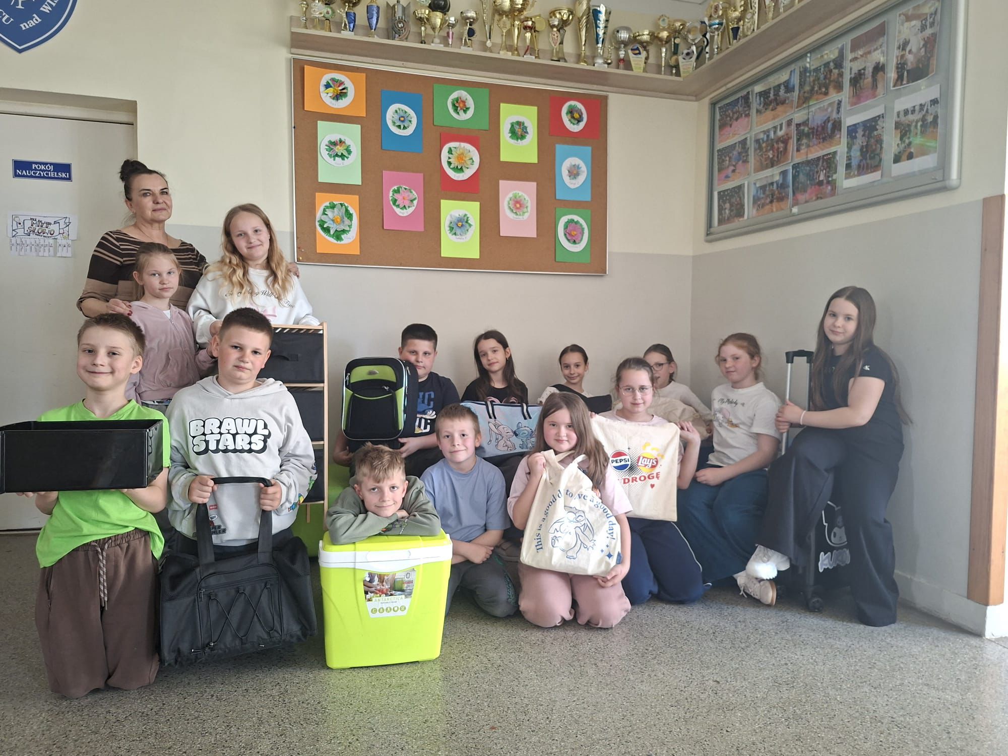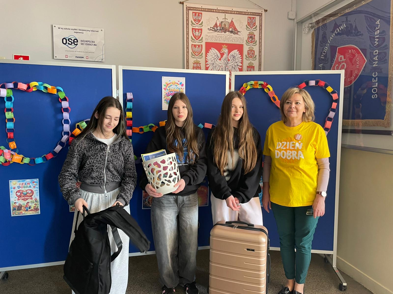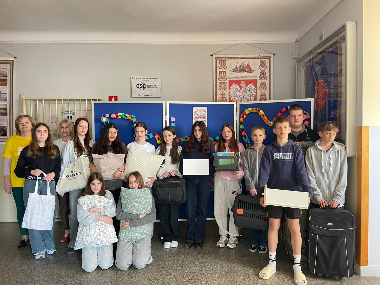 Efekt? Absolutny chaos – oczywiście w najlepszym wydaniu. Po korytarzach spacerowali uczniowie z książkami w koszykach jak na piknik, torbach zakupowych rodem z supermarketu, a nawet w etui na gitarę, jakby zaraz mieli zagrać koncert matematyki. Byli też tacy, którzy poszli o krok dalej – ktoś próbował zmieścić zeszyty do… wiatraka (do dziś nie wiemy jak), a inni przynieśli walizki, jakby wybierali się na tygodniowe wakacje zamiast na lekcję historii.